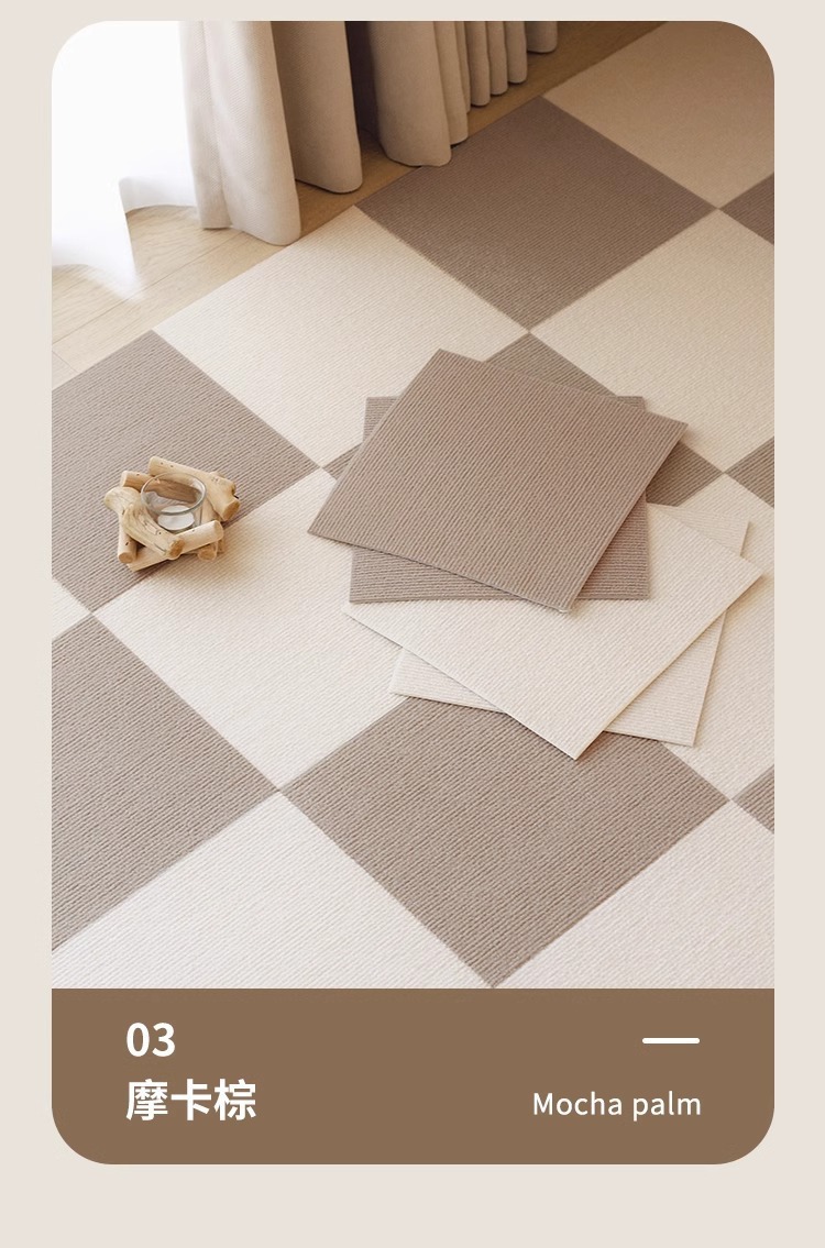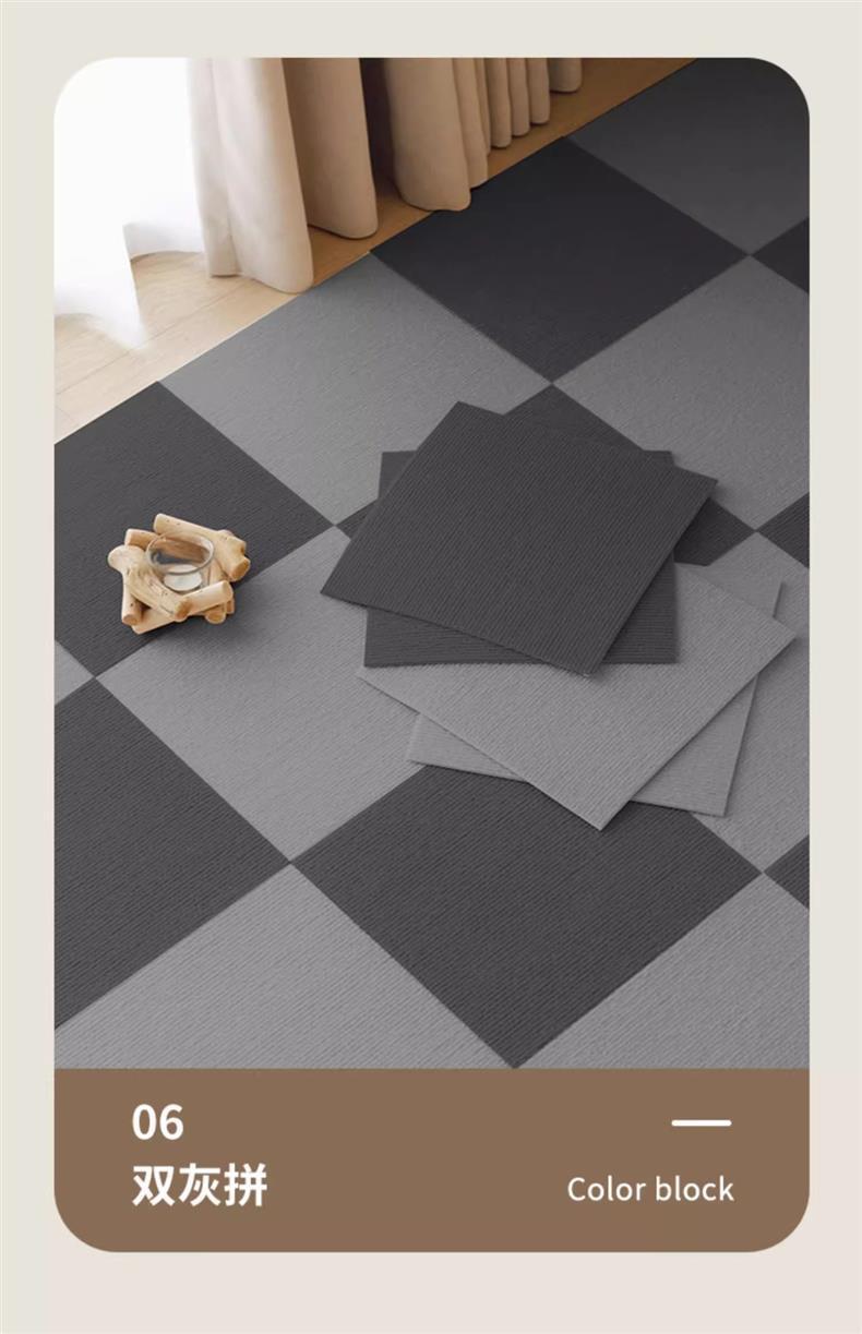 本产品属于自粘型地毯,自带背胶撕开即贴。适合贴在地面、墙面可混搭拼贴。另外也可以当做宠物防抓垫。贴家具表面,墙面。等多功能墙贴。源头工厂现货供应。量大从优。批量定制尺寸可联系在线客服。。。。。
