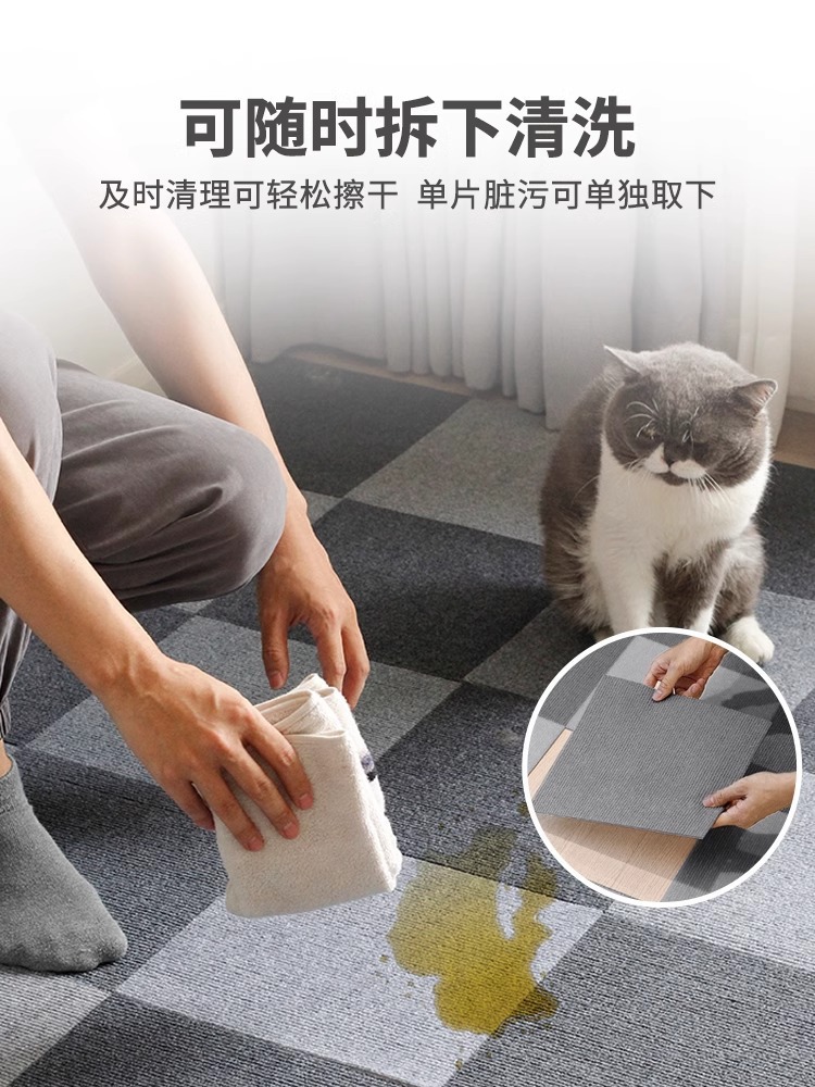 즉시 배송 가능한 조립식 카펫, 미끄럼 방지 침실 및 어린이방 방음 매트, 오염 방지 고양이 발톱 긁힘 방지 자가 접착 카펫