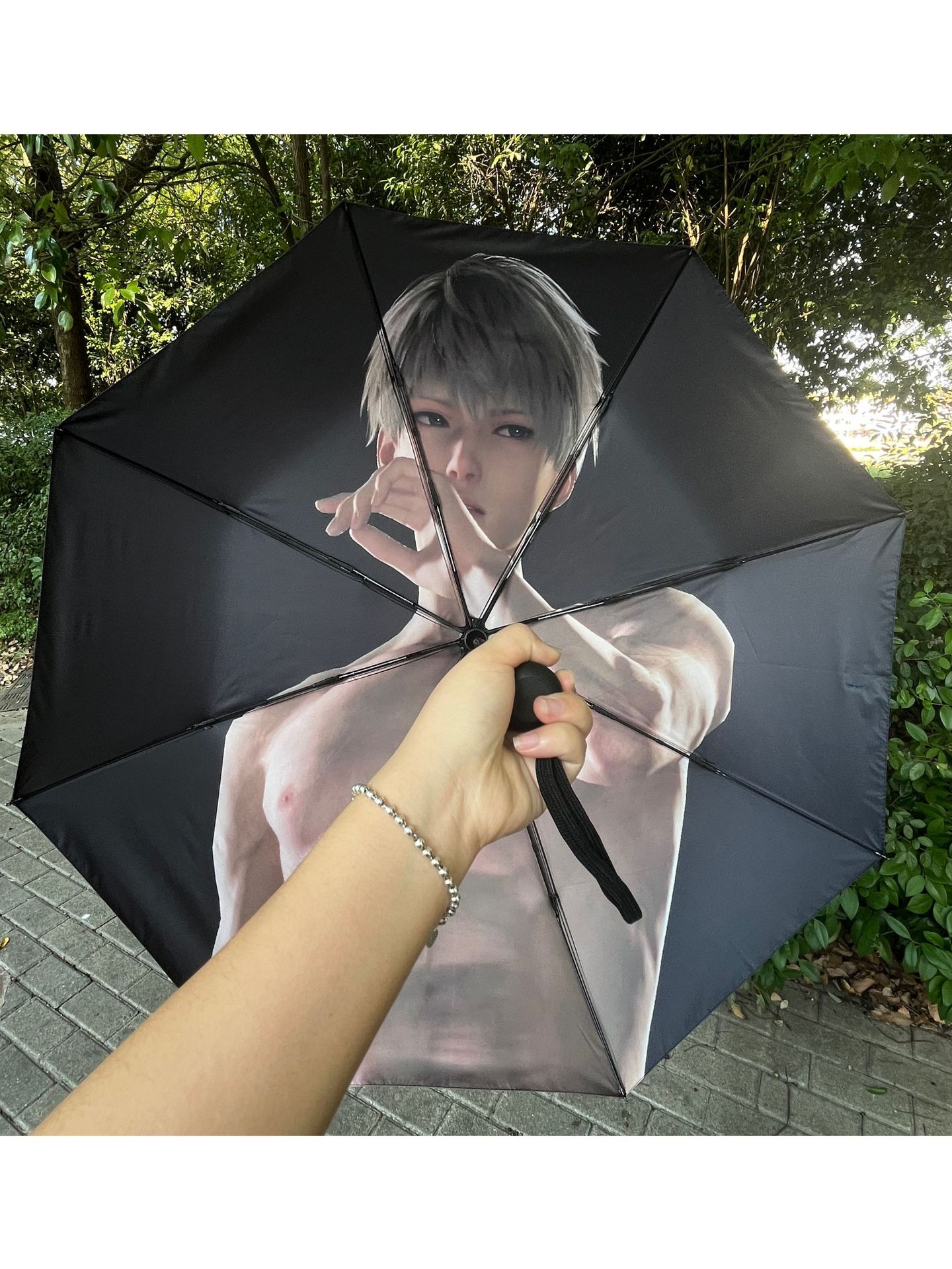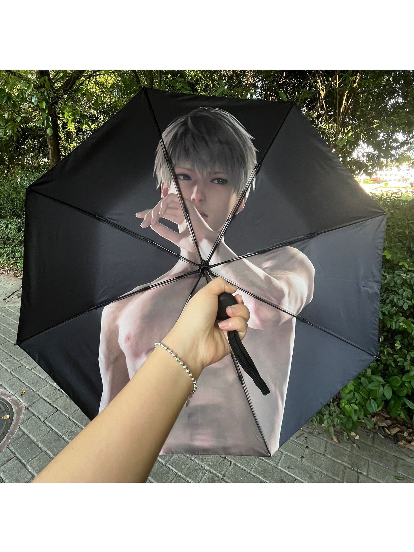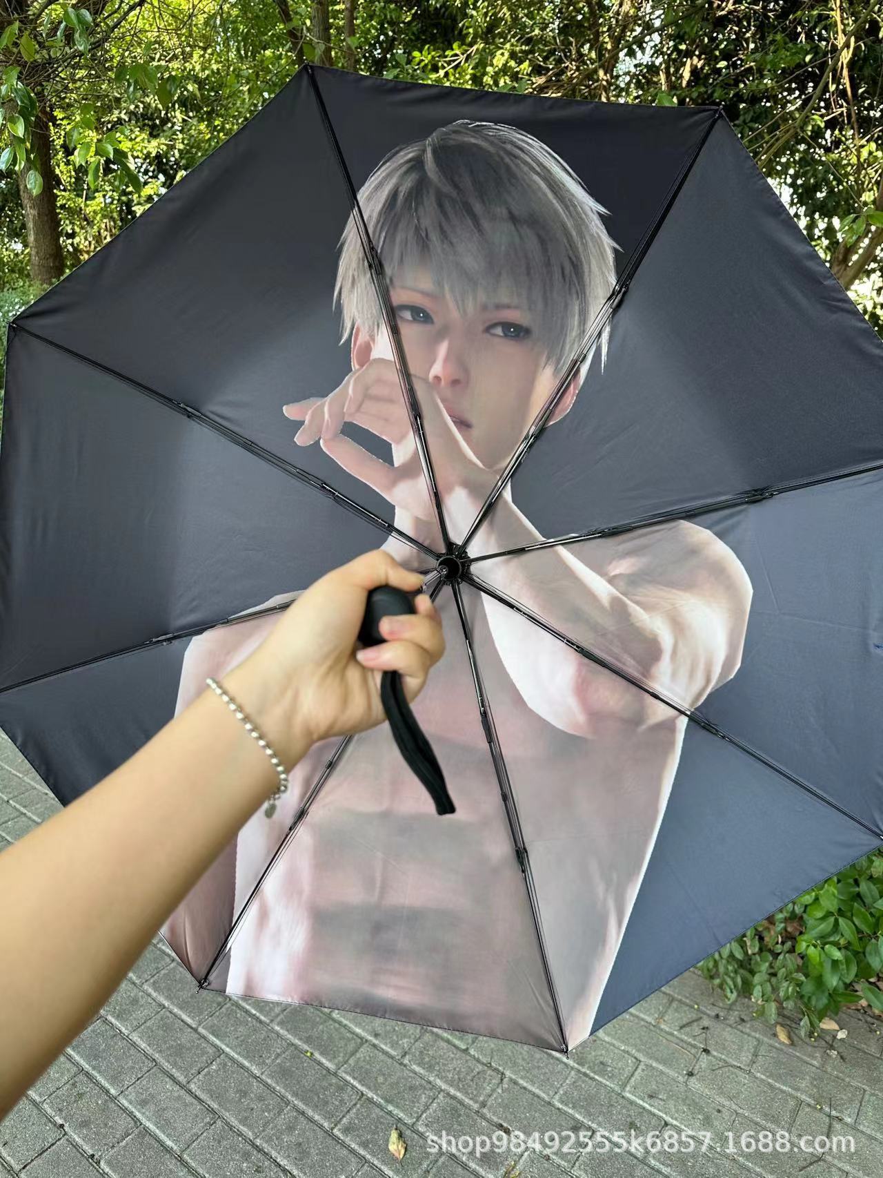 만화 캐릭터가 있는 이중 목적 자외선 차단 양산우산, UV 블랙 글레이징 70% off 햇빛과 비 모두를 막아주는 접이식 우산