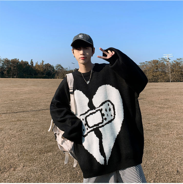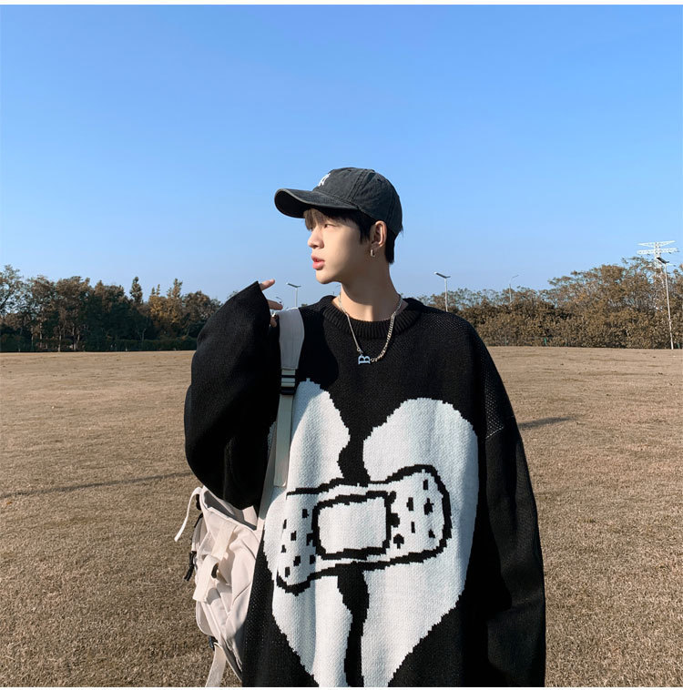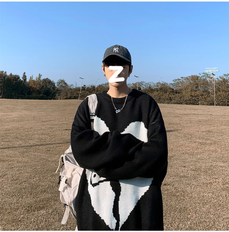 가을과 겨울 사랑 스웨터 남자 크루 넥 터틀넥 일본 레트로 학생 십대 유행 브랜드 인터넷 인기 커플 니트웨어스토어 가기