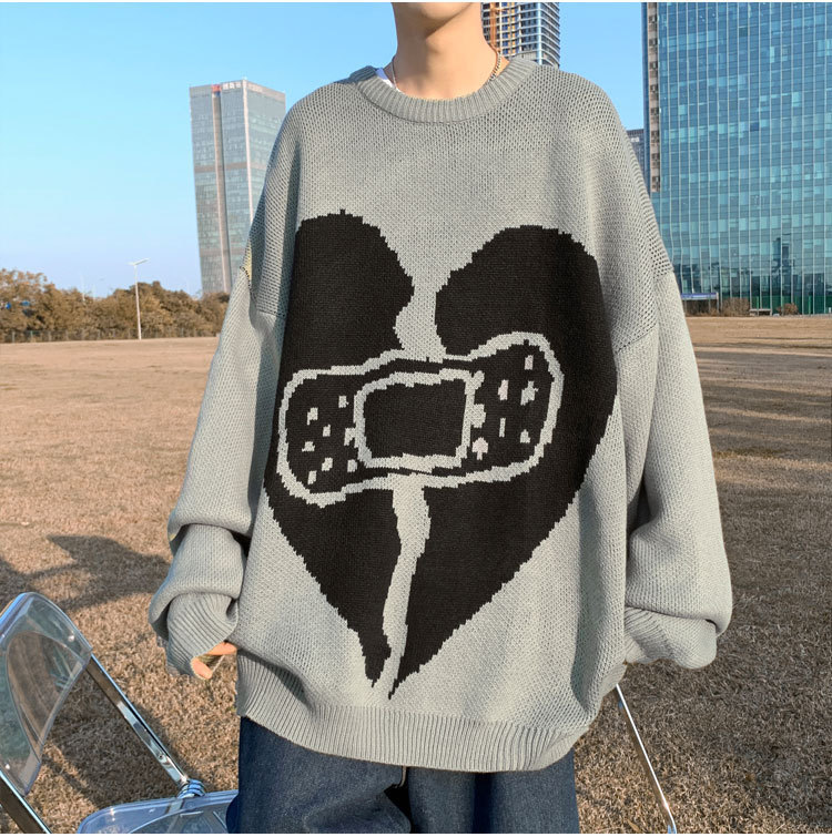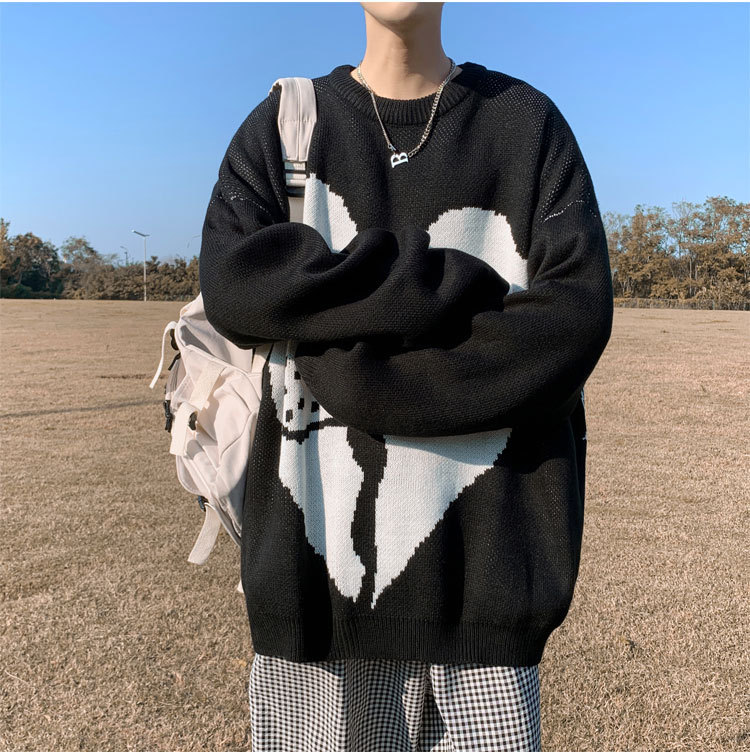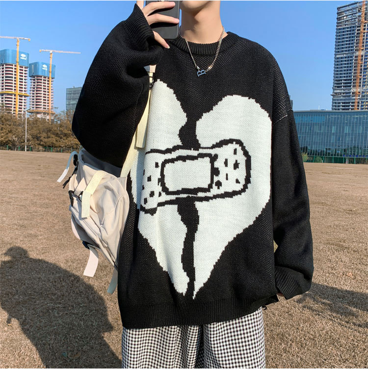 가을과 겨울 사랑 스웨터 남자 크루 넥 터틀넥 일본 레트로 학생 십대 유행 브랜드 인터넷 인기 커플 니트웨어