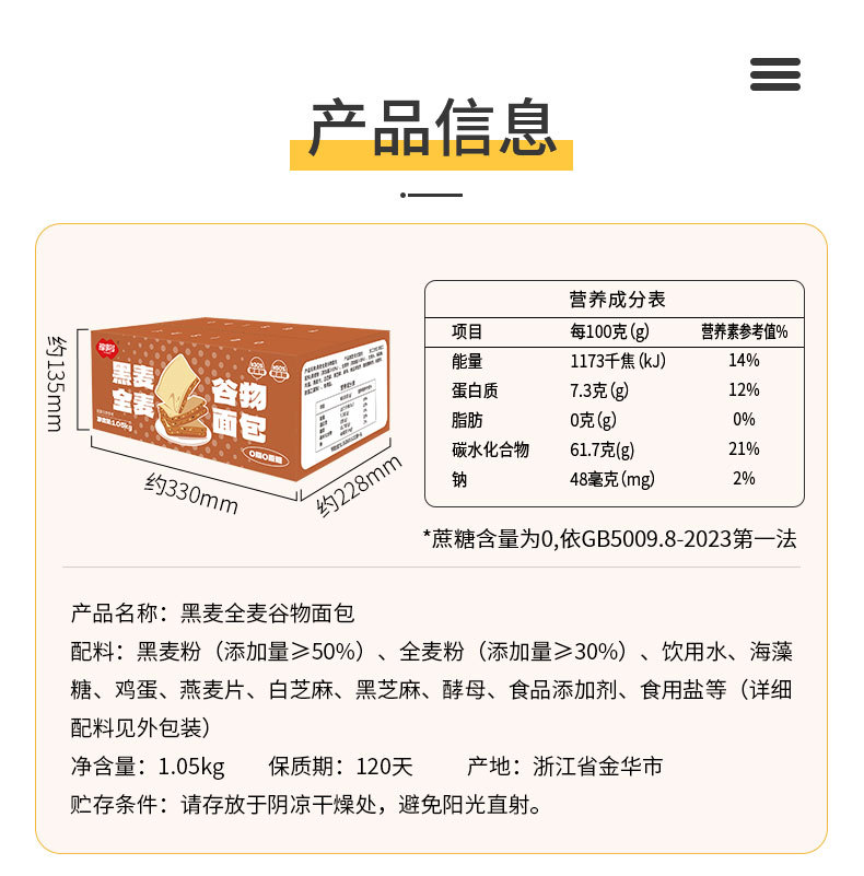 Fusardo 1050g 호밀 통밀 시리얼 빵 아침 식사 빵 오후 차 식이 섬유 식품