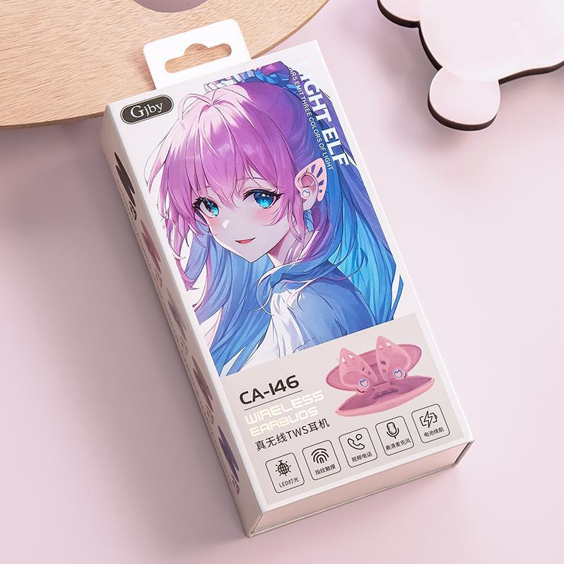 冠佳CA-146二次元精灵耳LED灯蓝牙耳机.挂耳式精灵耳二次元风格,LED灯灯效,5.3+EDR版本 高清音质 支持双耳通话 无线束缚