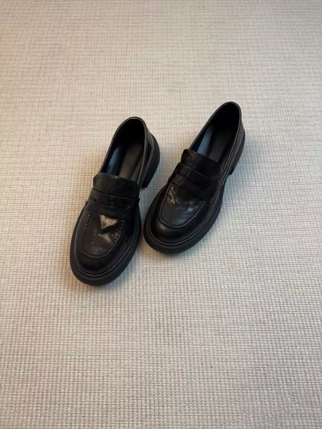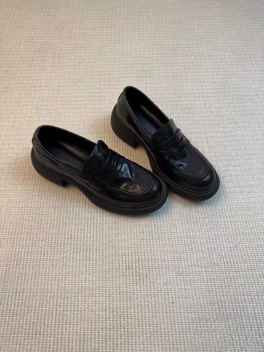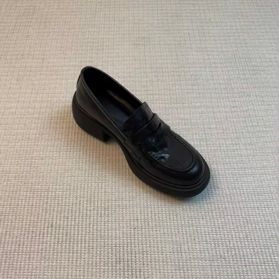 In-Goods ~ Lefu 신발 여성 영국 가죽 신발 디자인 센스 틈새 레트로 두꺼운 힐 조커 주름 라운드 발가락 싱글 신발스토어 가기