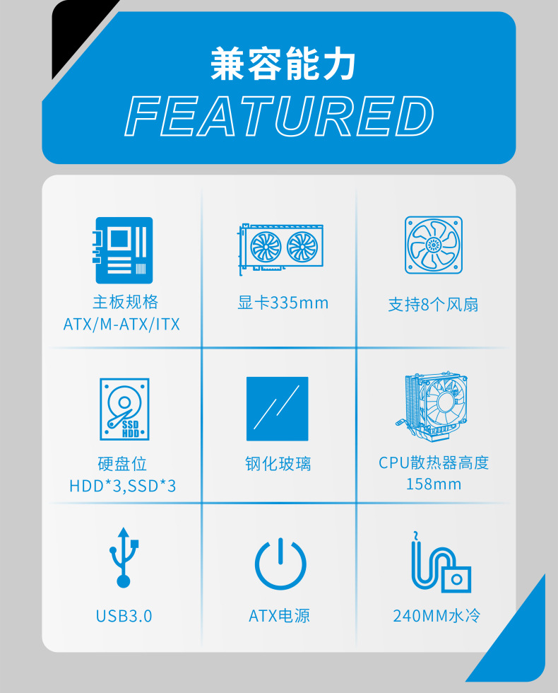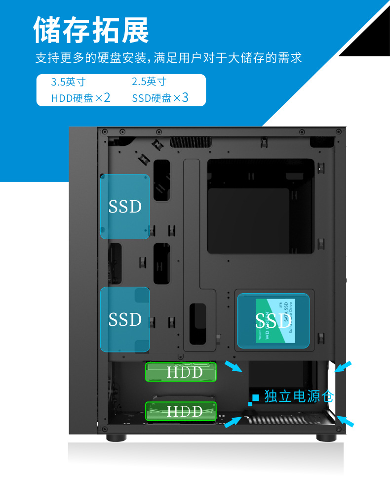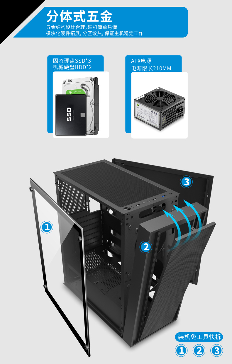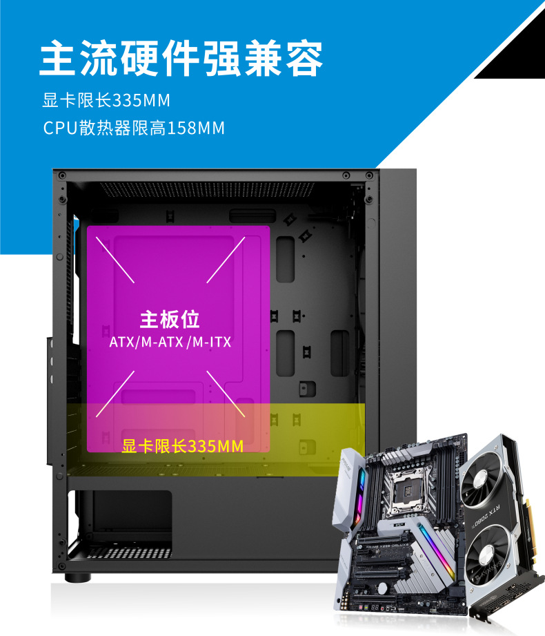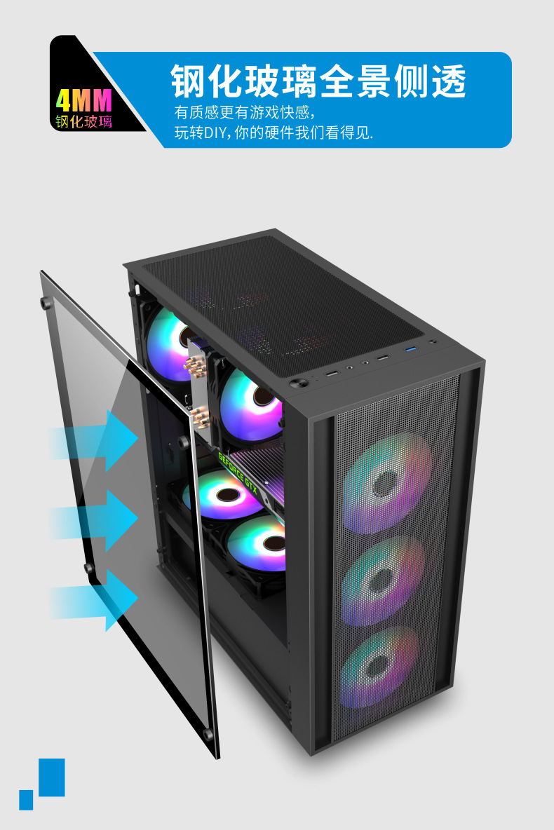 게임 라이브 방송 디자인 홈 오피스 섀시를 통해 국경 간 ATX 컴퓨터 섀시 데스크탑 호스트 전체 측면스토어 가기