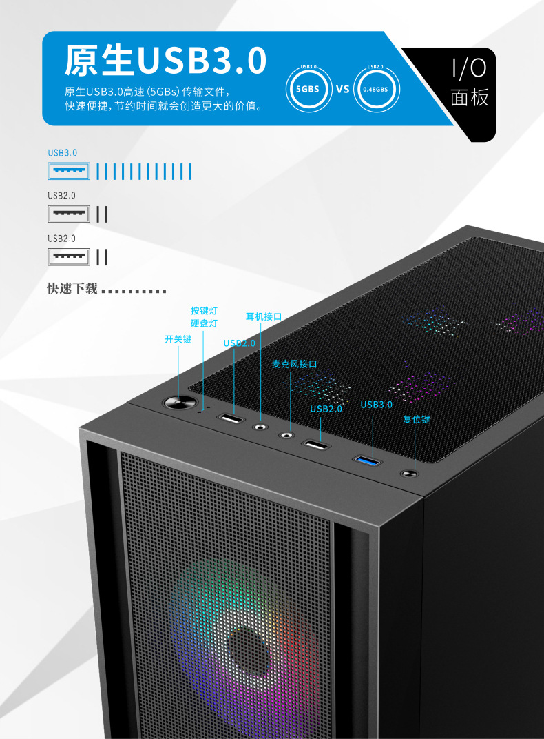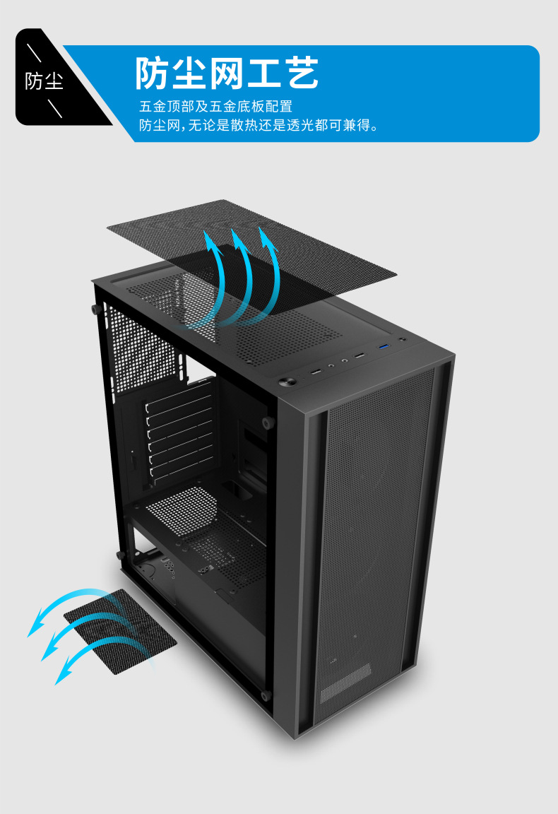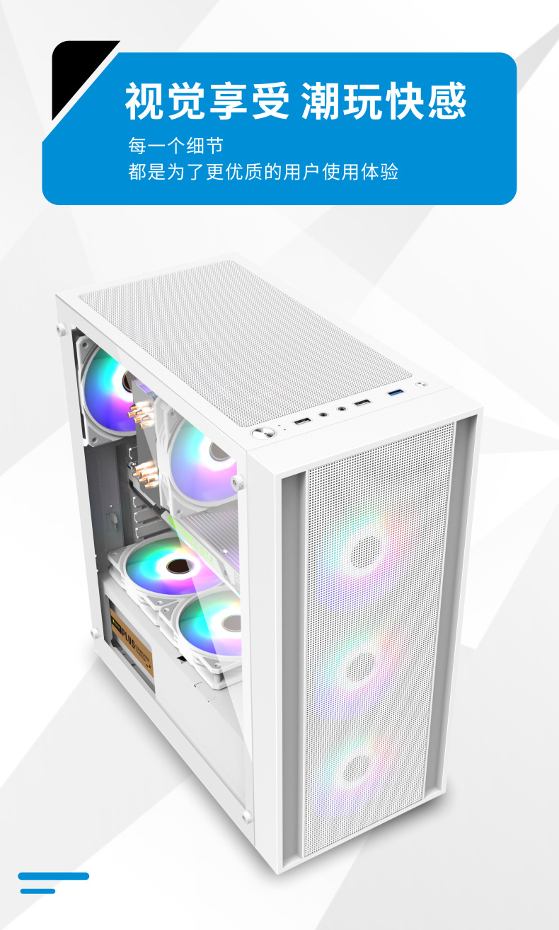 게임 라이브 방송 디자인 홈 오피스 섀시를 통해 국경 간 ATX 컴퓨터 섀시 데스크탑 호스트 전체 측면