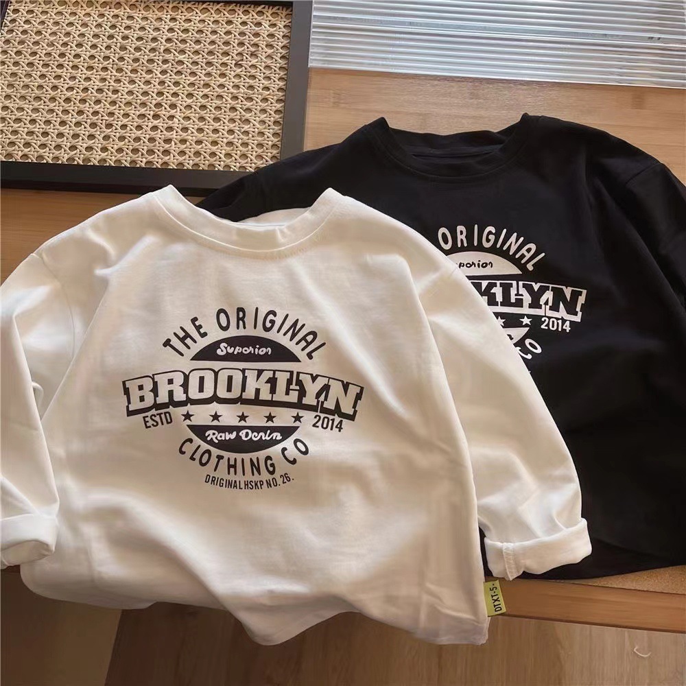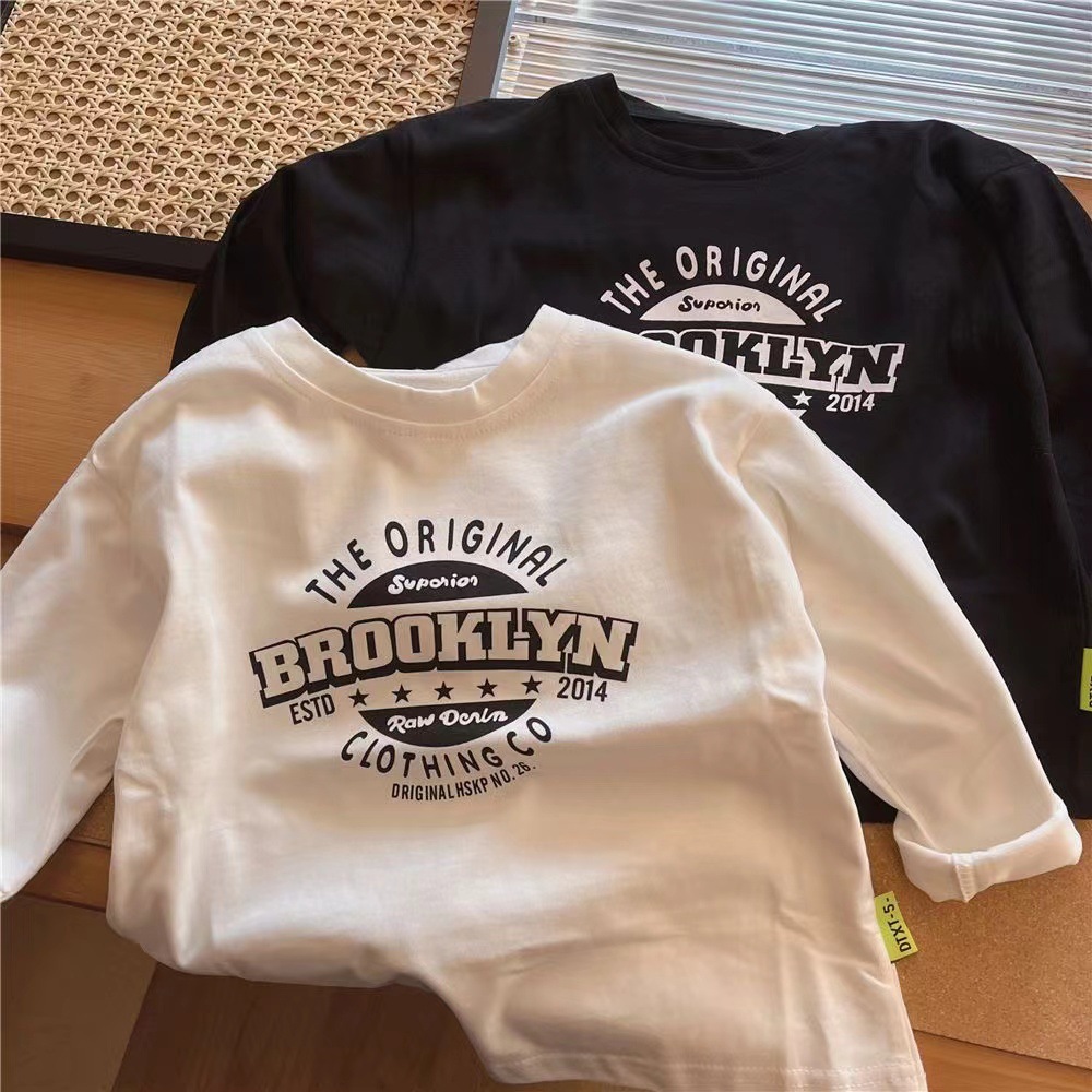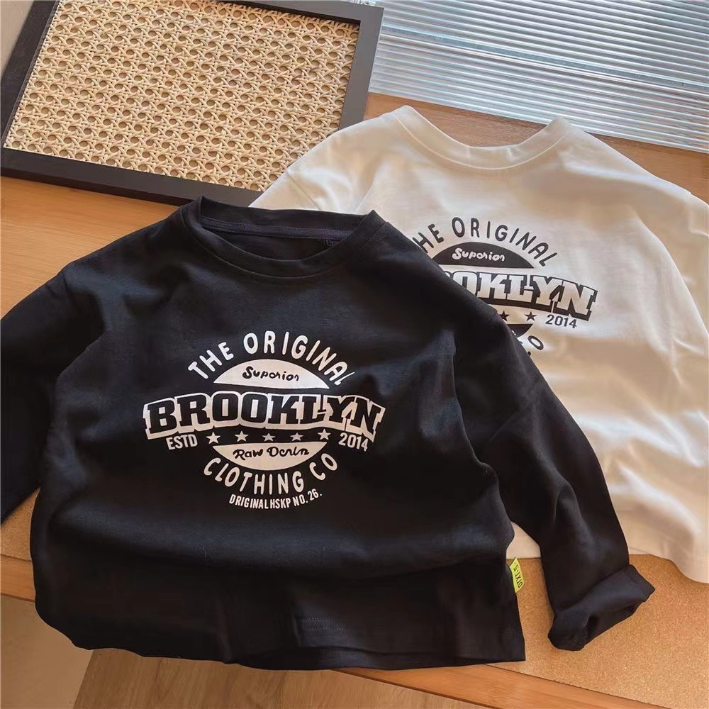 2025 봄과 가을 새로운 스타일 서양식 남성 및 여성 중소 아동 의류 순수 코튼 티셔츠 탑 프린트 긴팔 바닥 셔츠스토어 가기
