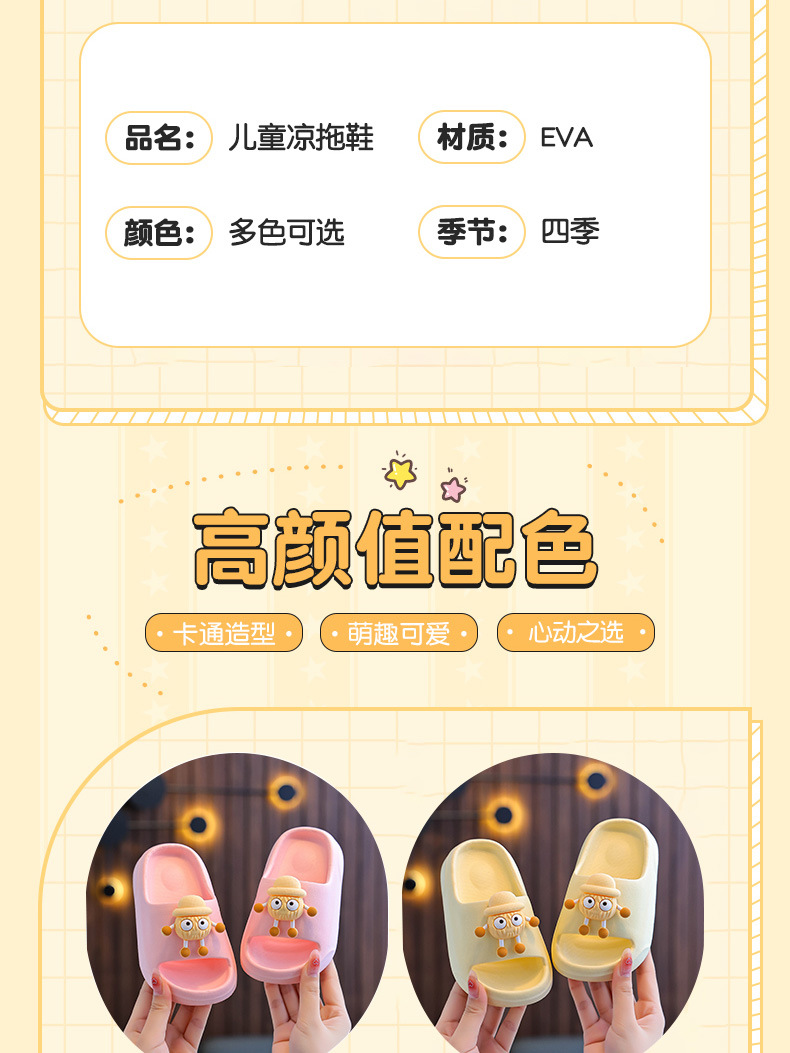 어린이용 슬리퍼, 두꺼운 밑창, 욕실용, eva 소재, 가정용, 미끄럼 방지, 냄새 방지, 실내용, 남녀공용, 만화 캐릭터, 어린이, 중학생, 여아용
