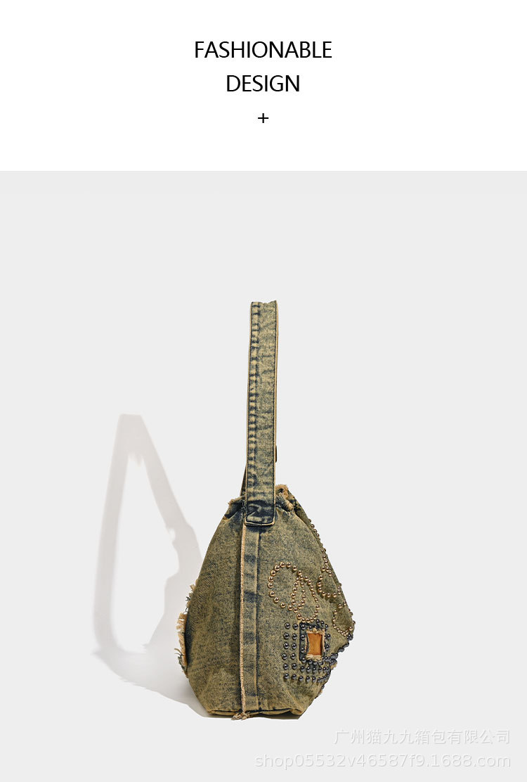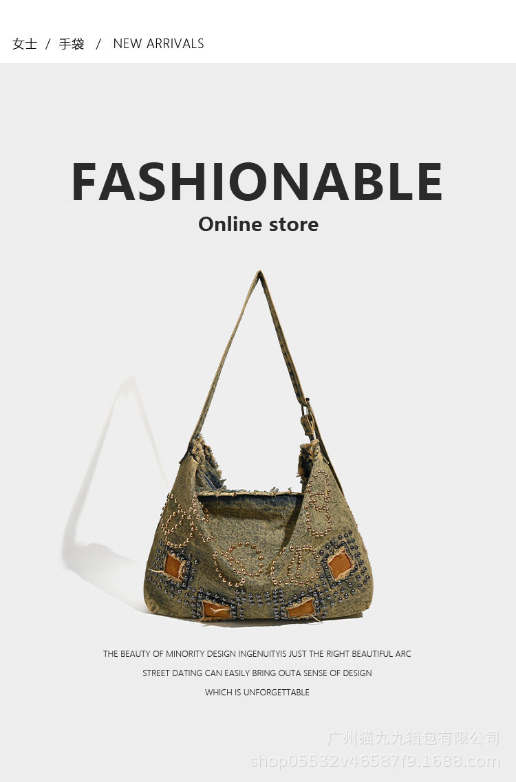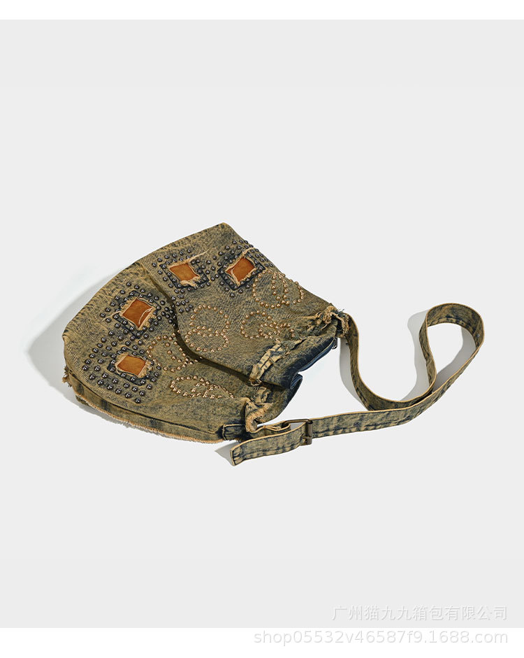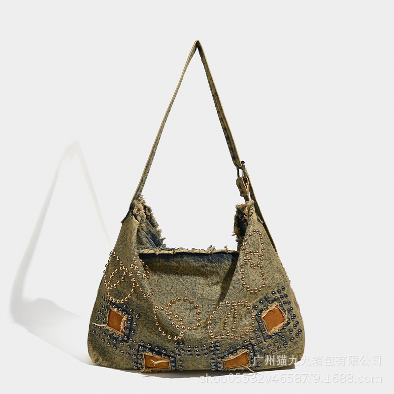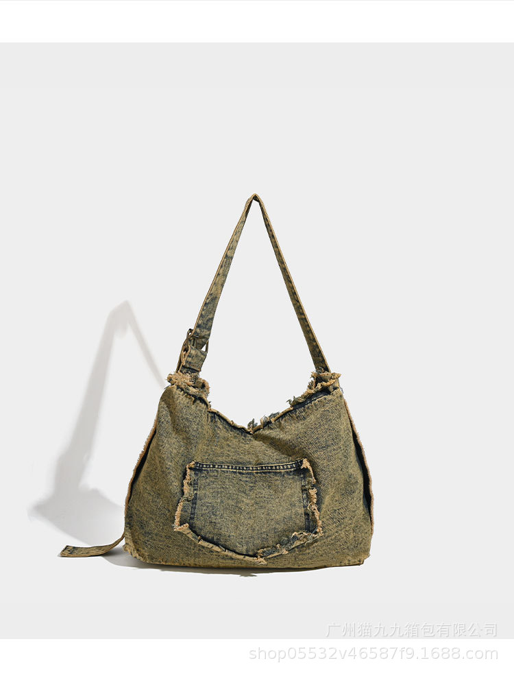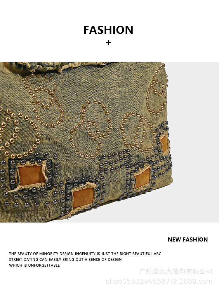 대용량 토트 백 폐기물 지구 스타일 빈티지 데님 가방 미국 트렌드 크로스 바디 백 리벳 디자인 숄더 백