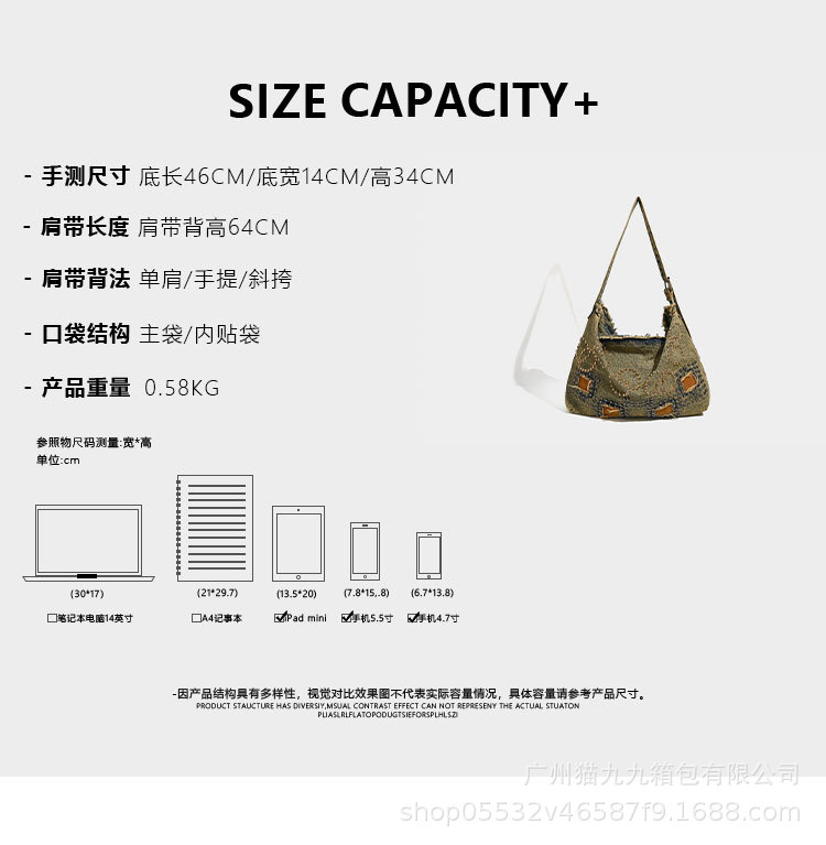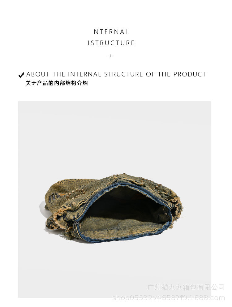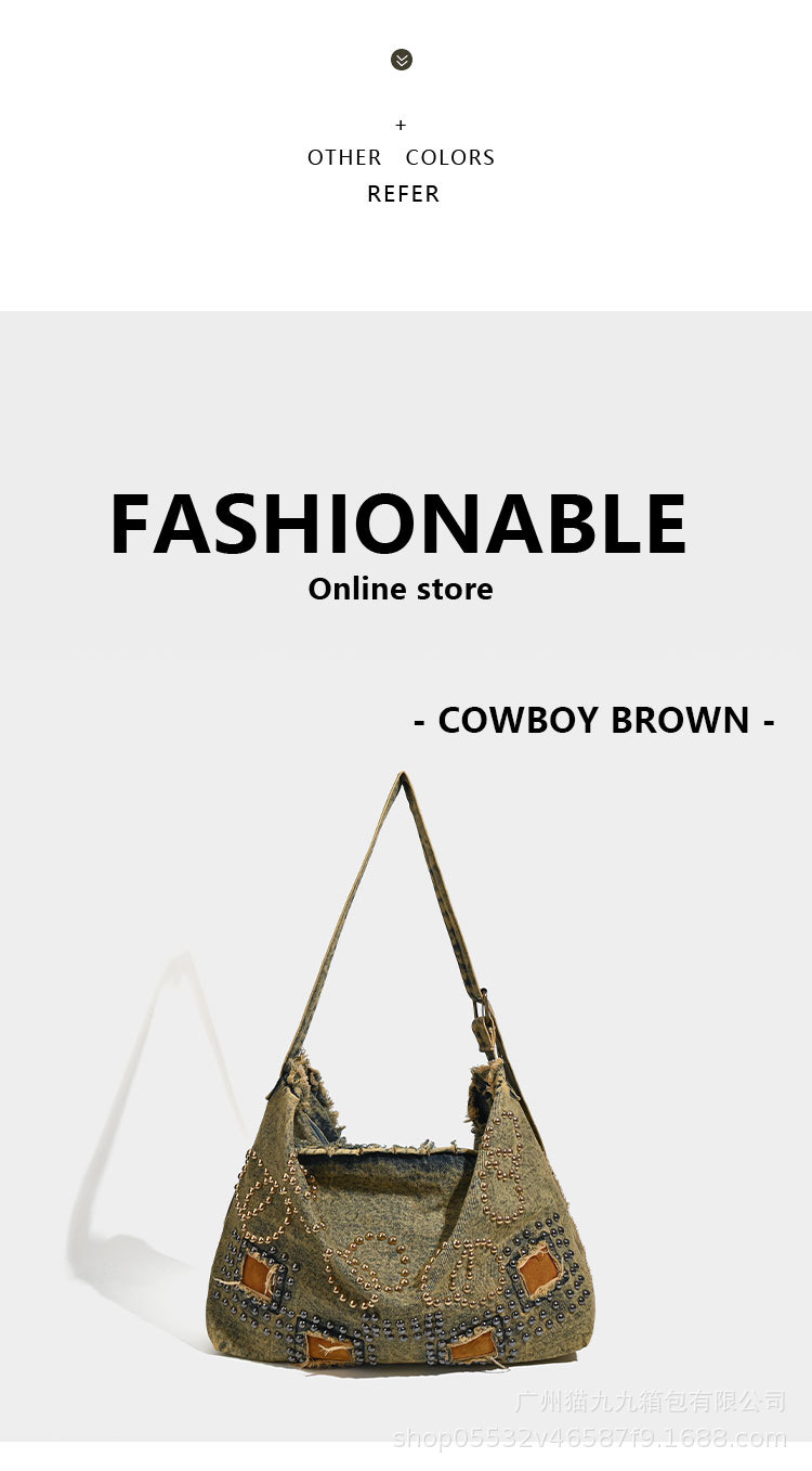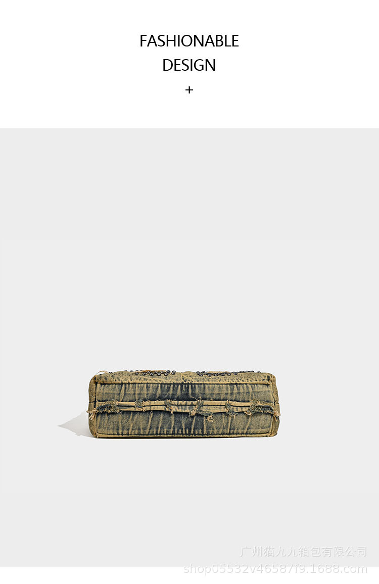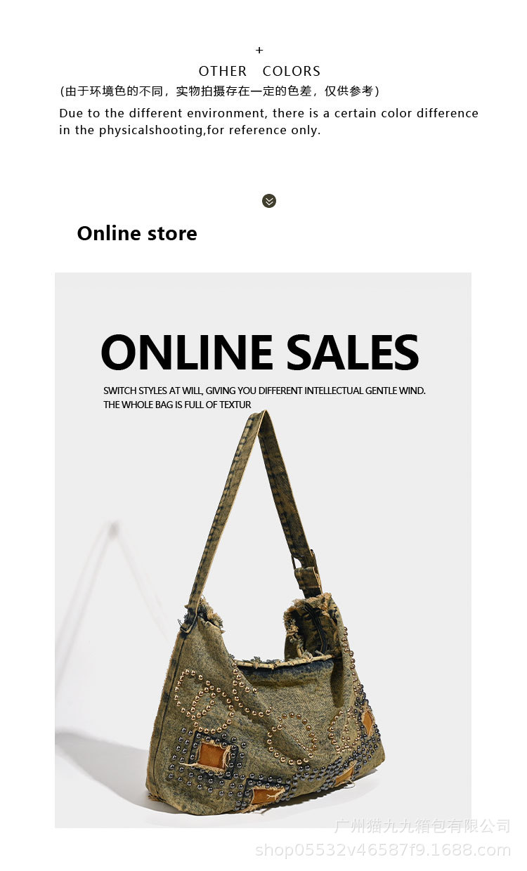 대용량 토트 백 폐기물 지구 스타일 빈티지 데님 가방 미국 트렌드 크로스 바디 백 리벳 디자인 숄더 백