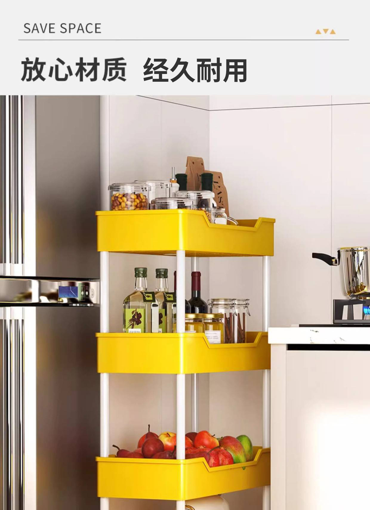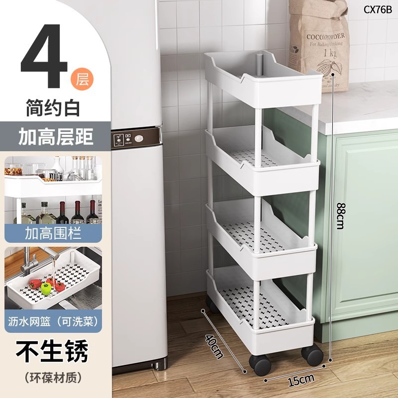 틈새 수납 선반 바닥에 서있는 다층 주방 좁은 틈새 욕실 욕실 스낵 트롤리 냉장고 사이드 수납 선반스토어 가기