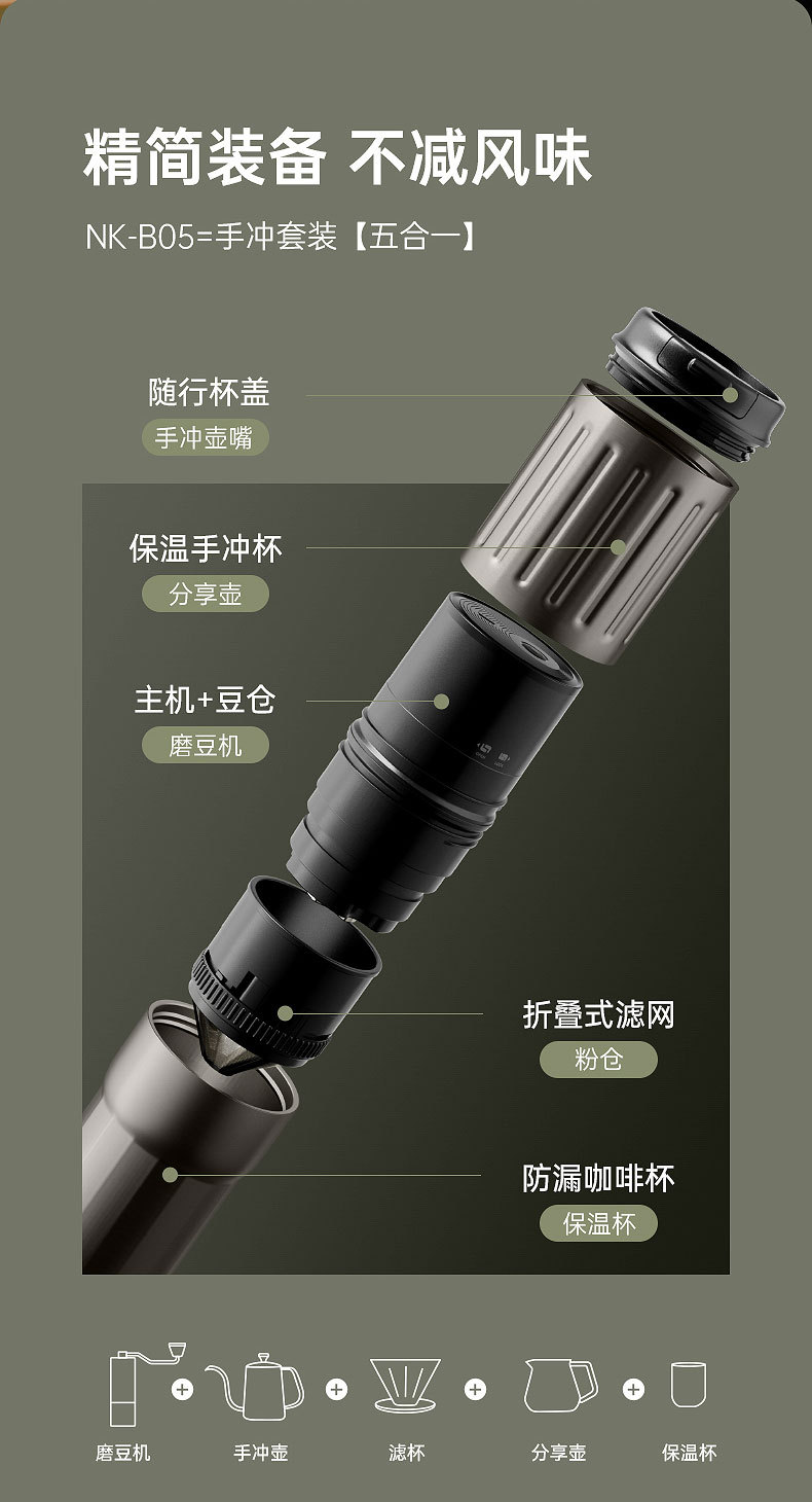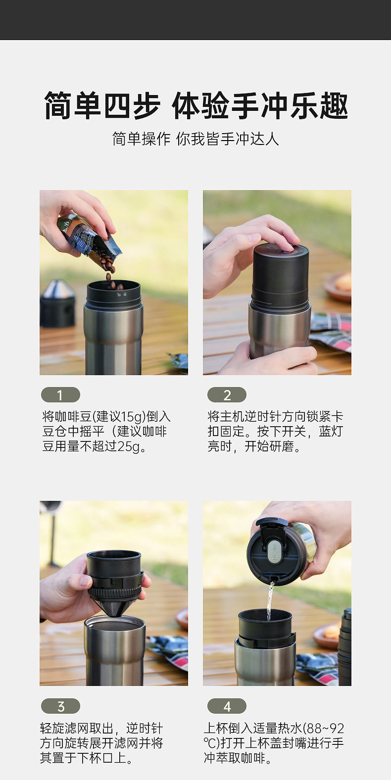 NICOH 휴대용 커피 머신 전기 콩 그라인더 가정용 미니 1 인 여행 신선한 연삭 양조 연삭 핸드 번치스토어 가기