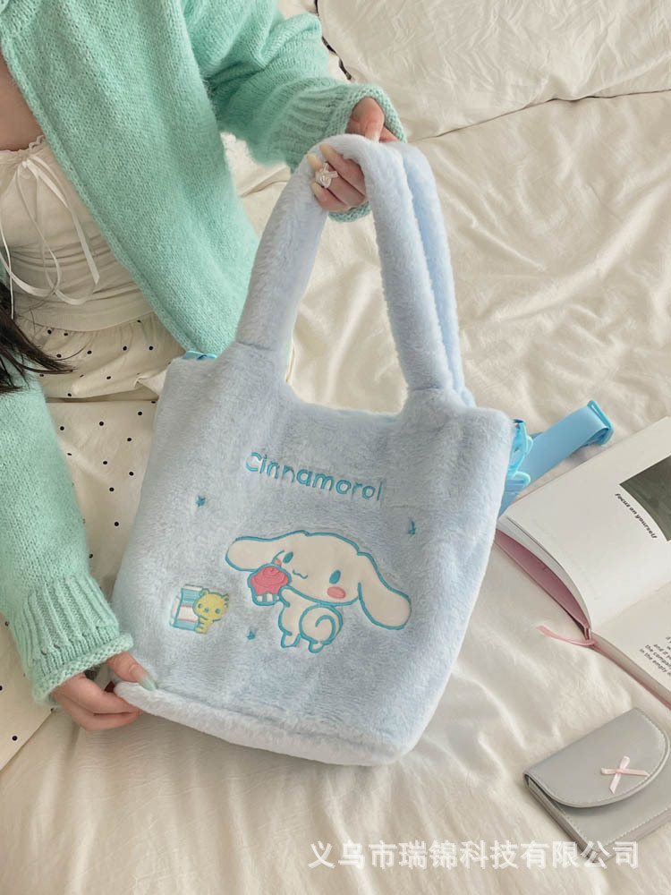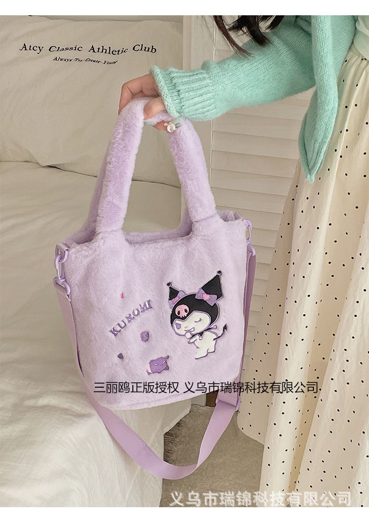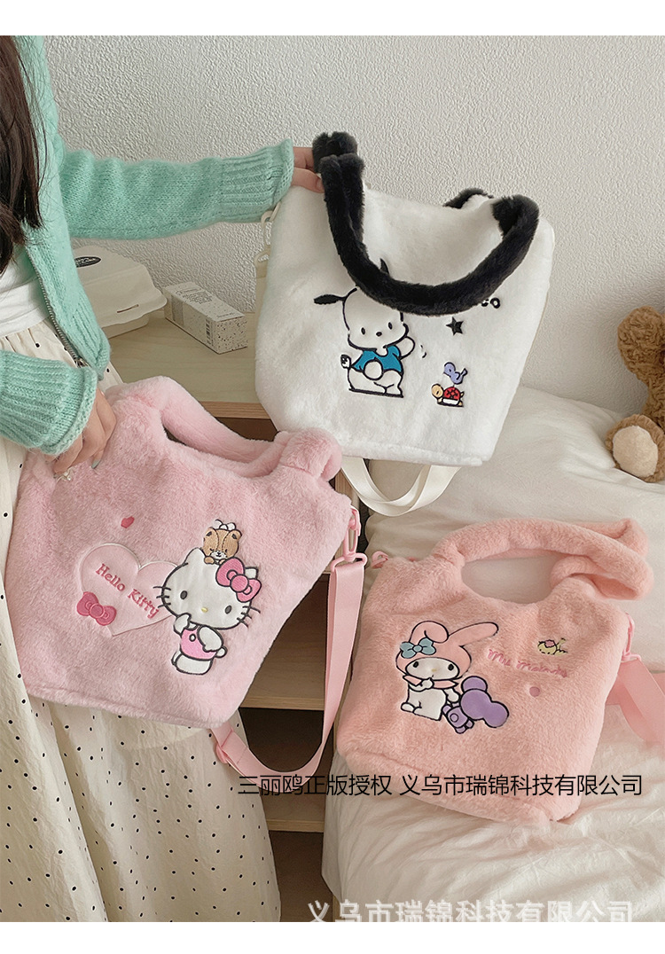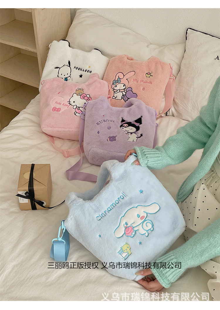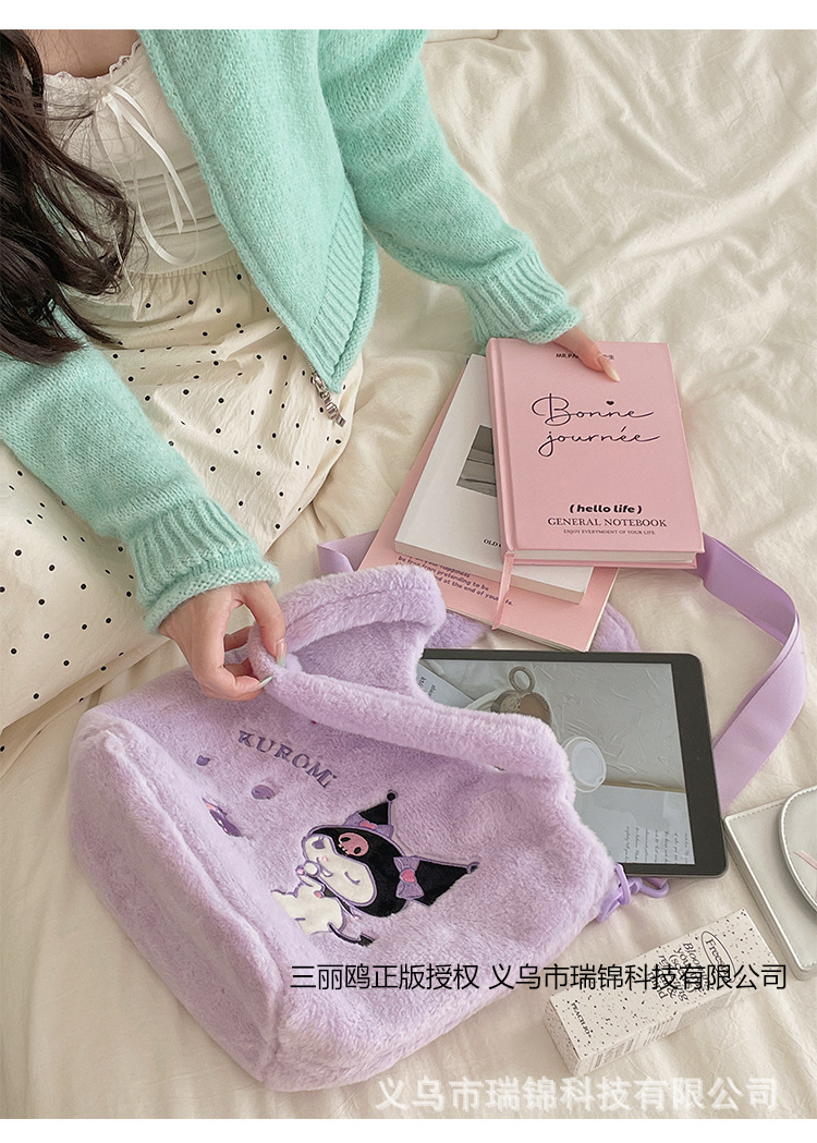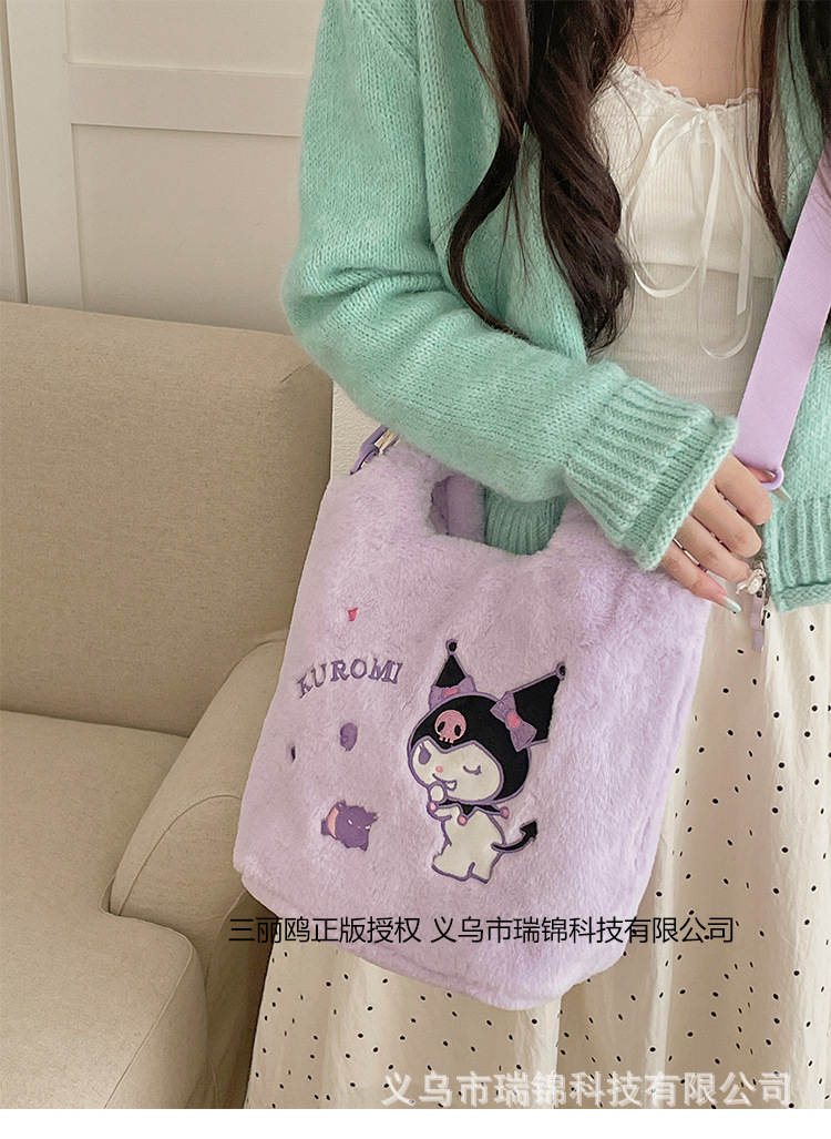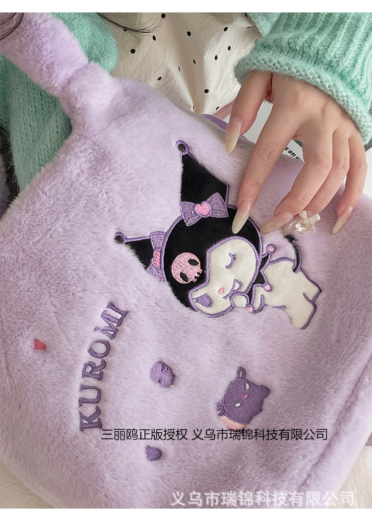 【정가】가을 겨울용 플러시 크로스백 산리오 정품 라이선스 자수 핸드백 쿠로미 여성 가방스토어 가기