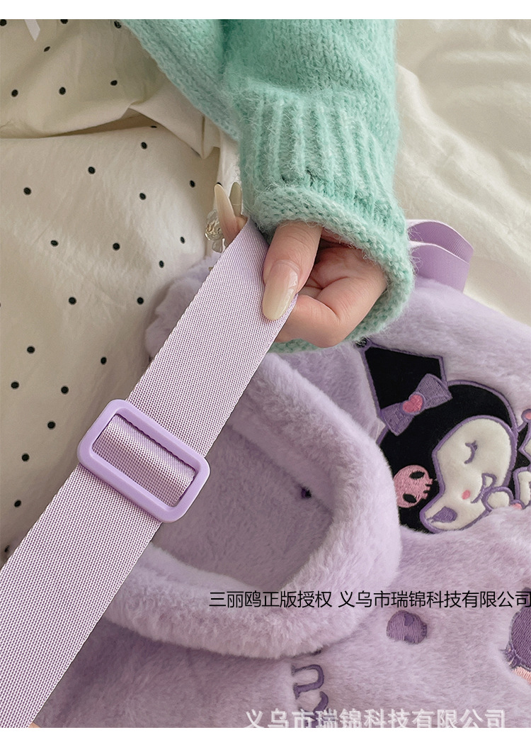 【정가】가을 겨울용 플러시 크로스백 산리오 정품 라이선스 자수 핸드백 쿠로미 여성 가방