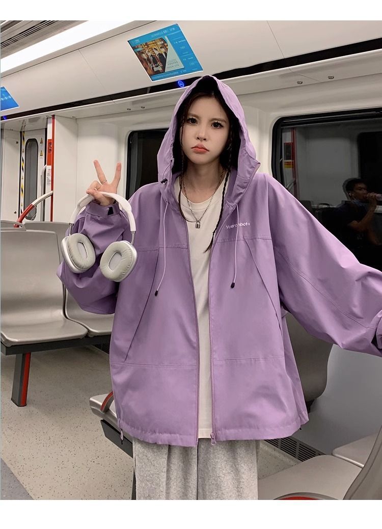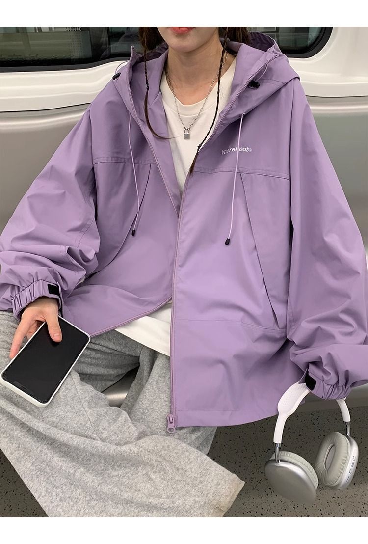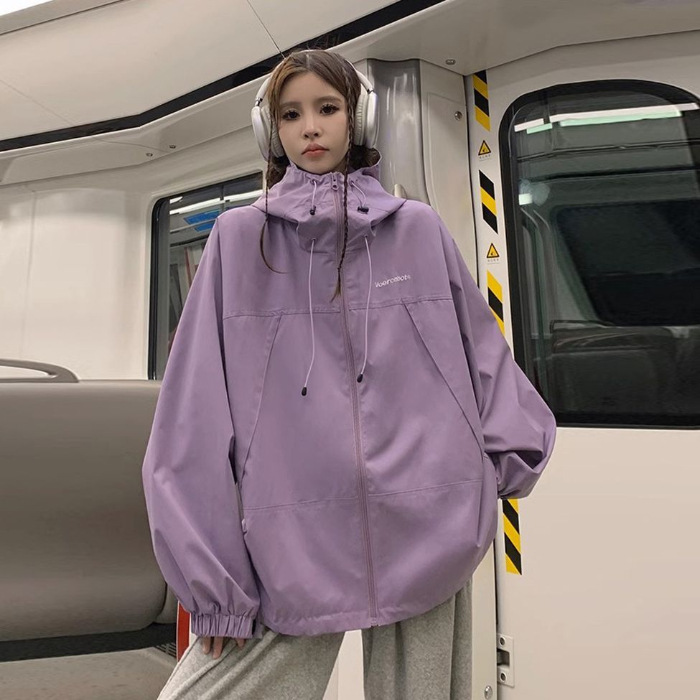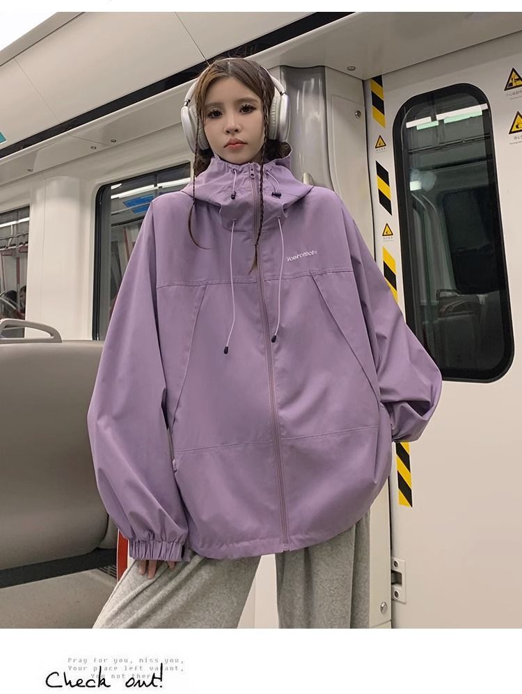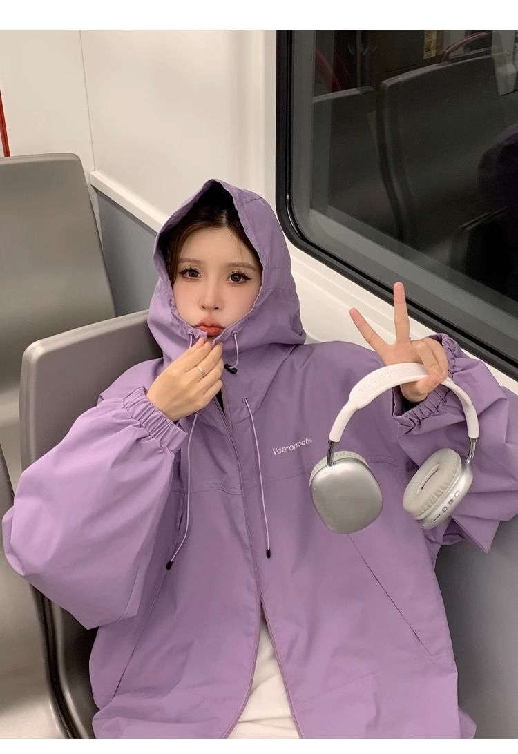 새로운 미국 스타일 레트로 야외 스포츠 보라색 충전 의류 남성과 여성을위한 유행 브랜드 느슨한 재킷 코트 방풍 등산 세트스토어 가기