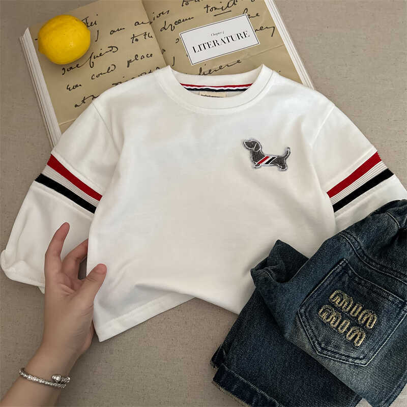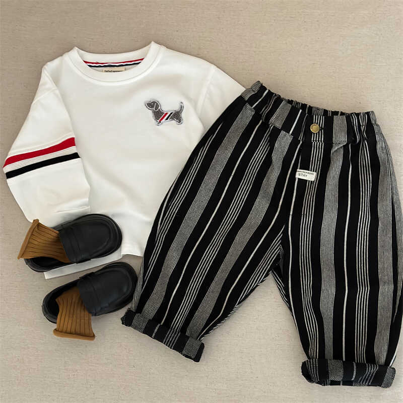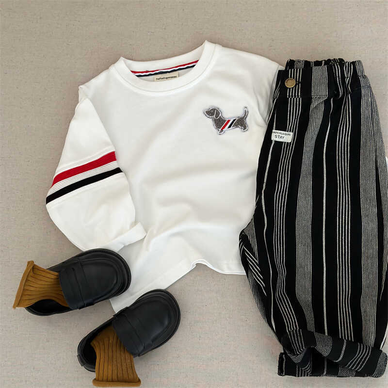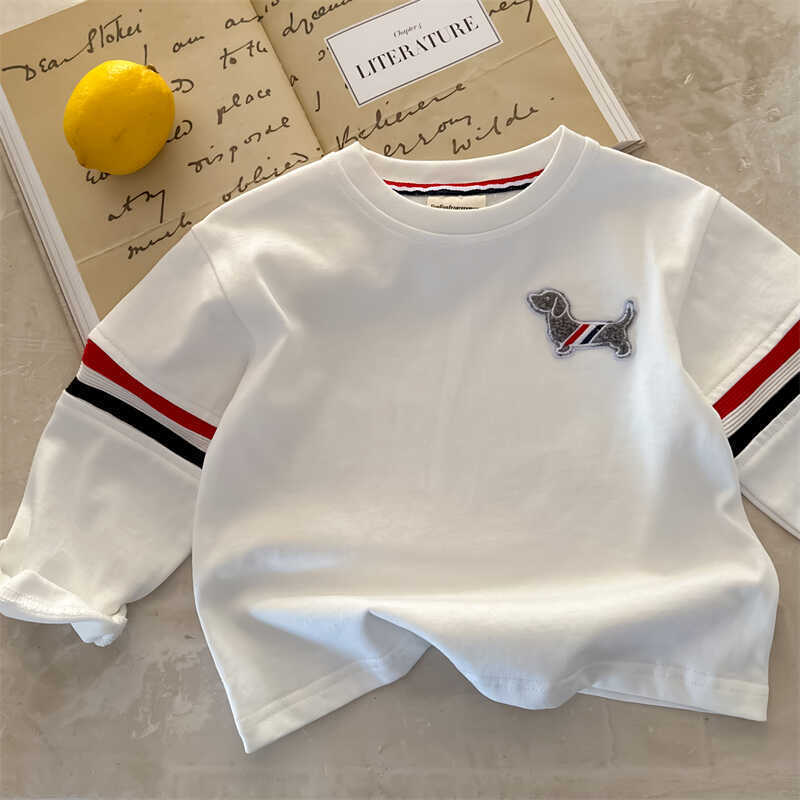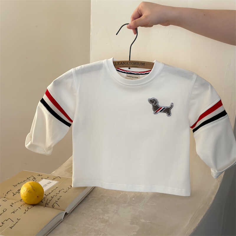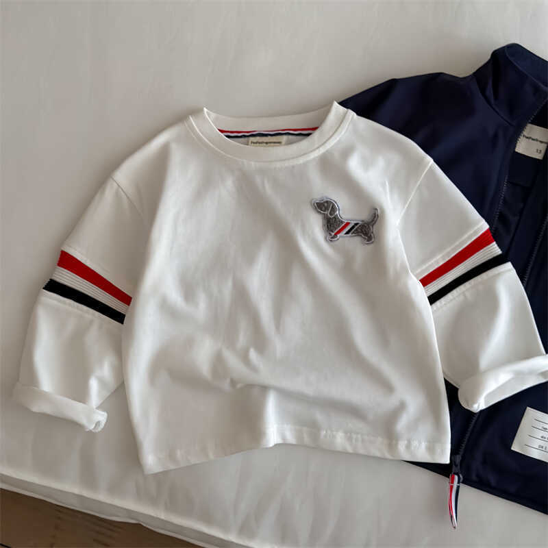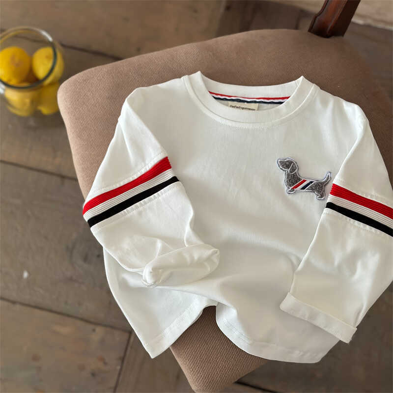 어린이 코튼 티셔츠 2024 가을 패션 트렌디 브랜드 긴팔 티셔츠 아기 강아지 라벨링 크루 넥베이스 셔츠 트렌디