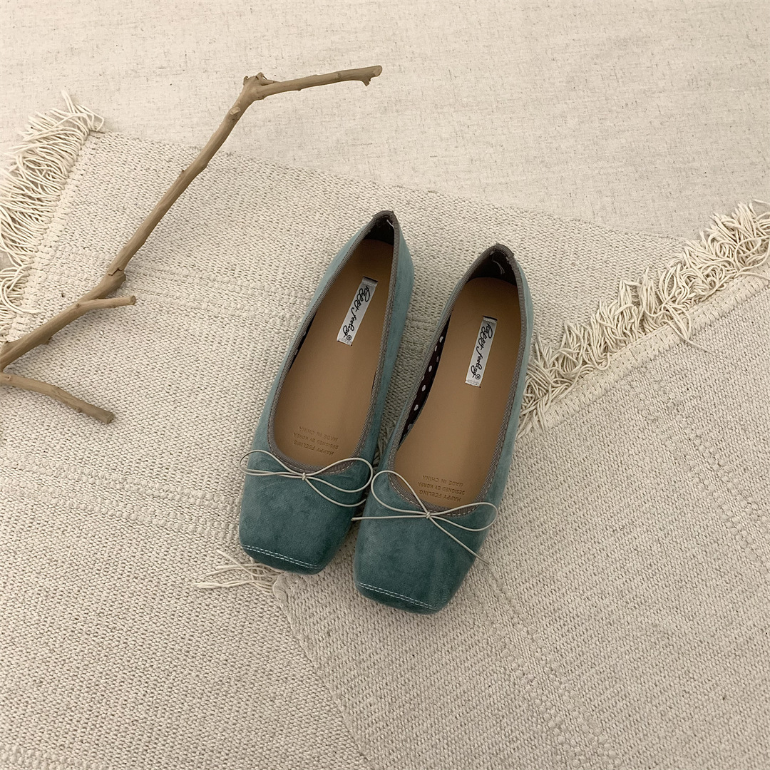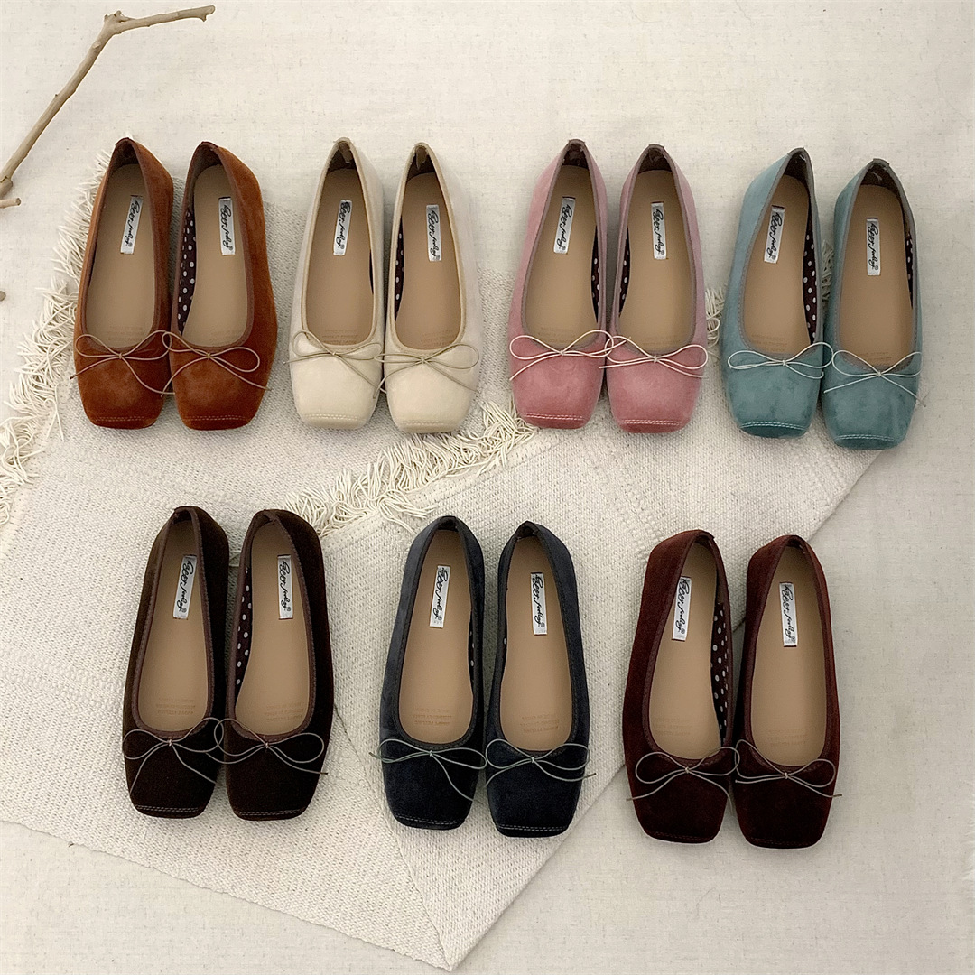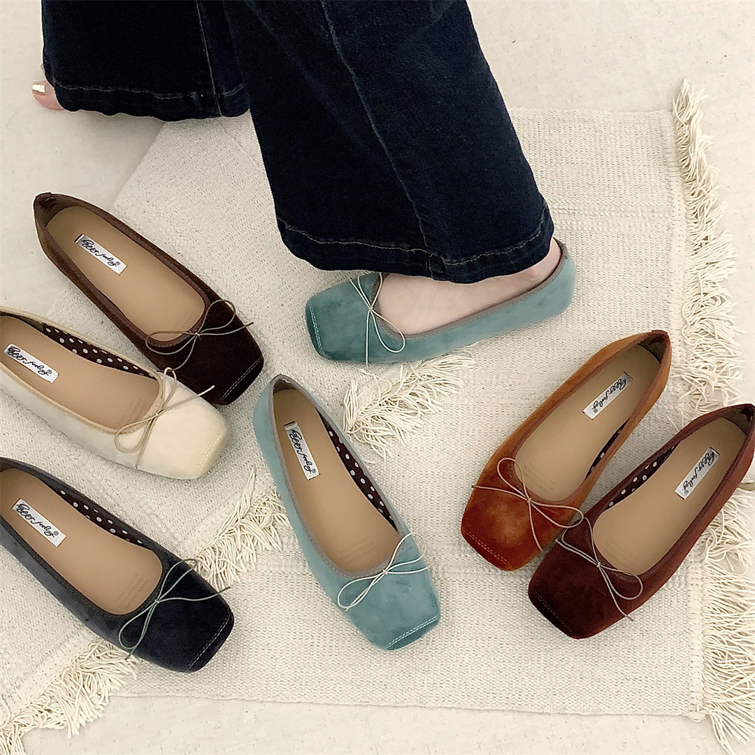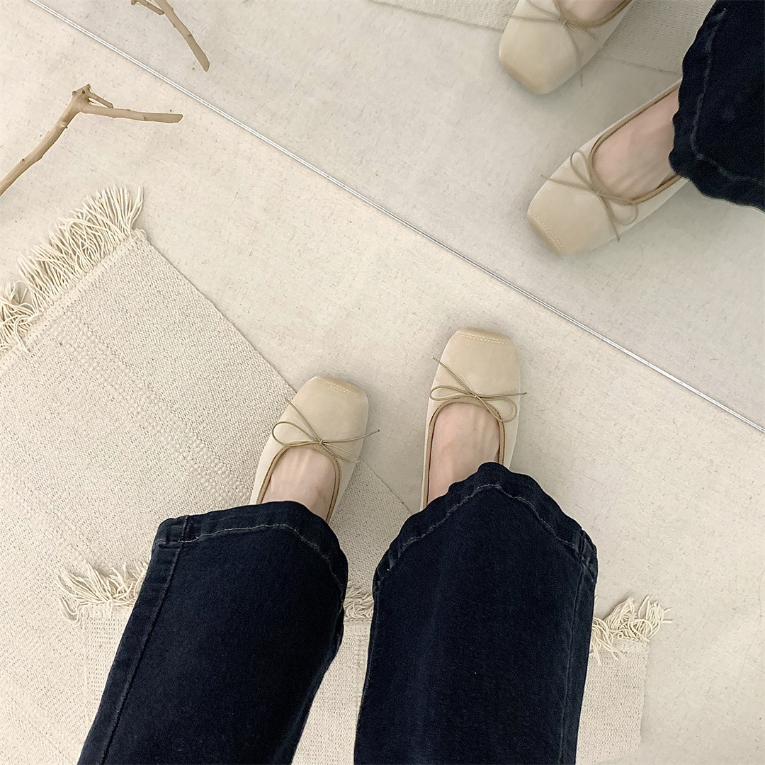 빈티지 부드러운 활 펌프 플랫 밀크 신발 여름 부드러운 바닥 여성 신발 프랑스 이브닝 스타일 싱글 신발 발레 신발스토어 가기