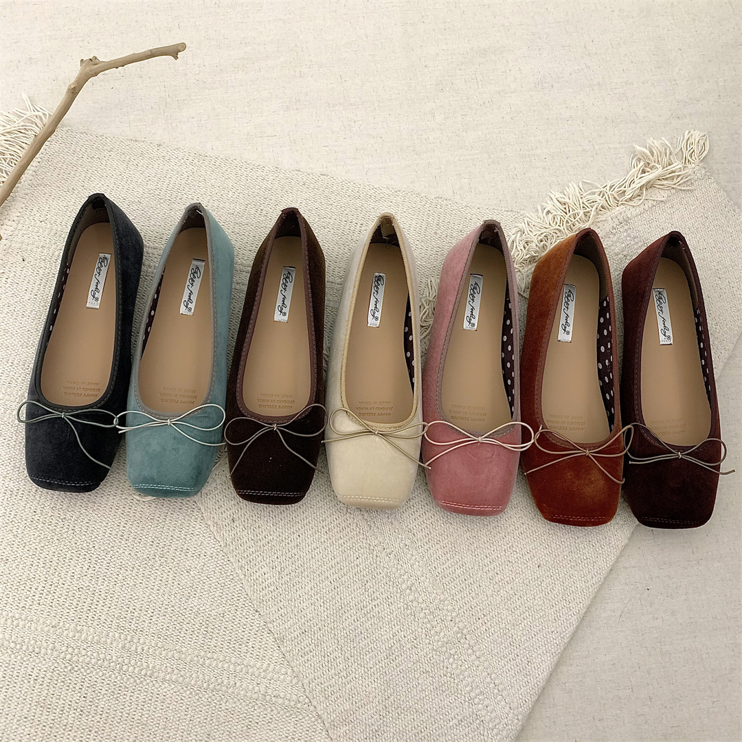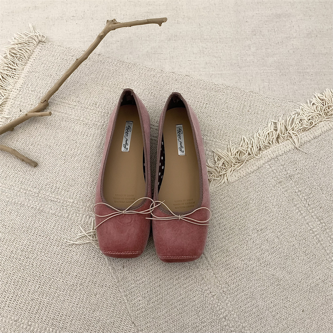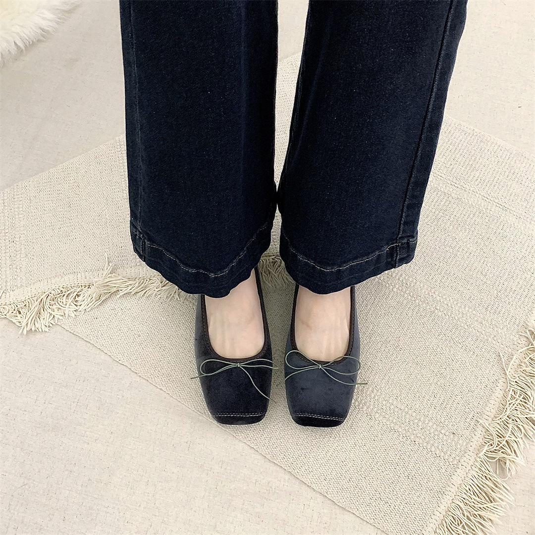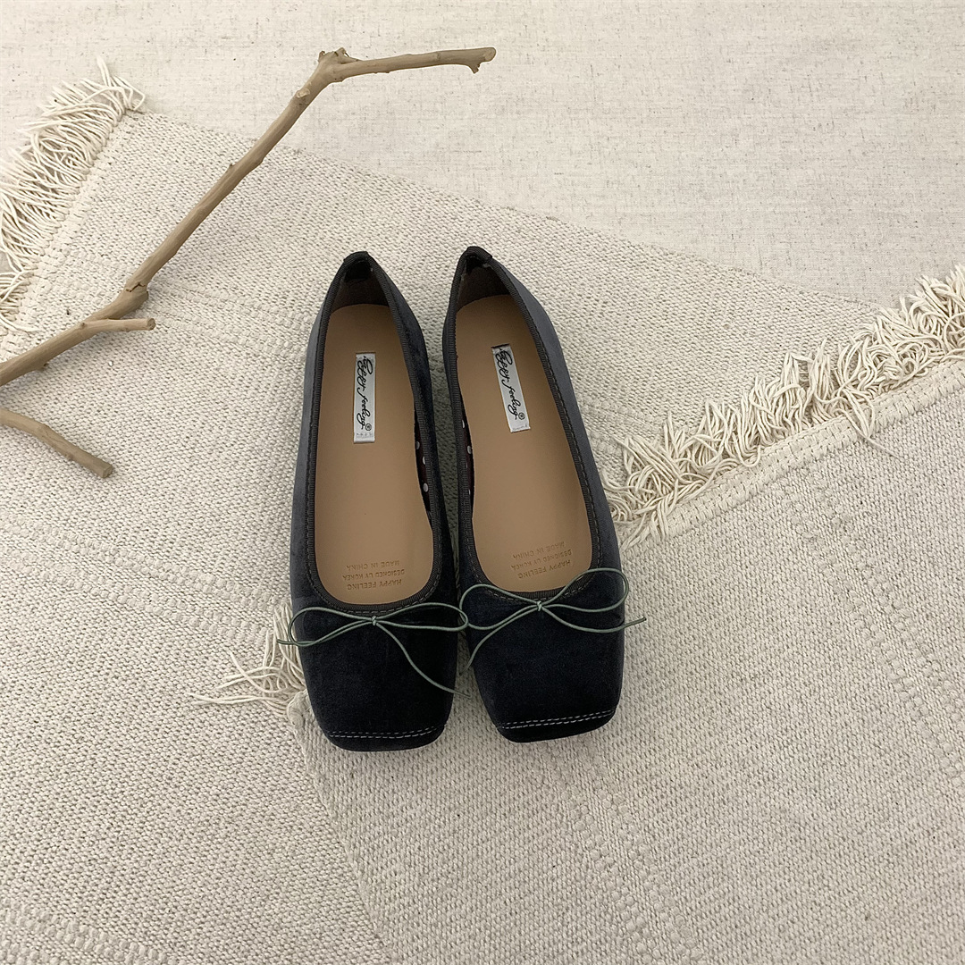 빈티지 부드러운 활 펌프 플랫 밀크 신발 여름 부드러운 바닥 여성 신발 프랑스 이브닝 스타일 싱글 신발 발레 신발스토어 가기