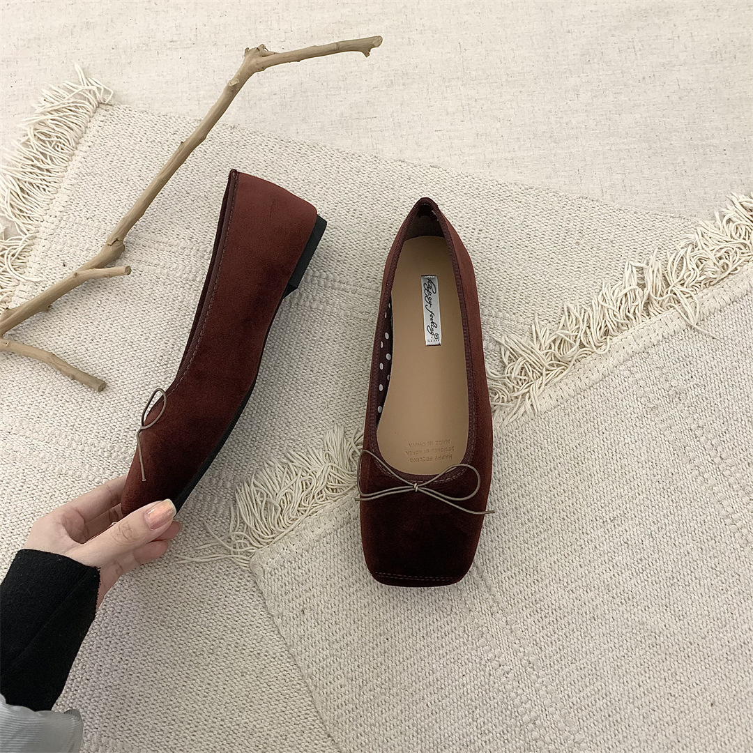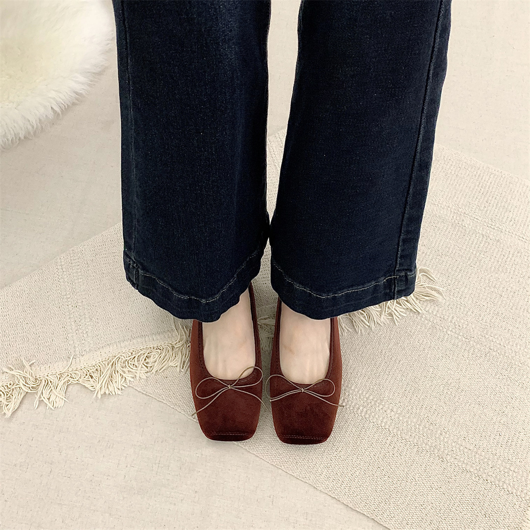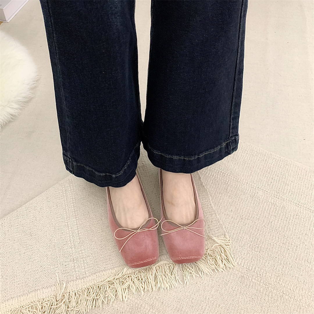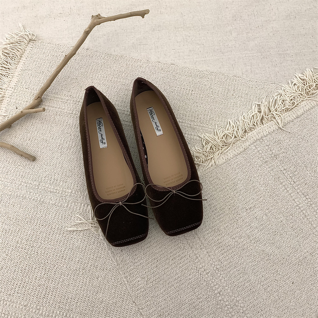 빈티지 부드러운 활 펌프 플랫 밀크 신발 여름 부드러운 바닥 여성 신발 프랑스 이브닝 스타일 싱글 신발 발레 신발스토어 가기