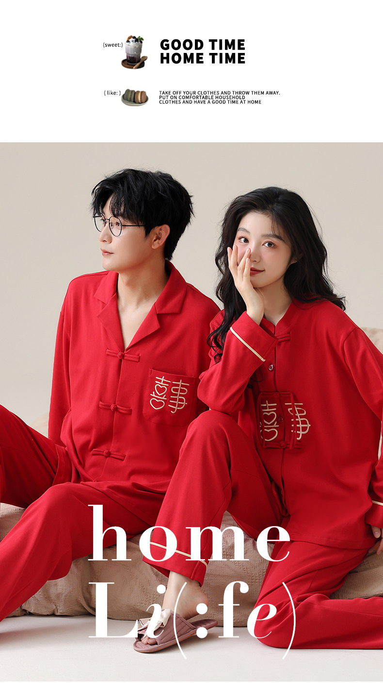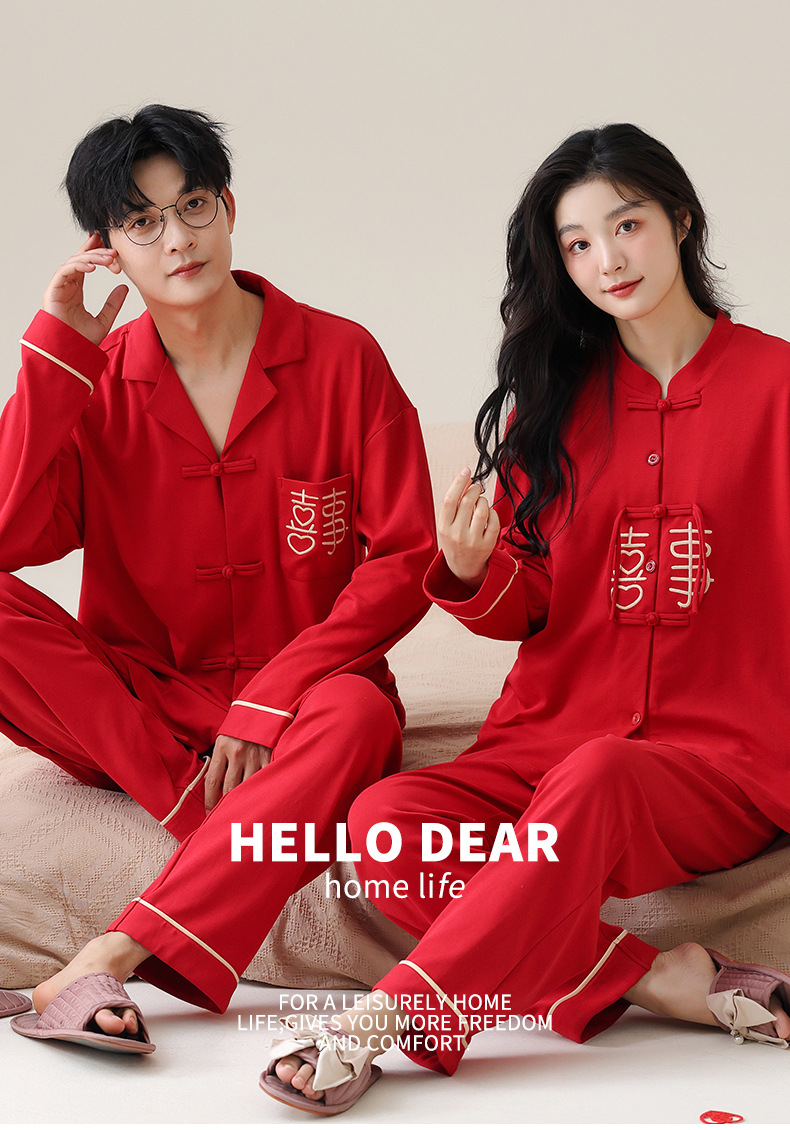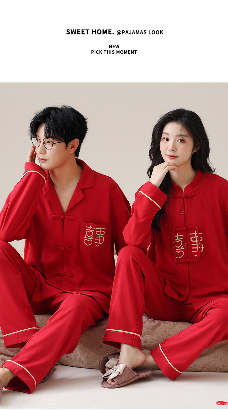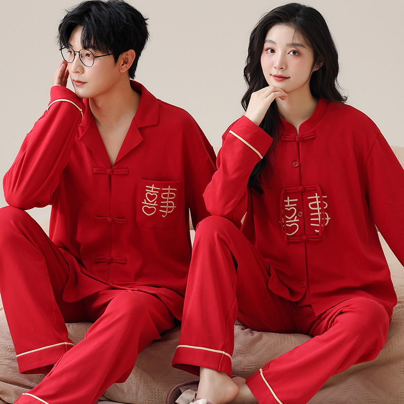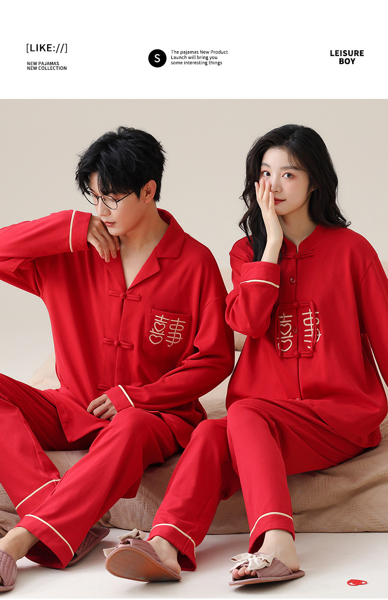 커플 잠옷 봄과 가을 새로운 도착 남성과 여성의 캐주얼 긴 소매 외부 Leica 순수 코튼 홈 옷을 입고 느슨한 세트