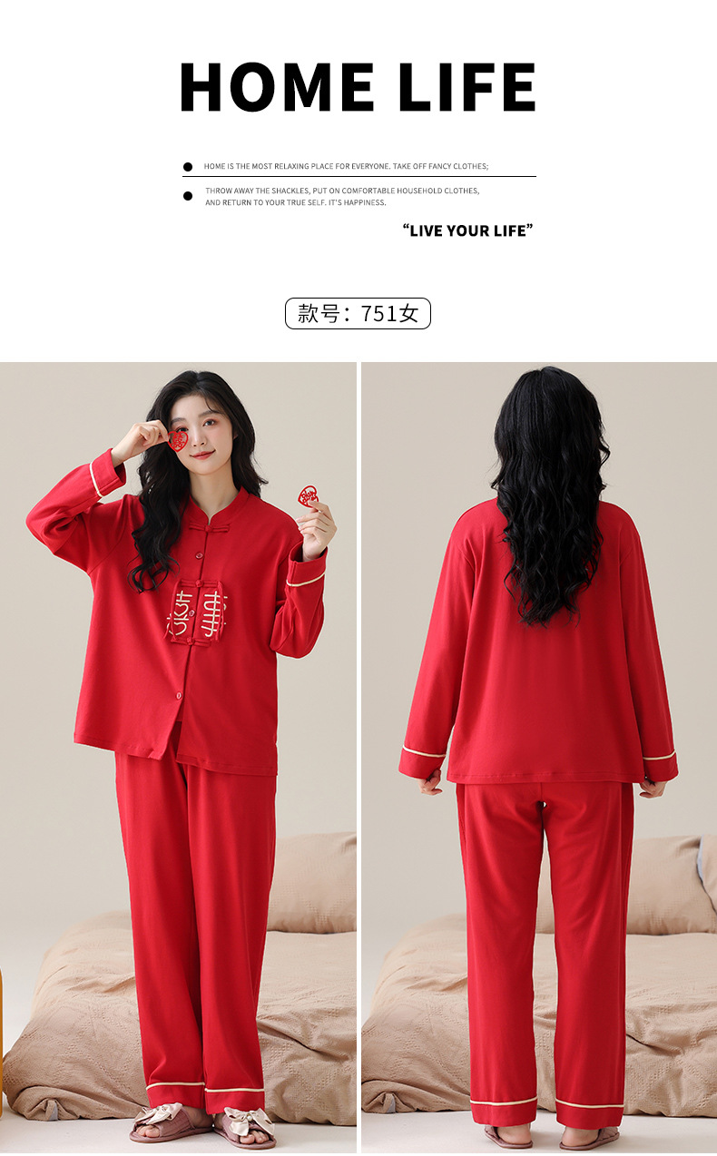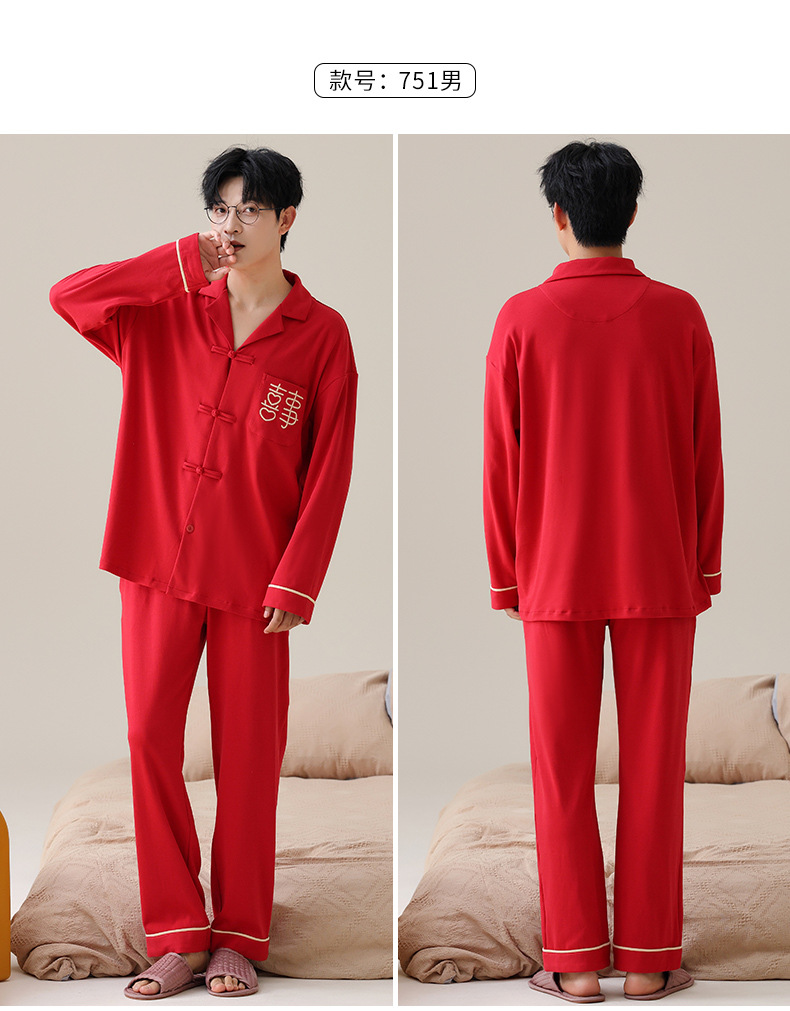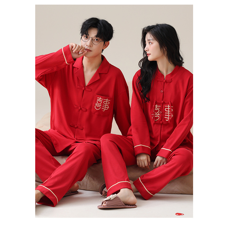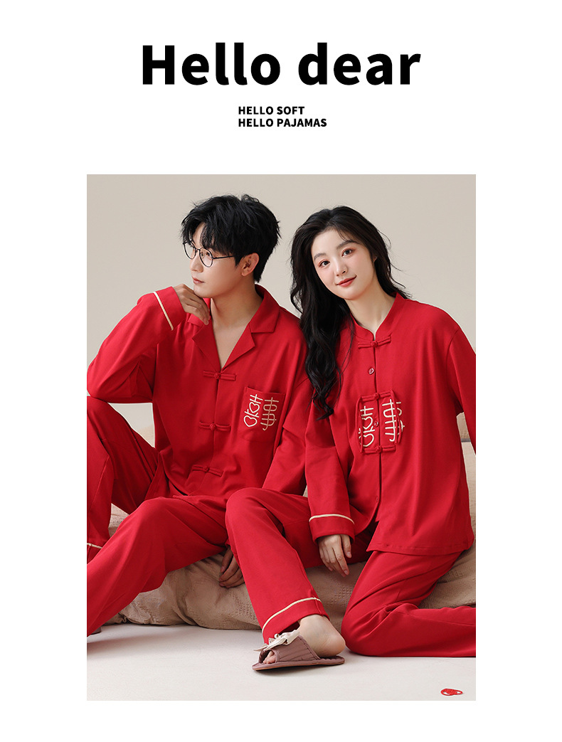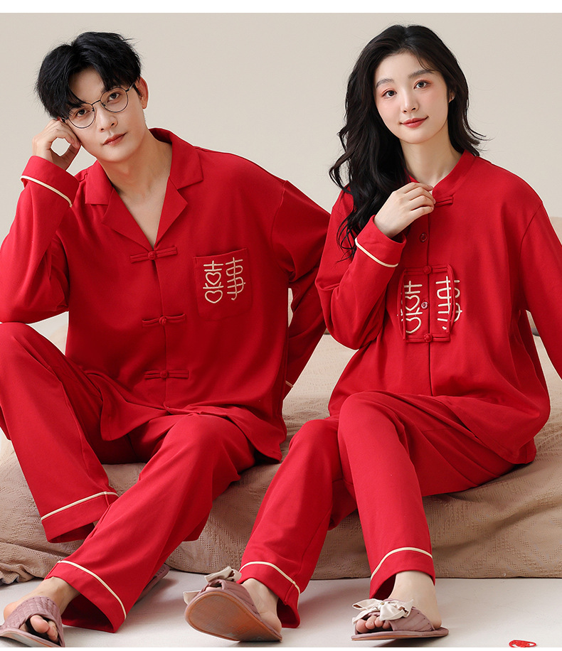 커플 잠옷 봄과 가을 새로운 도착 남성과 여성의 캐주얼 긴 소매 외부 Leica 순수 코튼 홈 옷을 입고 느슨한 세트