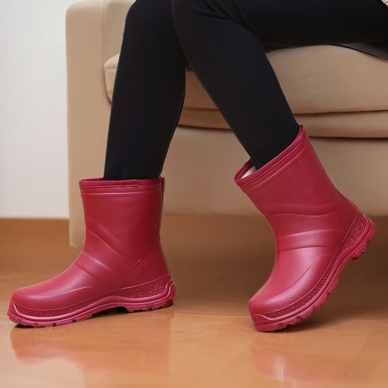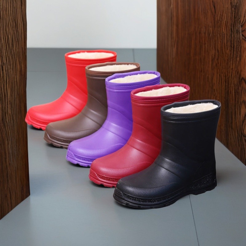 겨울 따뜻한 비 부츠 스노우 부츠 여성용 방수 미끄럼 방지 중간 튜브 따뜻한 기모 두꺼운 한국식 부츠 학생면 신발스토어 가기