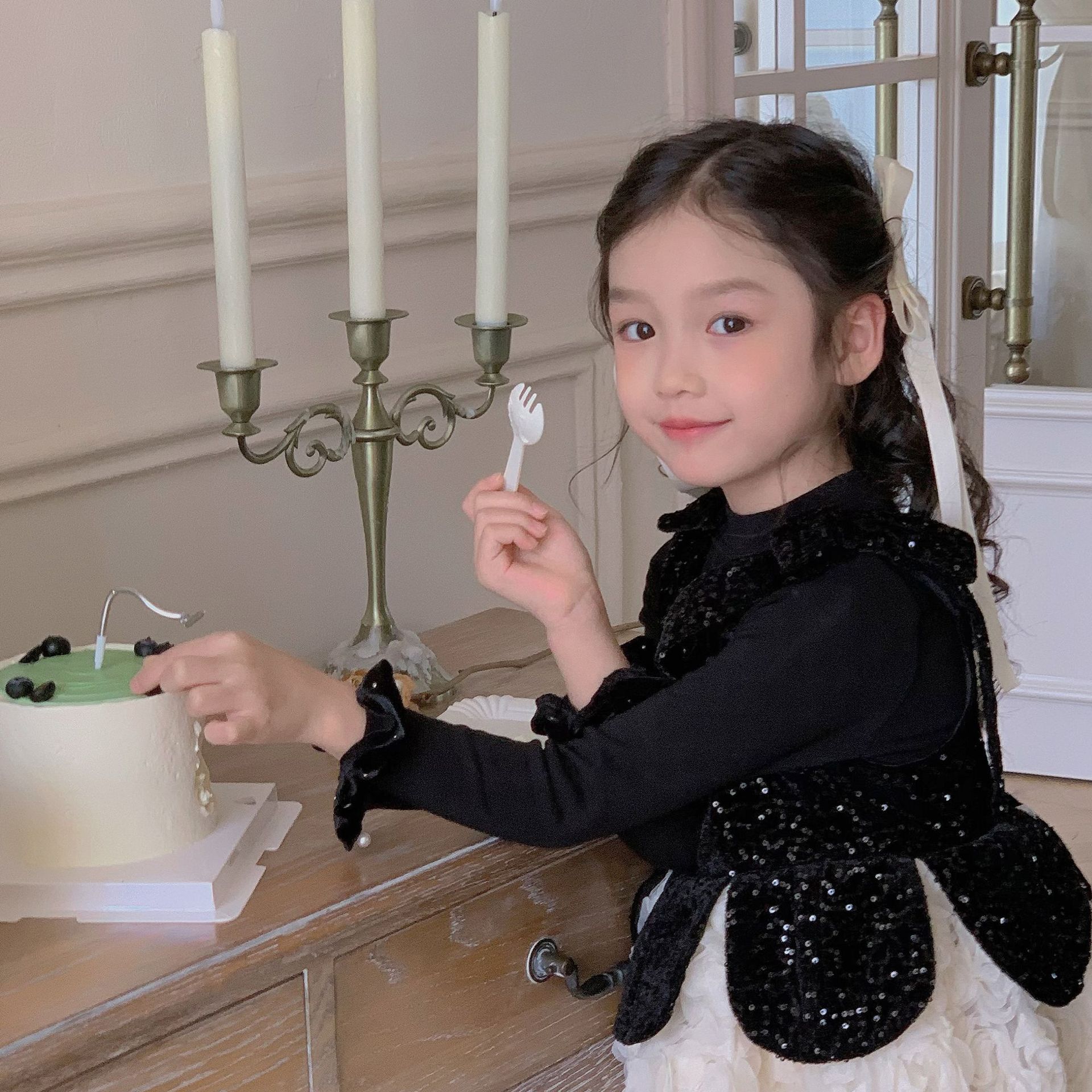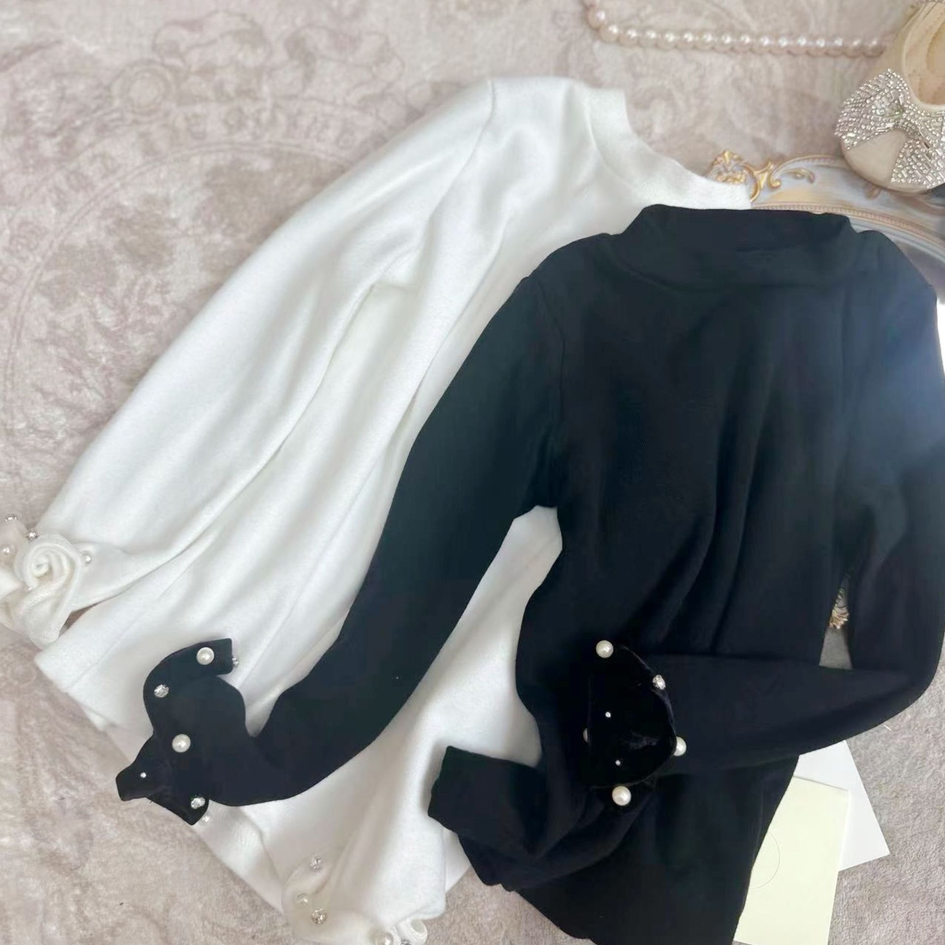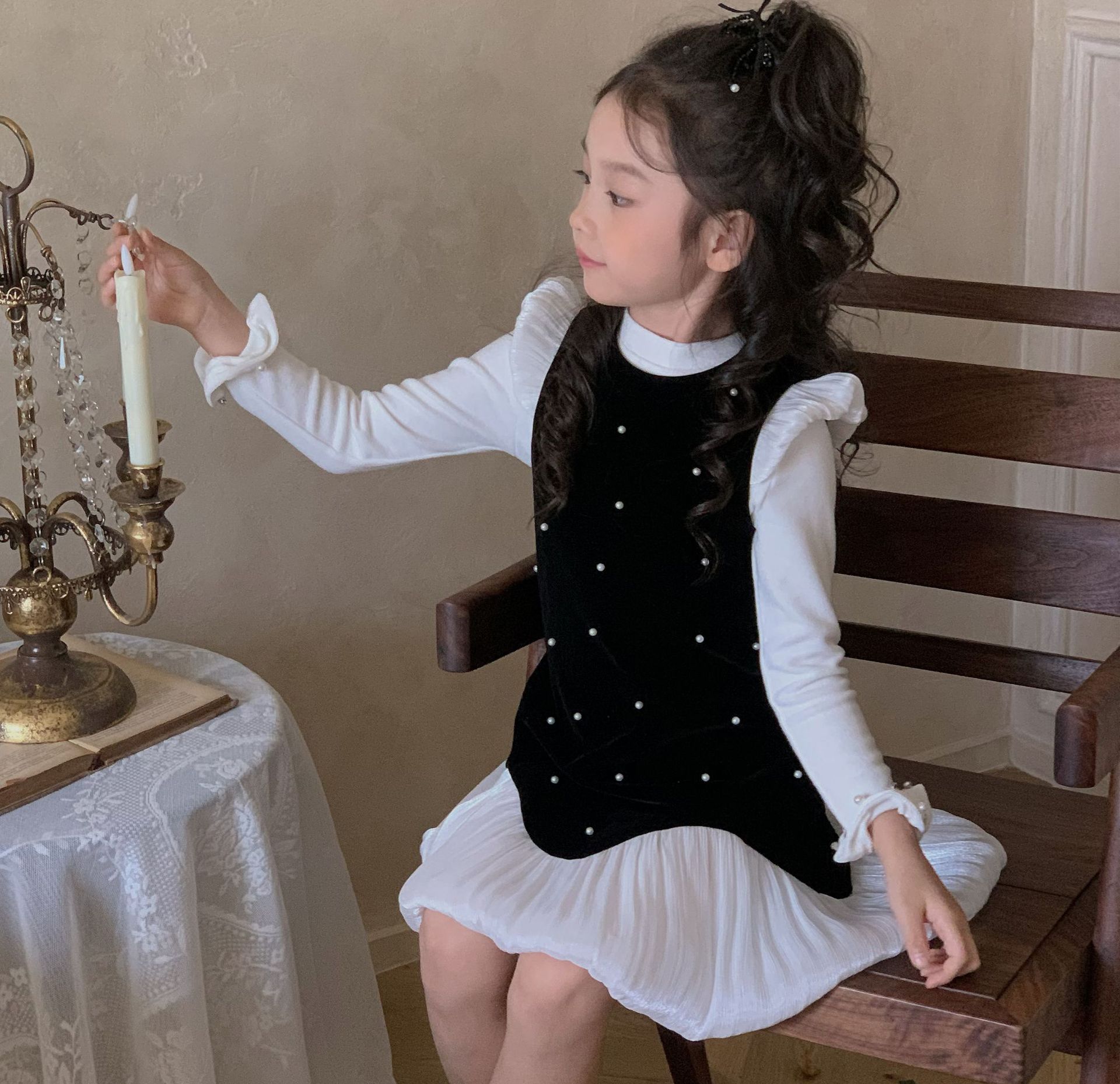 제조 업체 아동복 소녀 기본 바닥 셔츠 가을과 겨울 어린이 연꽃 잎 레이스 얇은 벨벳 긴 소매 서양식 칼라 내부스토어 가기