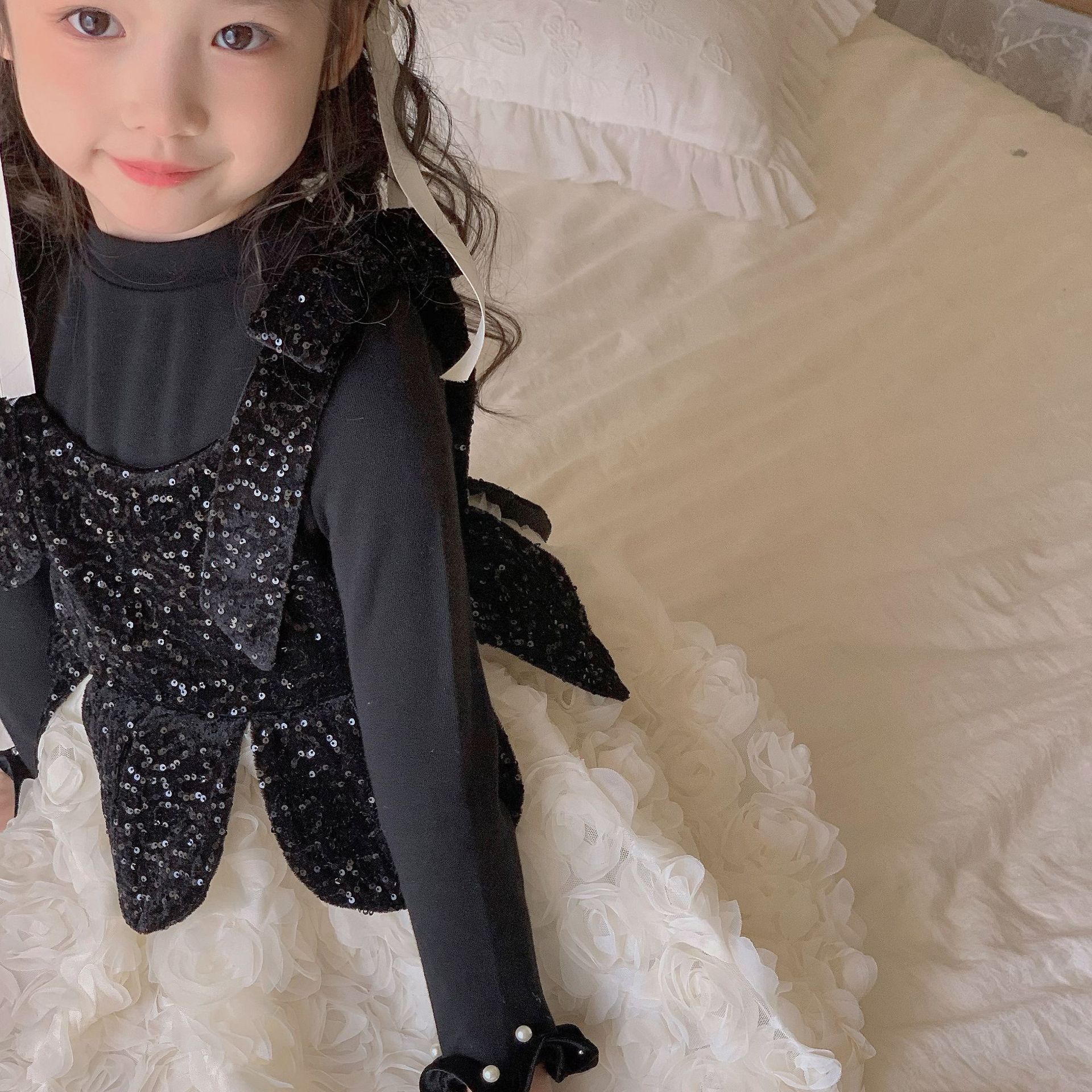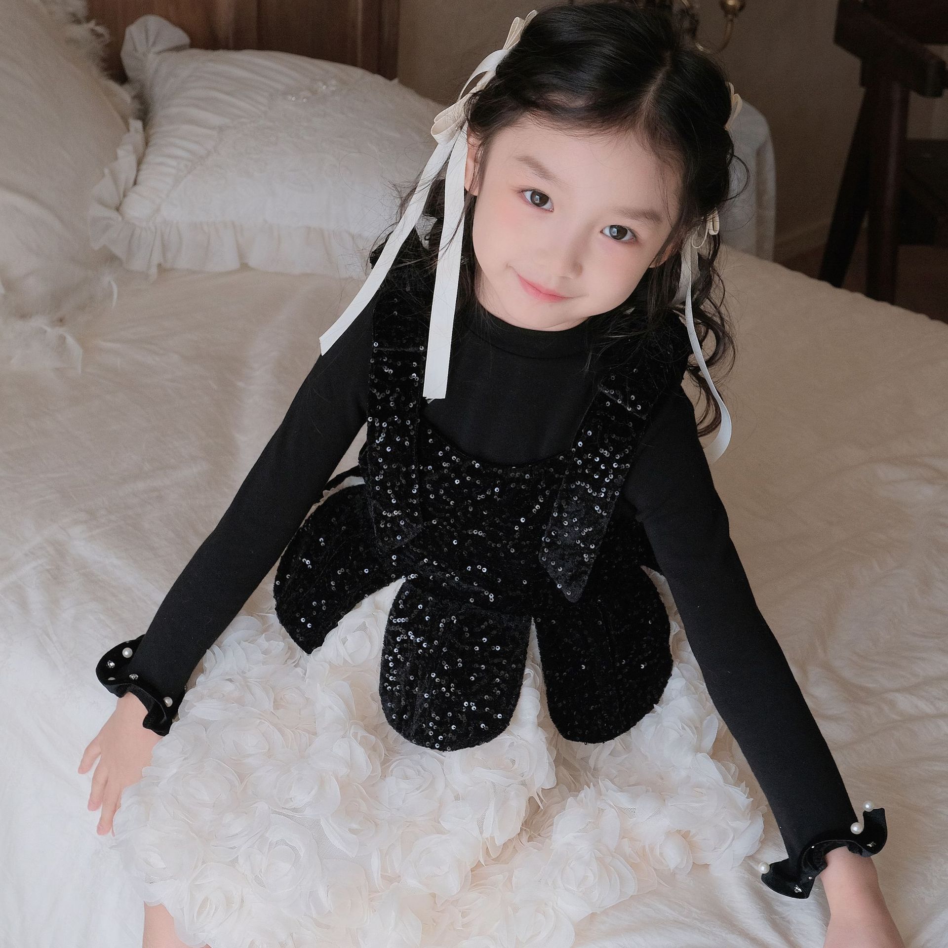 厂家童装女童基础打底衫秋冬款儿童荷叶花边袖口长袖洋气中领内搭