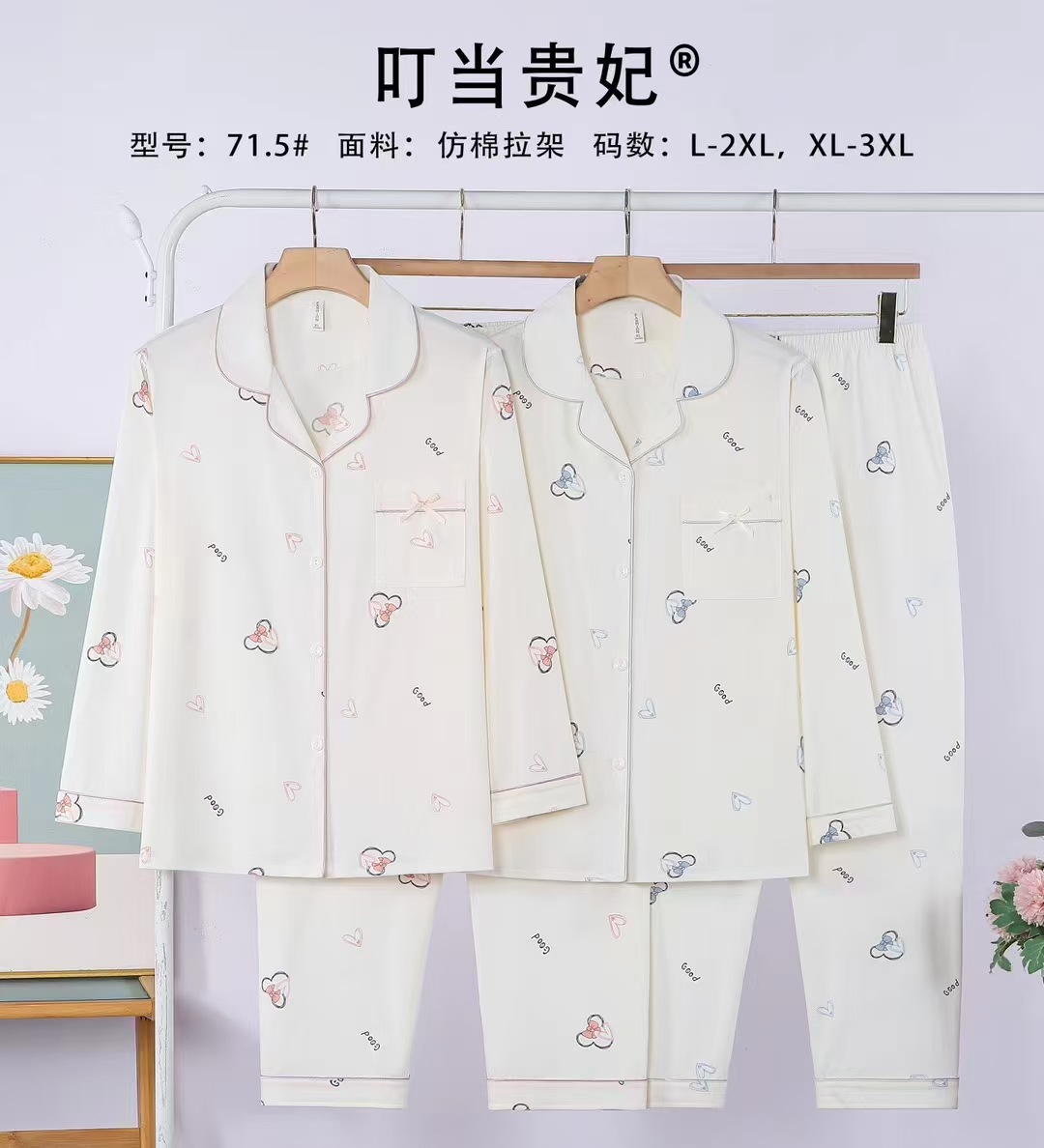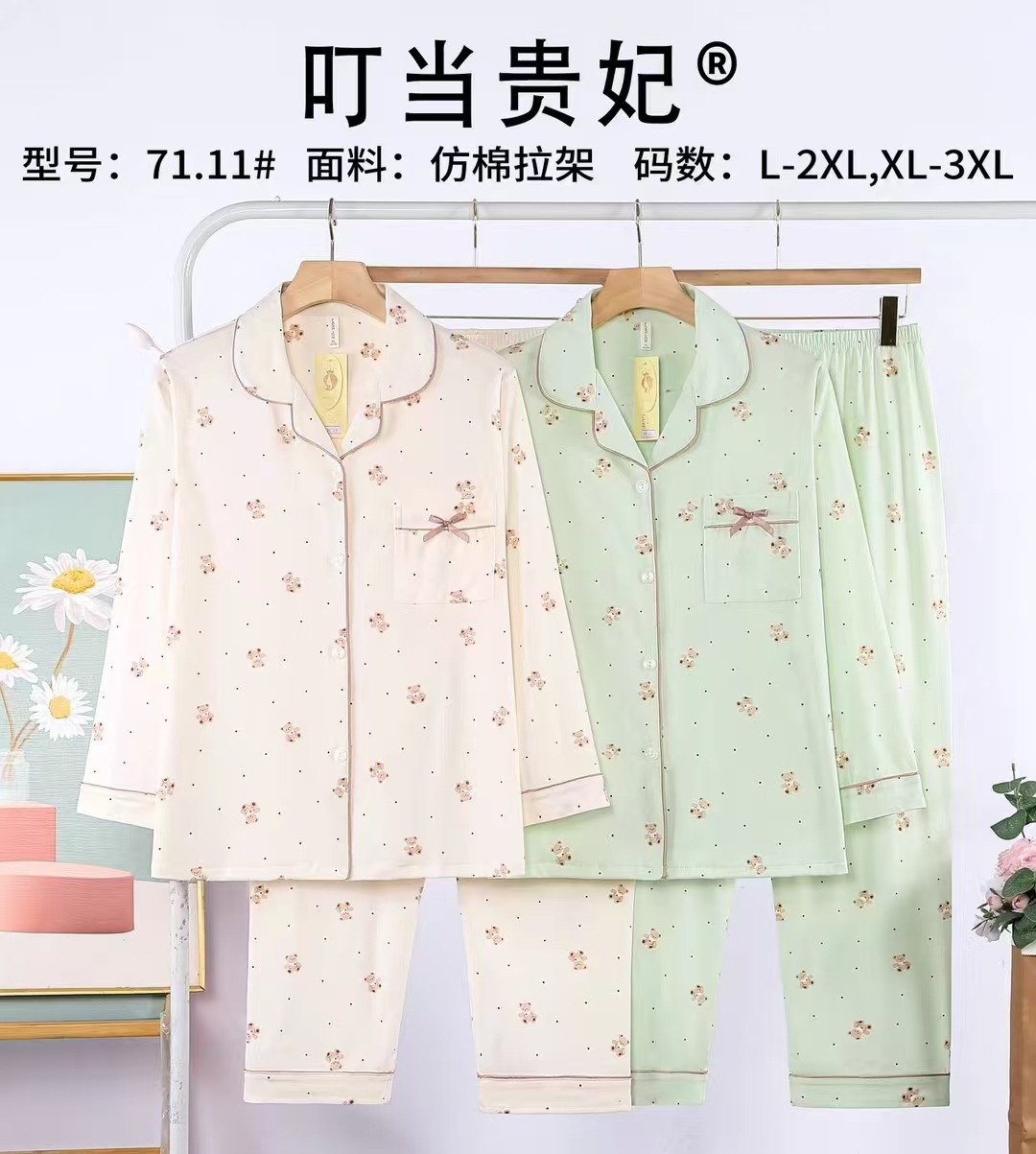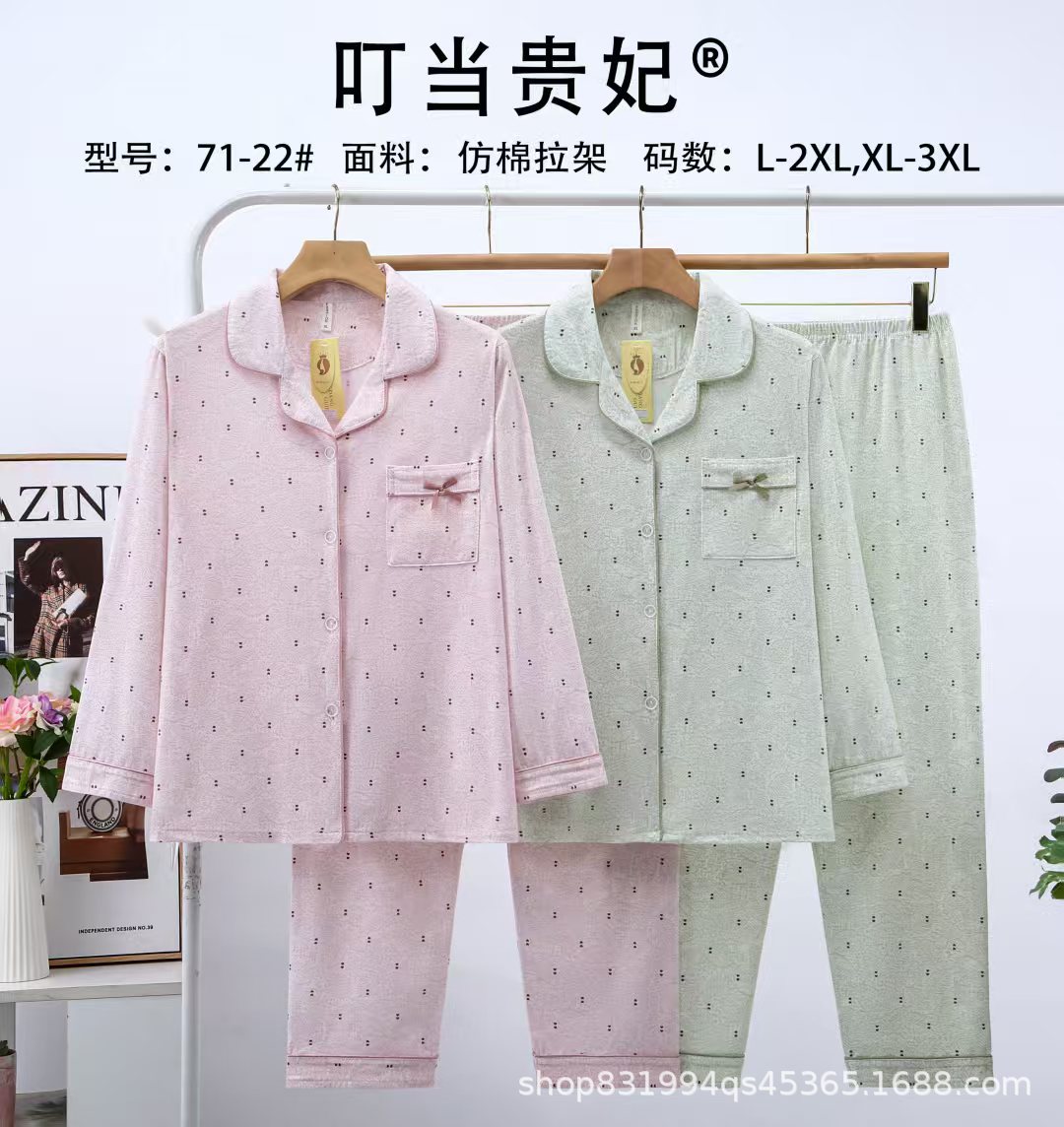 봄과 가을 여성의 오픈 가슴 옷깃 캐주얼 편안한 모조 면 느슨한 긴팔 바지 홈 옷 징글 임페리얼 후궁