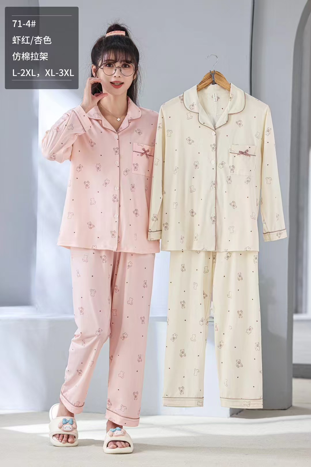 봄과 가을 여성의 오픈 가슴 옷깃 캐주얼 편안한 모조 면 느슨한 긴팔 바지 홈 옷 징글 임페리얼 후궁스토어 가기