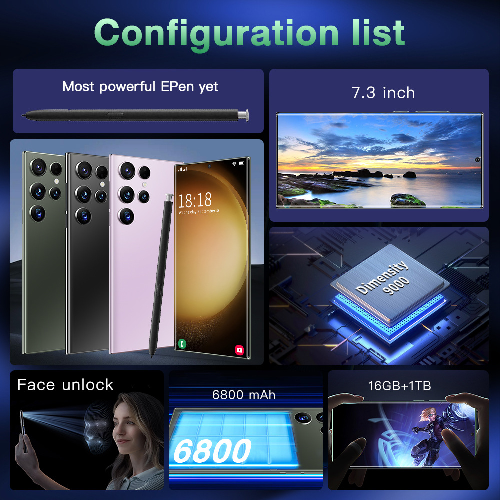 S23울트라 국경 7.3 인치 안드로이드 8 코어 HD 화면 스마트 폰 2 16 내장 펜 공장 재고 저렴한 가격