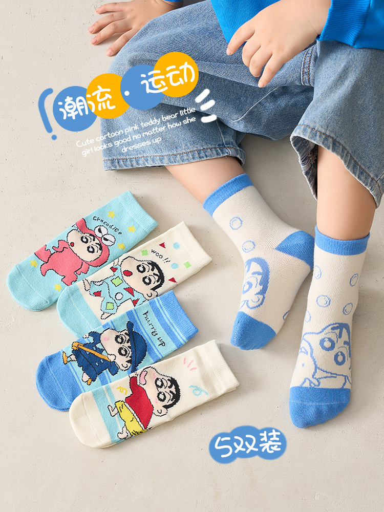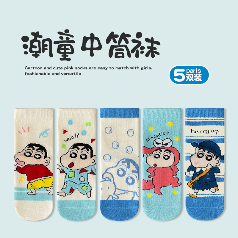 일본 크레용 작은 새로운 어린이 양말 도매 귀여운 만화 애니메이션 소년 소녀 아기 튜브 양말스토어 가기