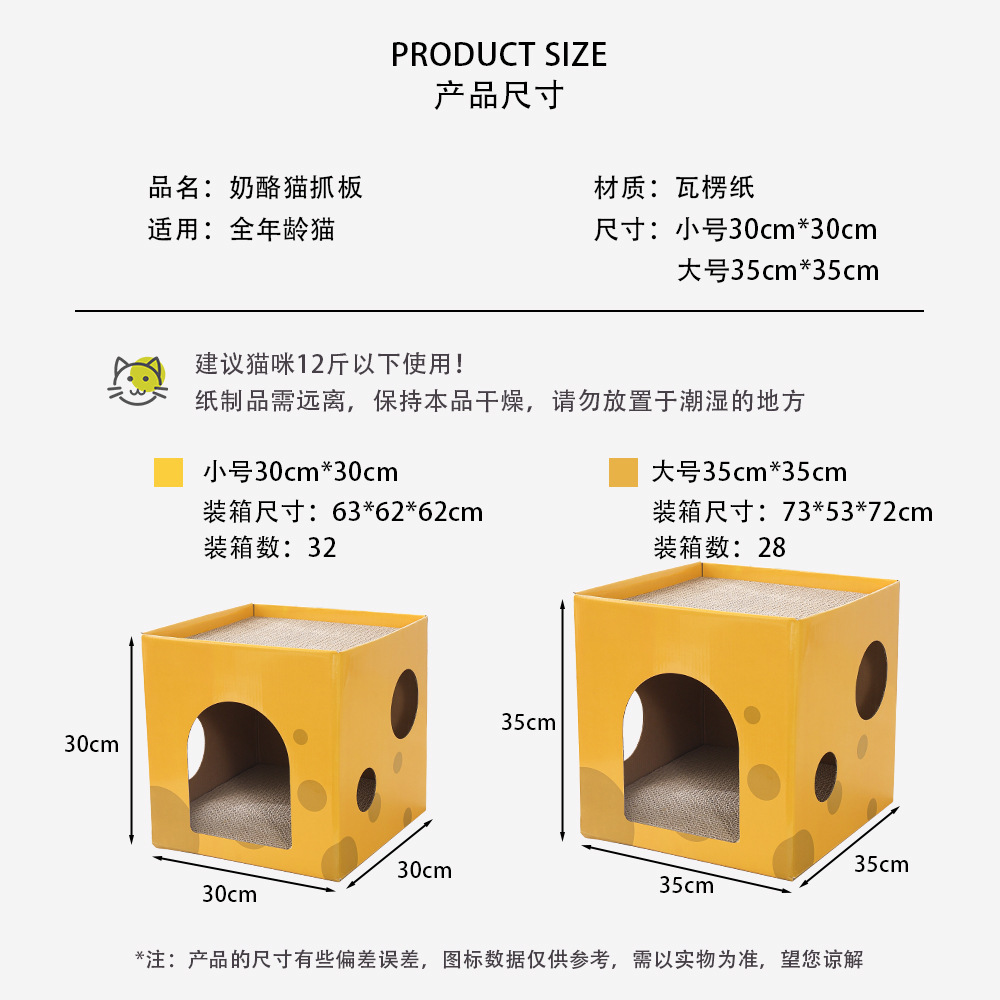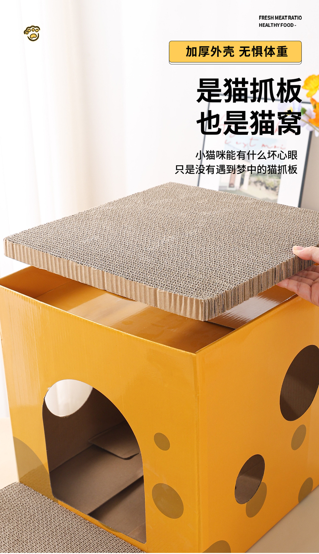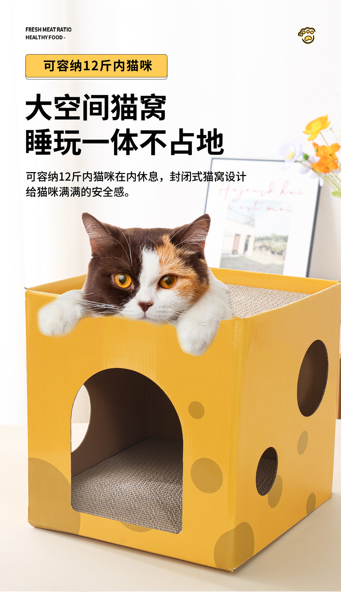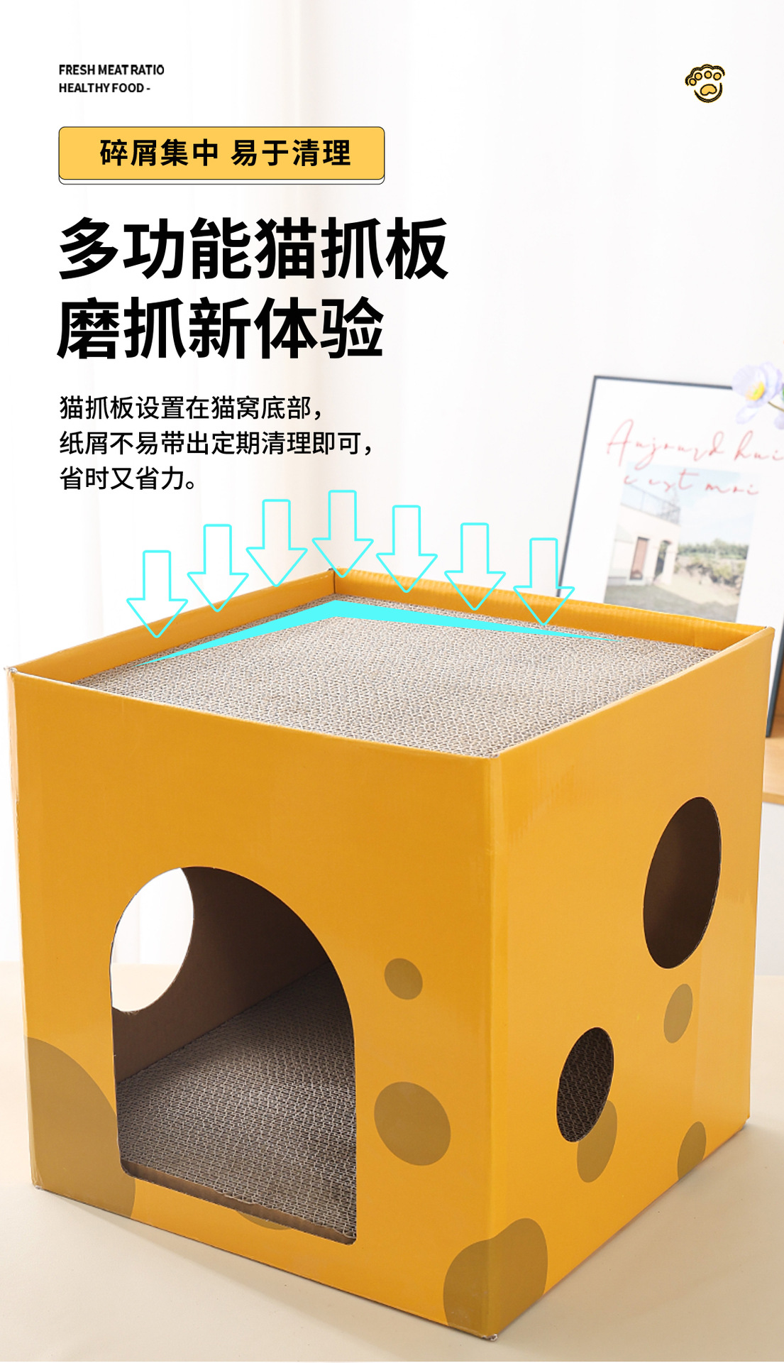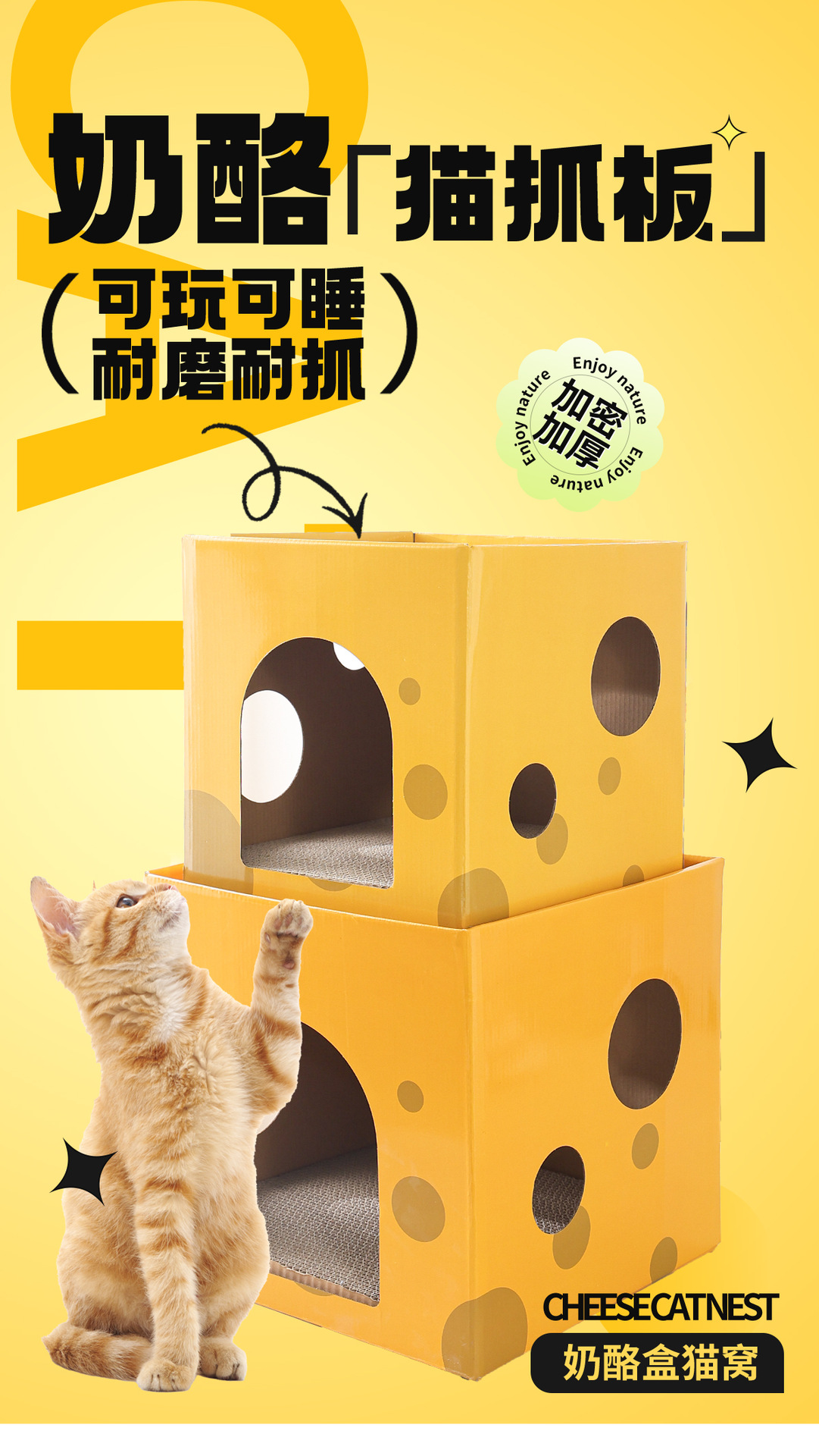 고양이 스크래치 보드 둥지 더블 레이어 스크래치 방지 내마모성 치즈 고양이 스퀘어 하우스 고양이 클라이밍 랙 카톤 하우스 애완 동물 용품 고양이 장난감스토어 가기