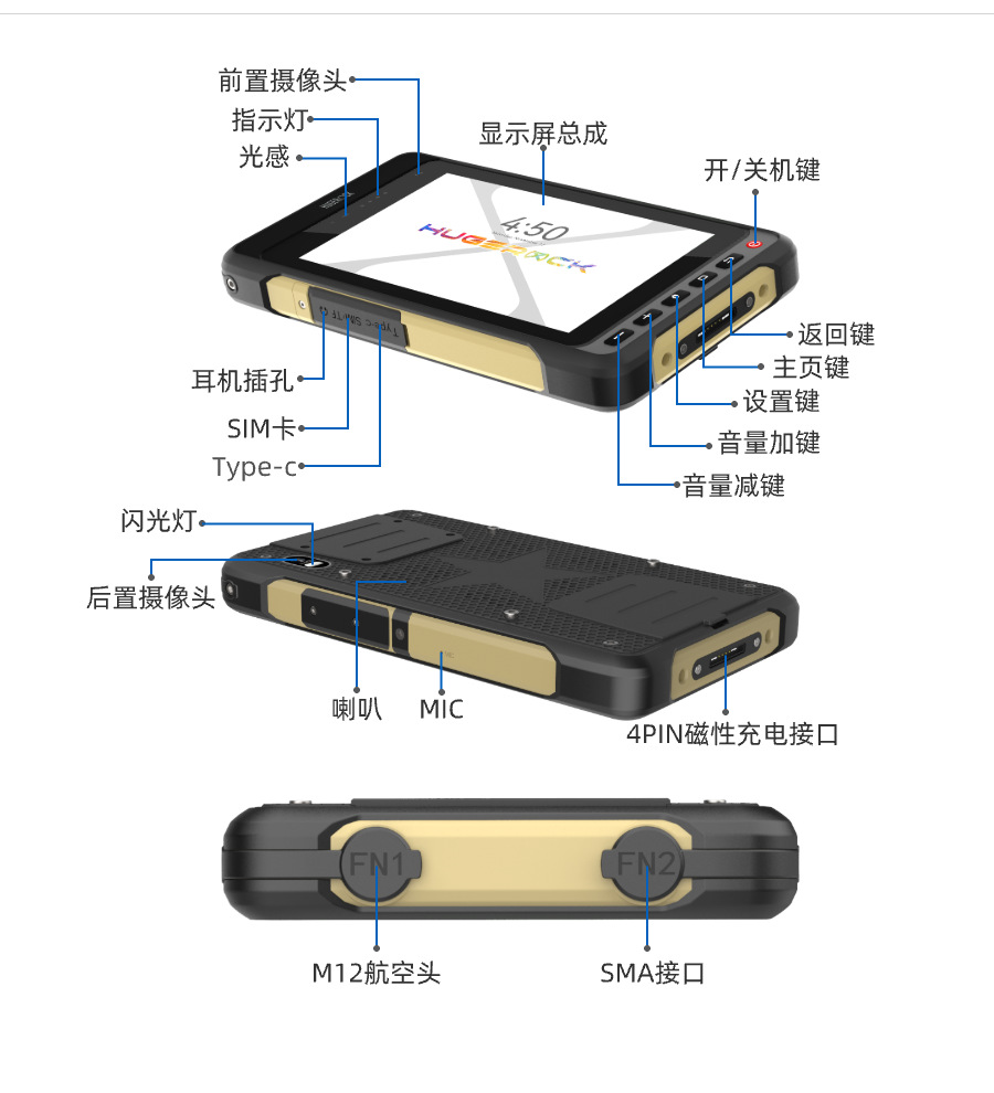 HUGEROCK X70 삼중 충격 방지 오프로드 오토바이 10000mAh 배터리 본질적으로 안전한 태블릿스토어 가기