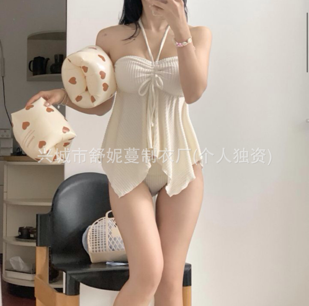 비키니 수영복 여성용 하이 엔드 스플릿 퓨어 욕망 목 걸기 온천 한국 인 스타일 작은 가슴 수영복 수영복