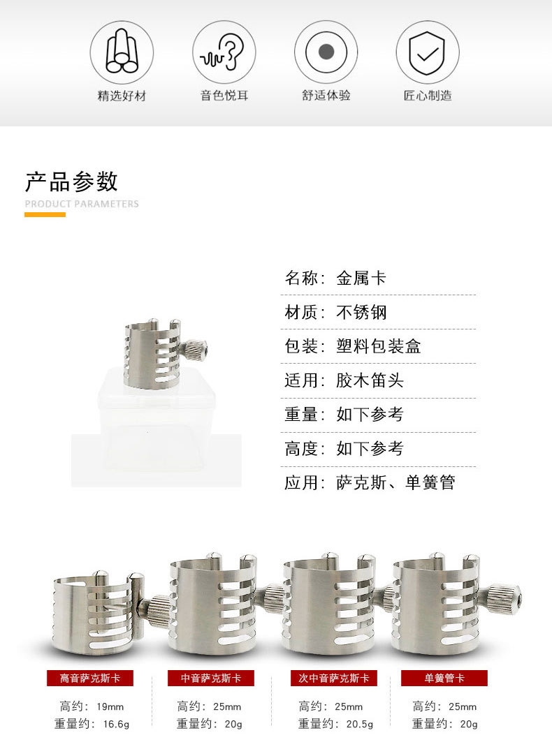 고음 테너 색소폰 헤드 카드 클라리넷 베이클라이트 헤드 메탈 카드 스테인레스 스틸 걸쇠 클램프