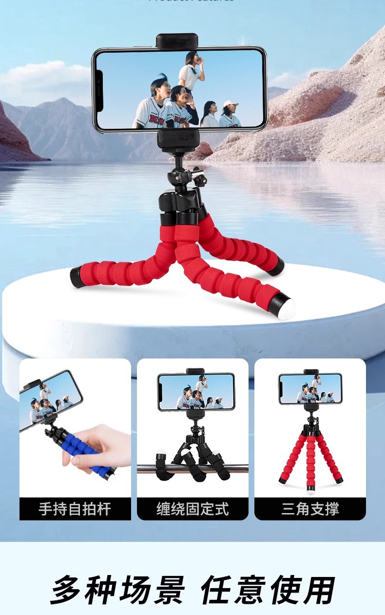 3 다리 휴대 전화 랙 문어 스탠드 다기능 삼각형 블루투스 사진 카메라 라이브 휴대용스토어 가기
