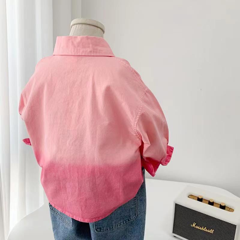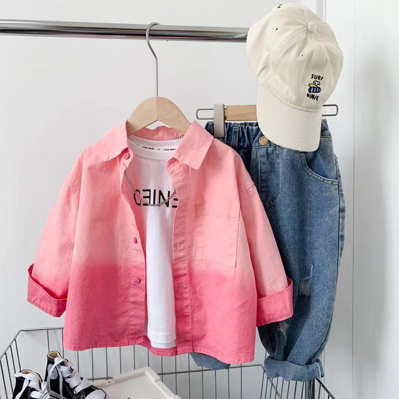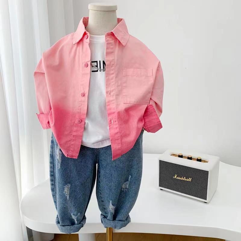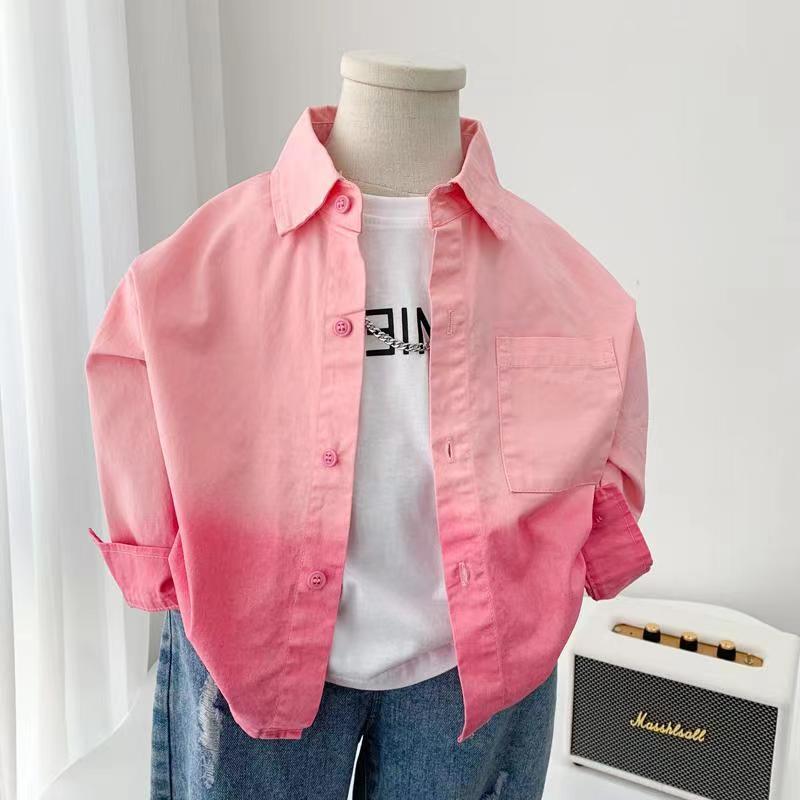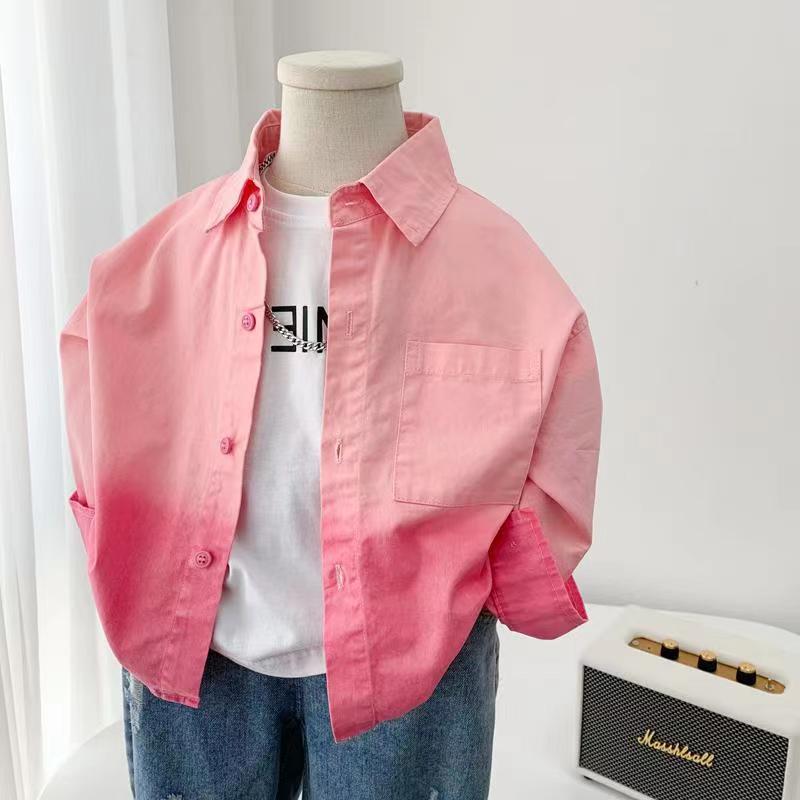 2024 새로운 스타일 서양식 어린이 소년 핑크 셔츠 봄과 가을 긴 소매 셔츠 어린이 한국 스타일 점진적 변화 봄 패션스토어 가기