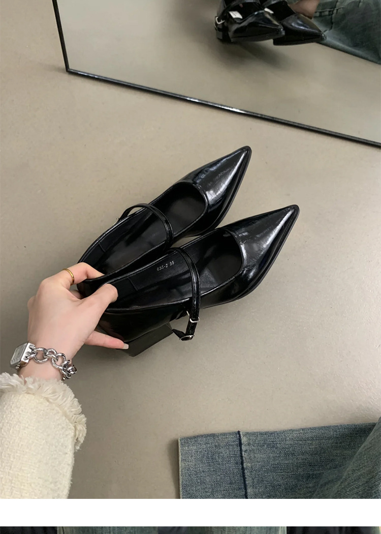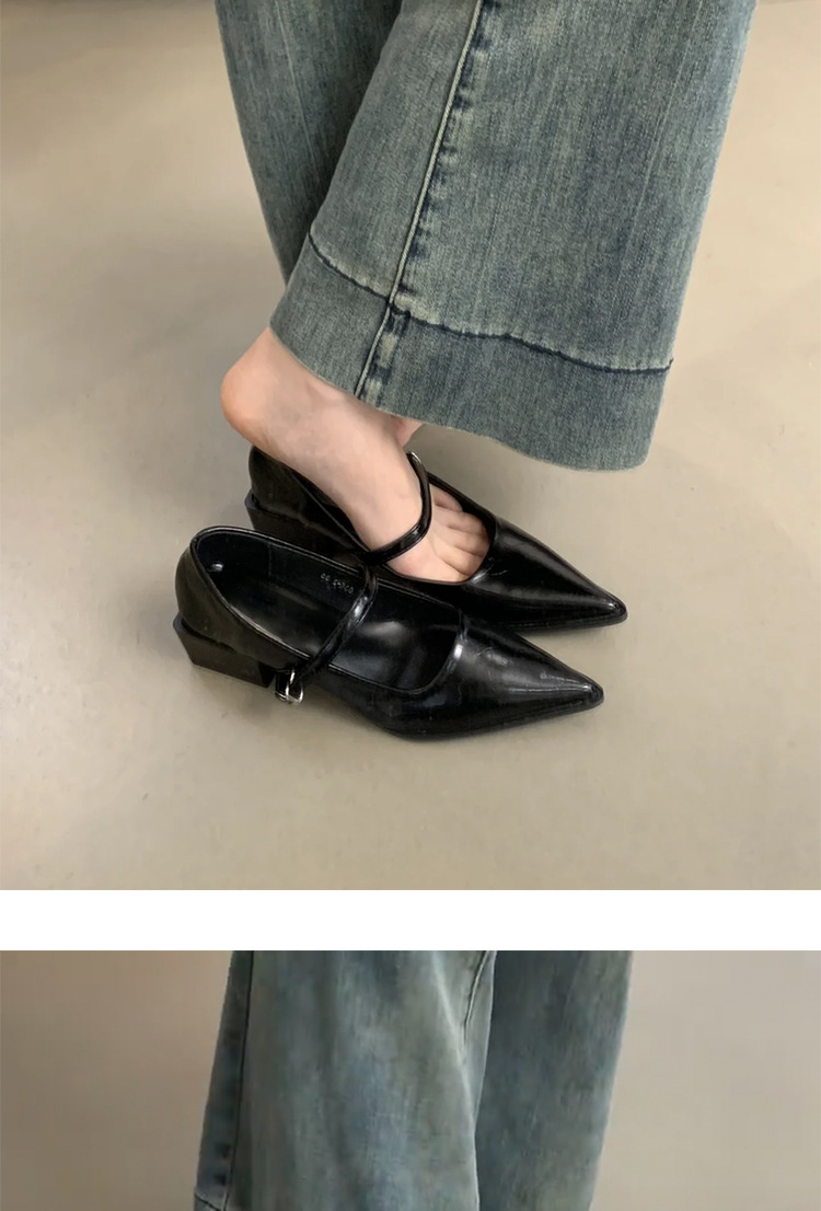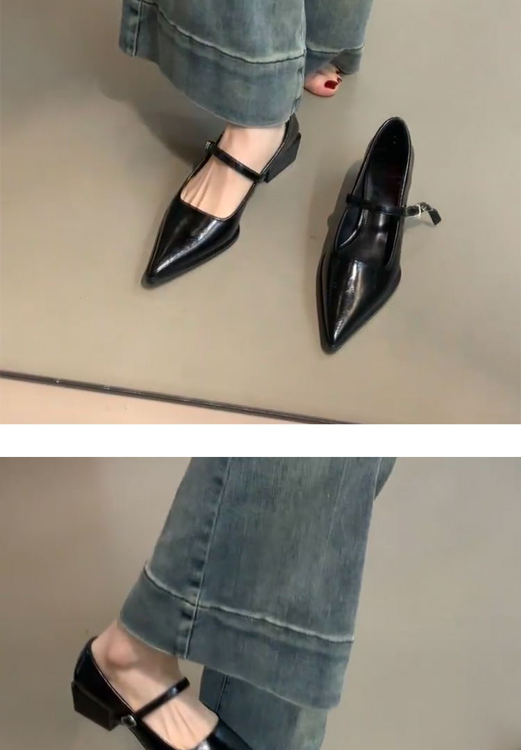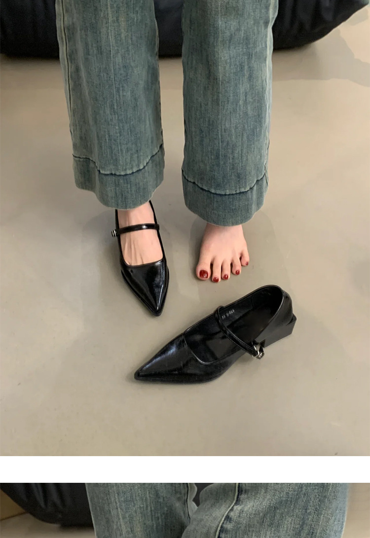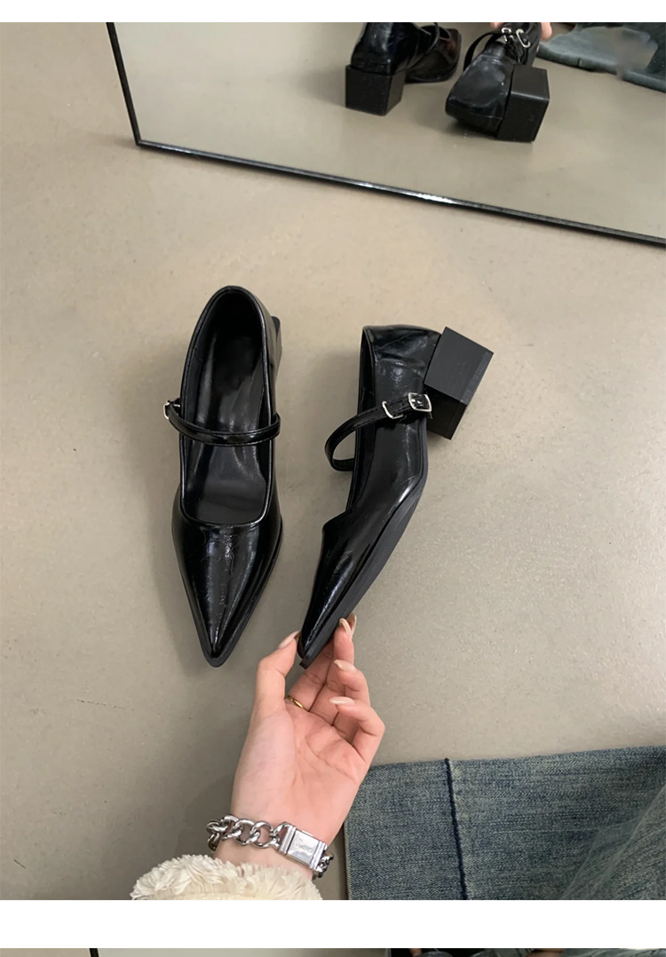 양가죽 버전~천연 가죽 스타일의 여성용 포인티드 토 슈즈, 2026년 봄/가을 신상, 원스트랩 얕은 굽 메리제인 가죽 슈즈스토어 가기