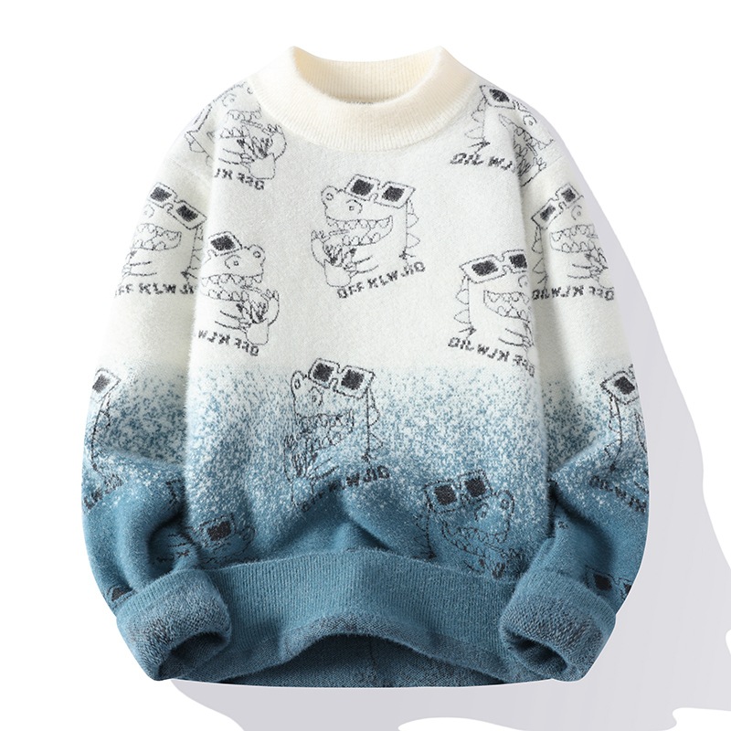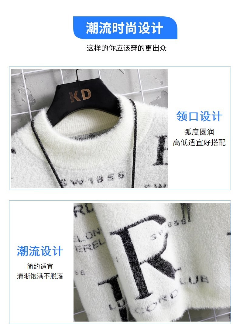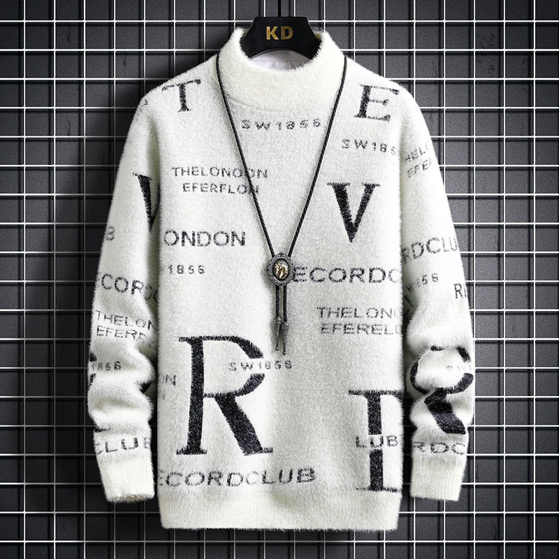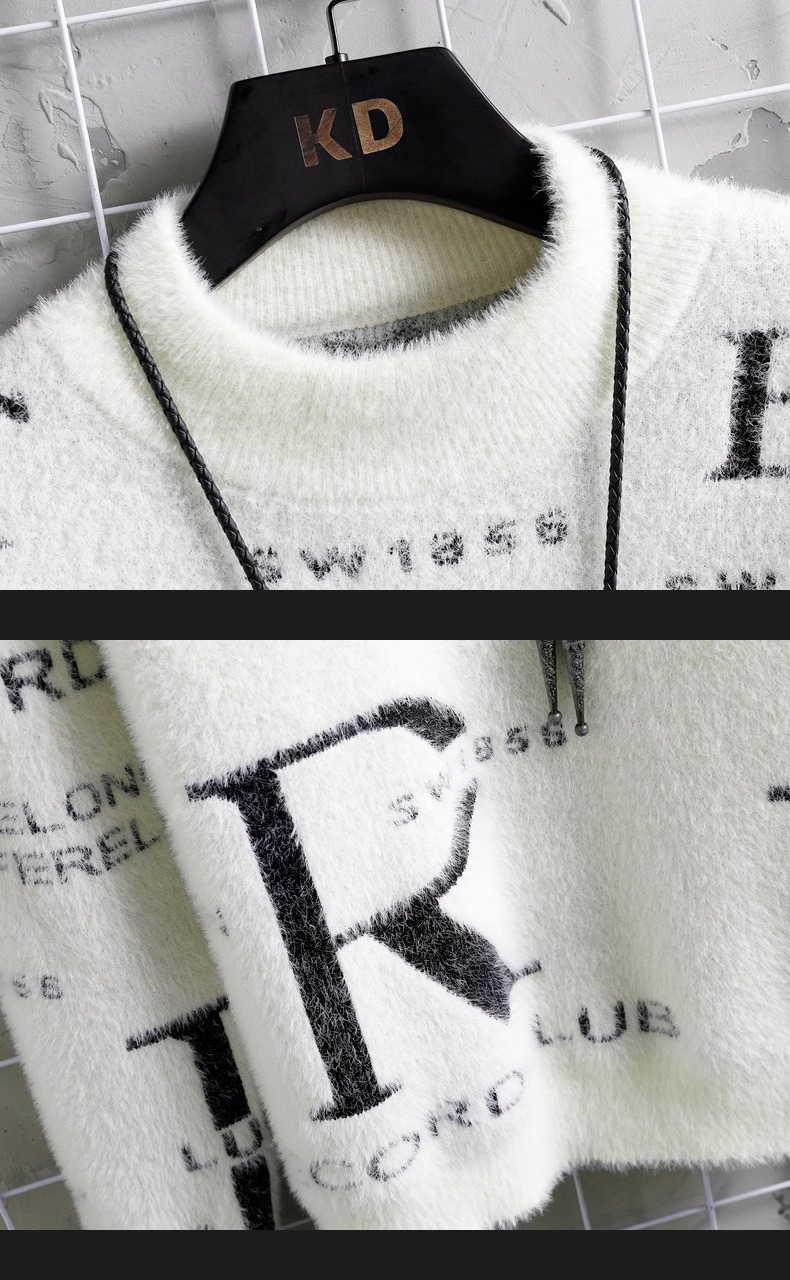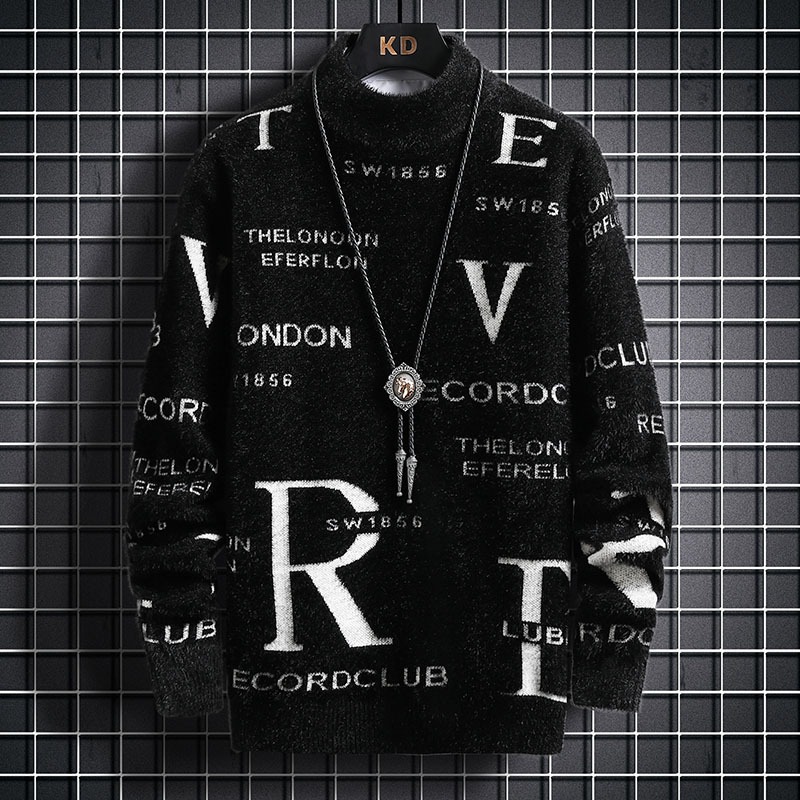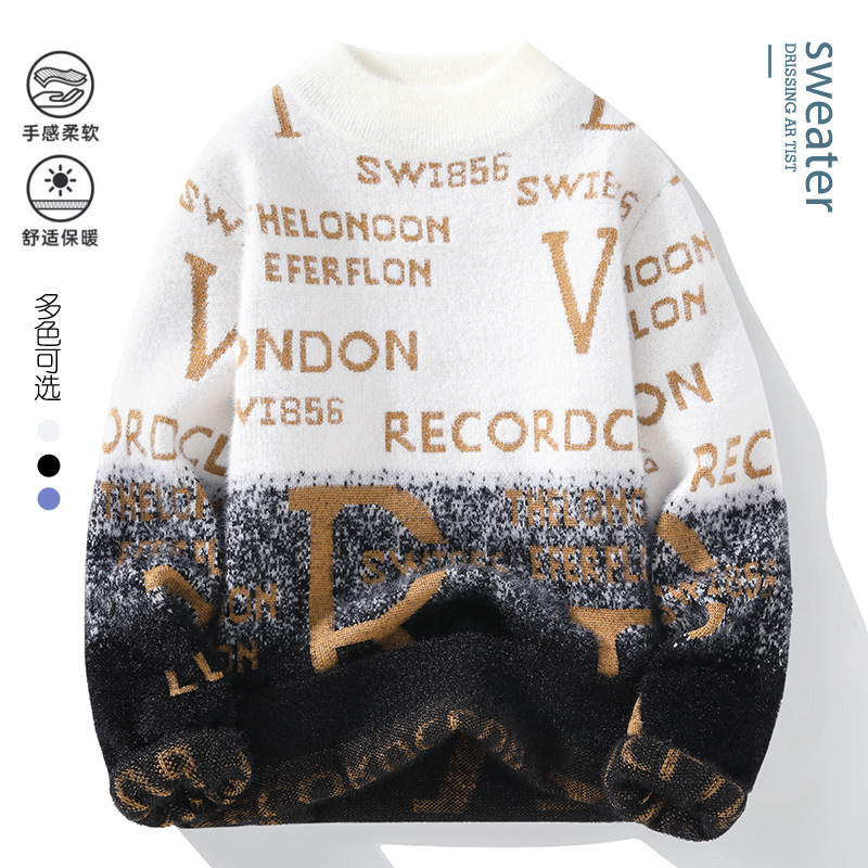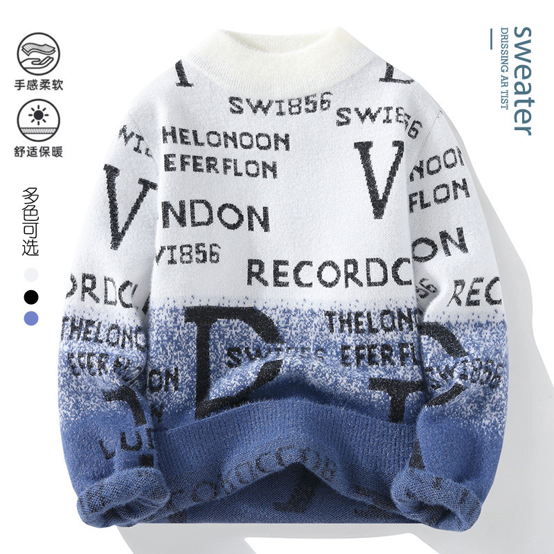 TikTok 폭발 남성 겨울 트렌디 콘트라스트 컬러 니트 셔츠 느슨한 캐주얼 내부 스웨터