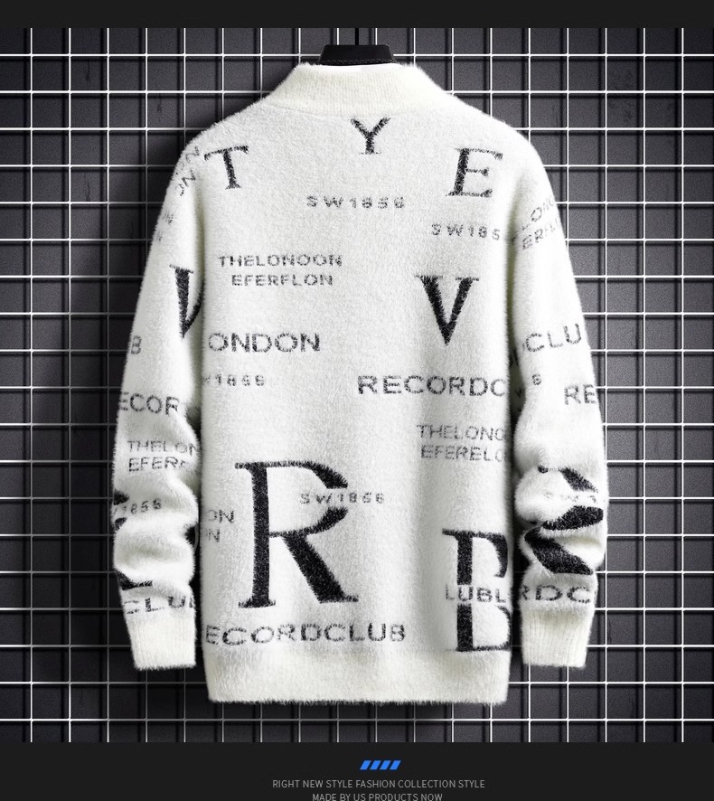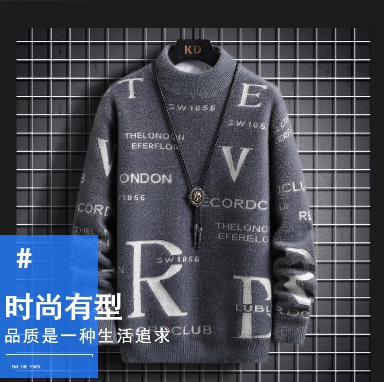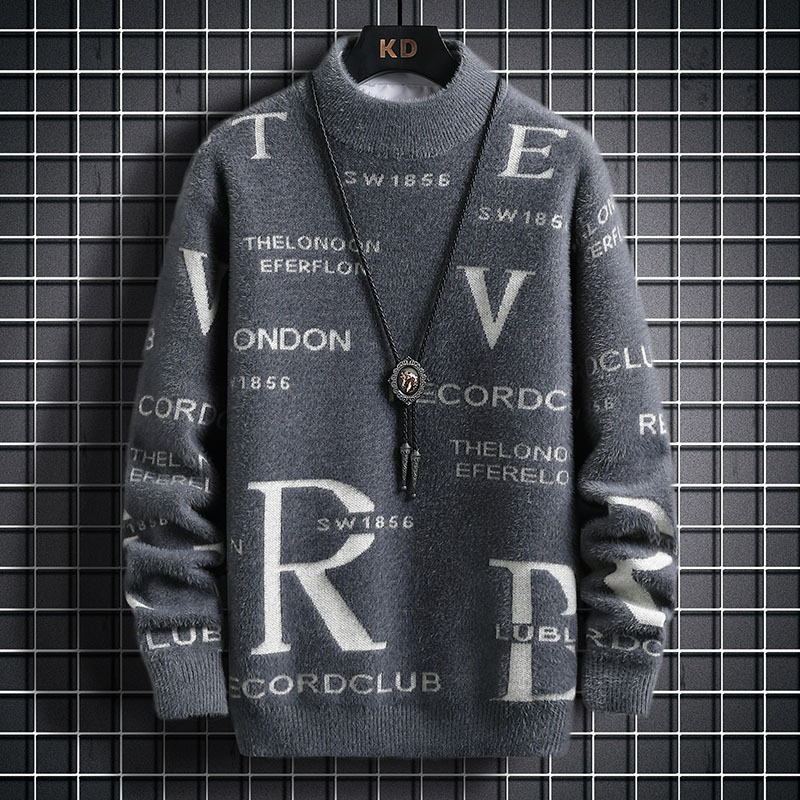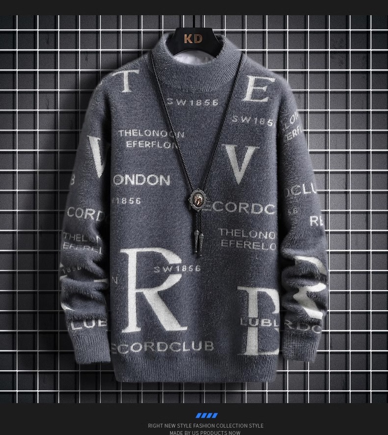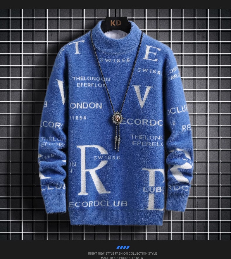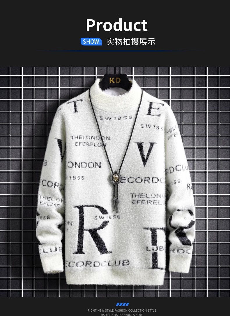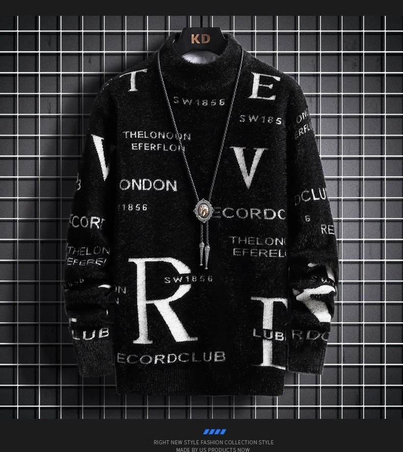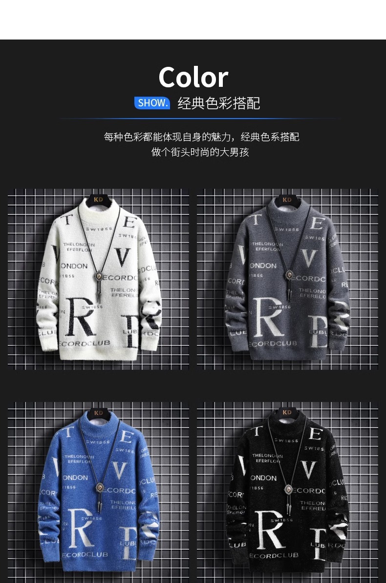 TikTok 폭발 남성 겨울 트렌디 콘트라스트 컬러 니트 셔츠 느슨한 캐주얼 내부 스웨터스토어 가기