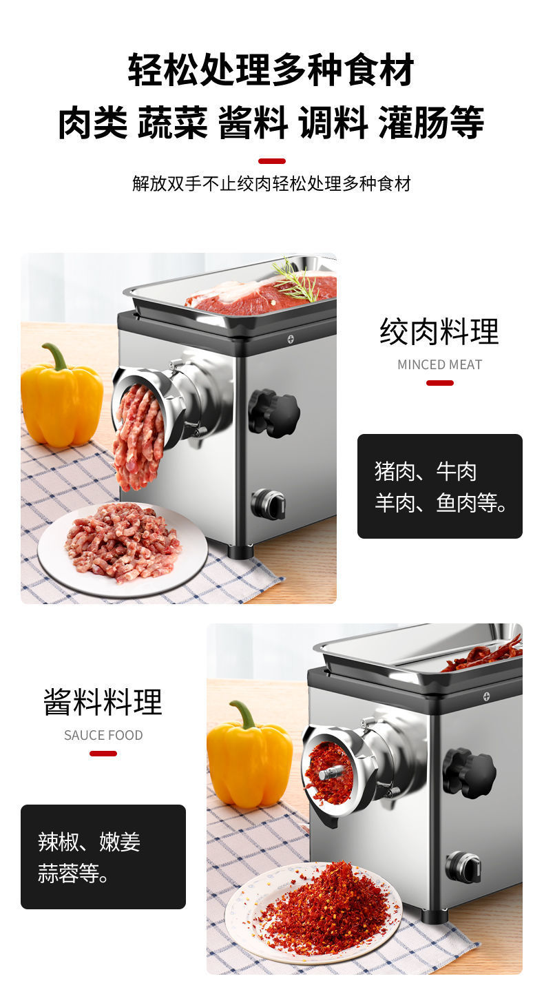 고기 분쇄기 상업용 다기능 전기 스테인레스 스틸 완전 자동 고출력 고기 분쇄기 만두 충전 소시지 소형스토어 가기