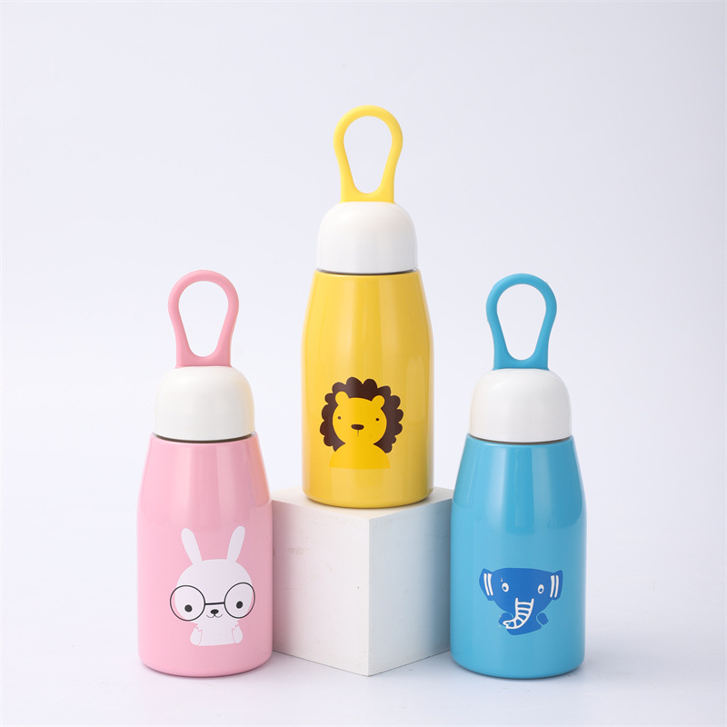 새로운 304 스테인레스 스틸 진공 머그 어린이 만화 배꼽 컵 핸들 휴대용 원추형 컵 자동차 컵스토어 가기