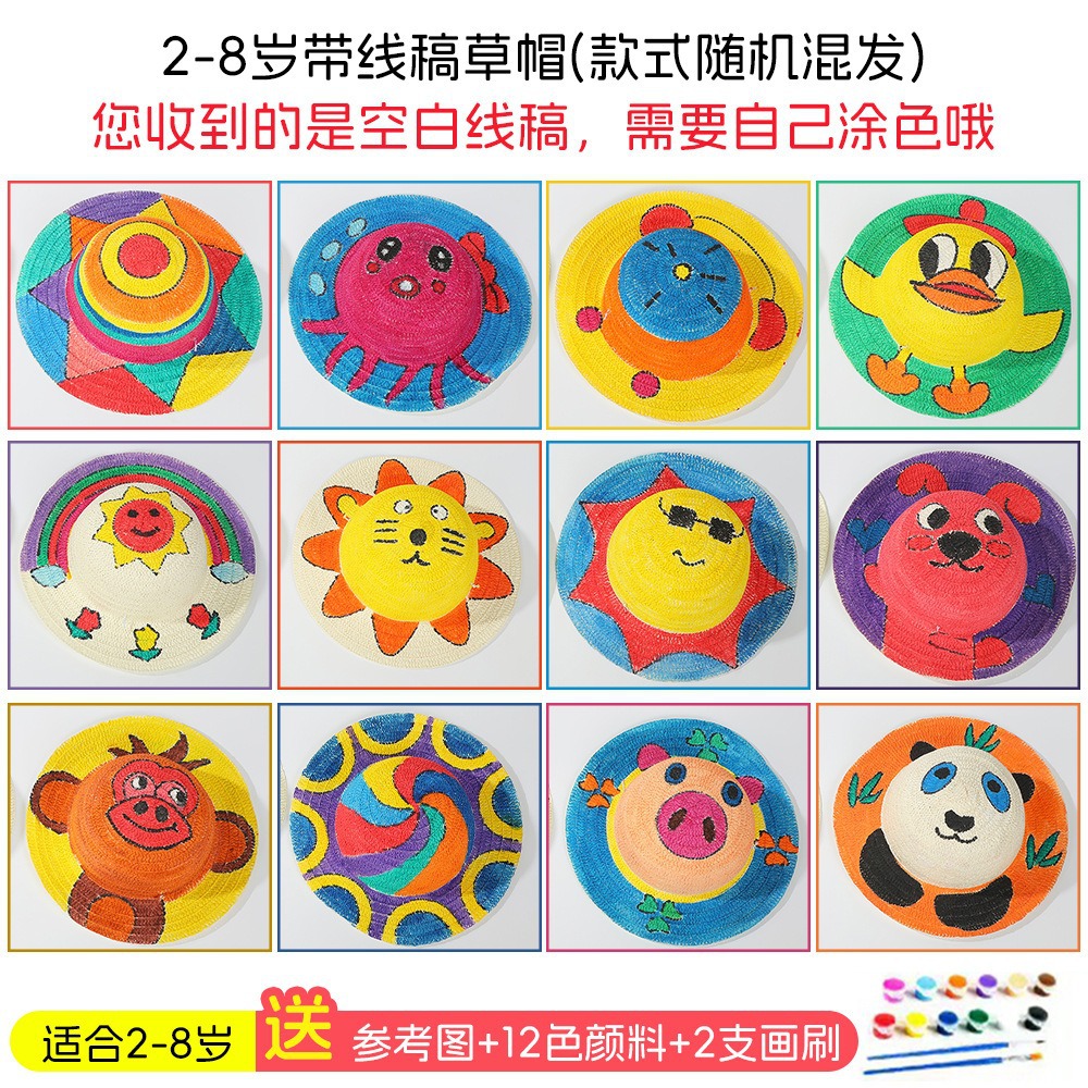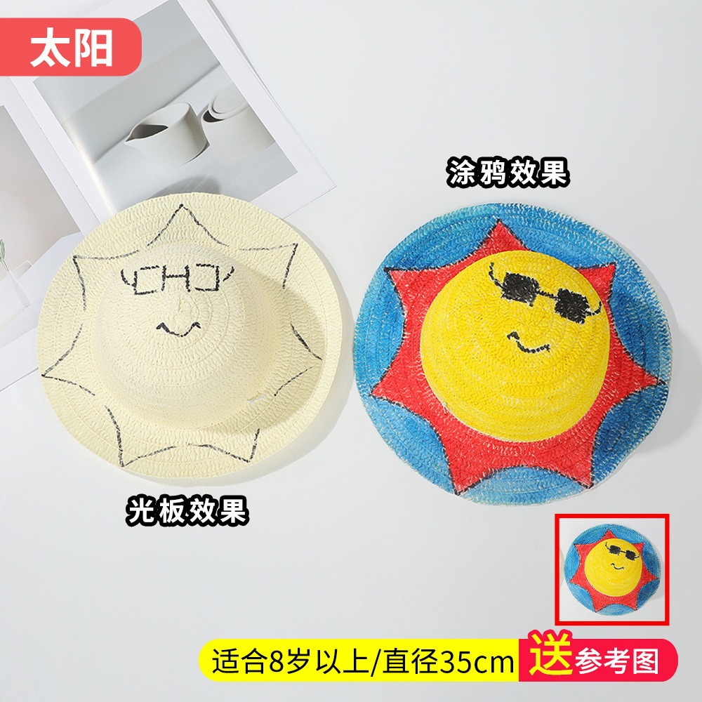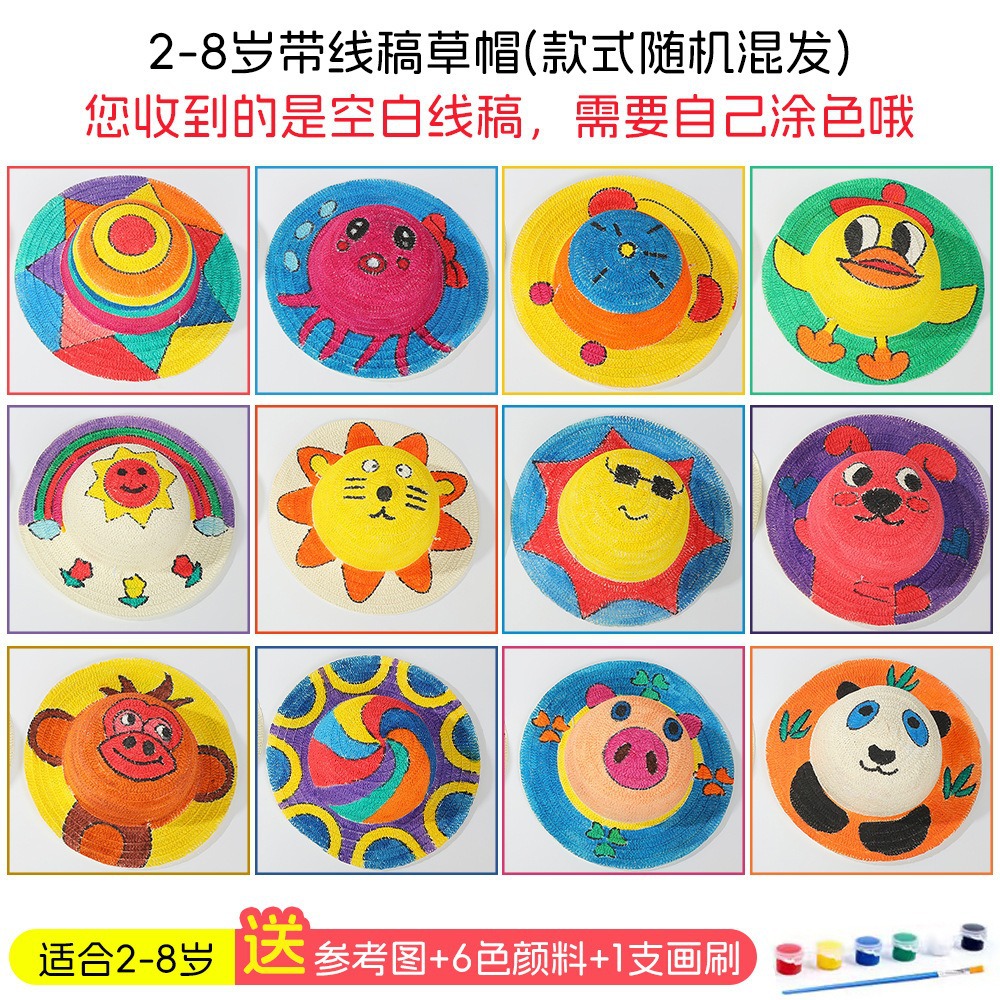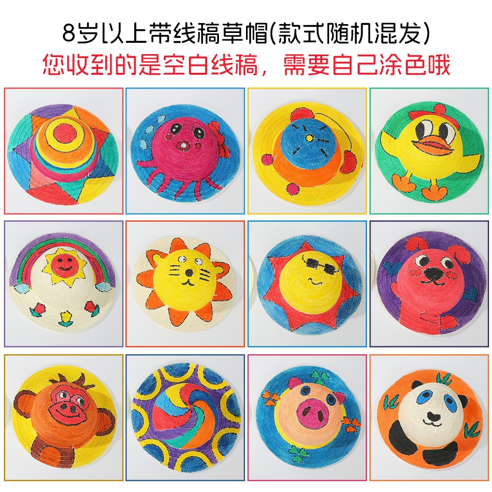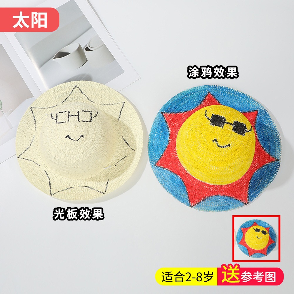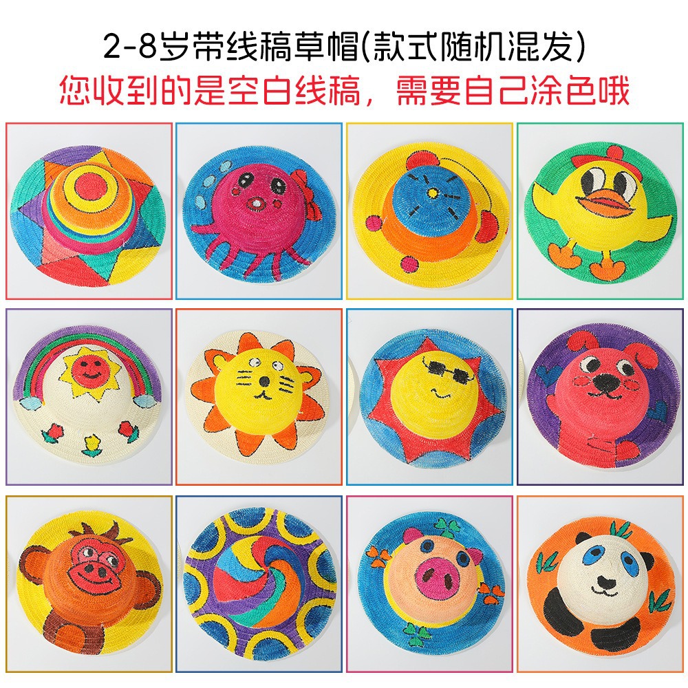 창조적 인 유치원 수제 그림 밀짚 모자 어린이 부모 활동 낙서 모자 예술 손으로 그린 DIY 어부 모자스토어 가기