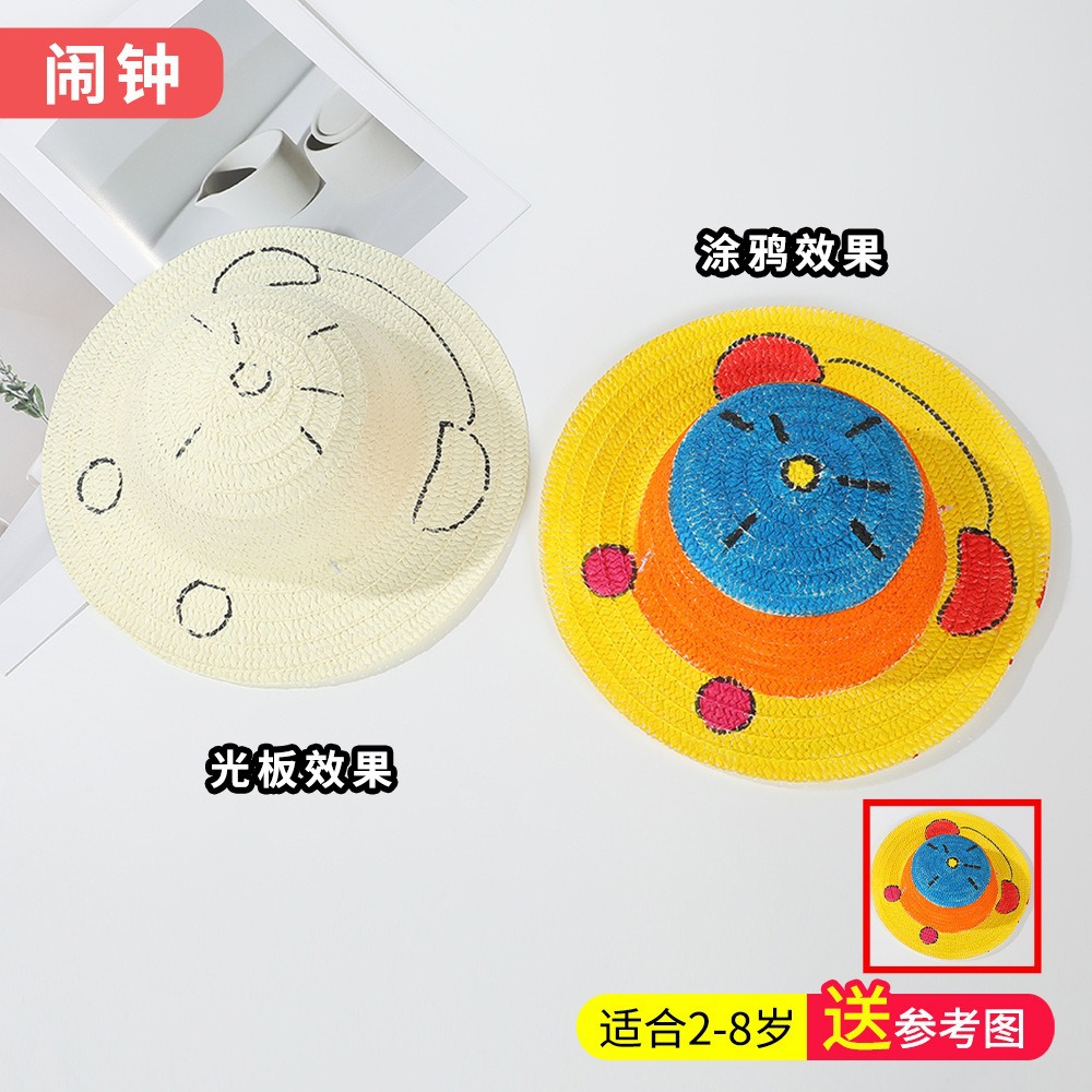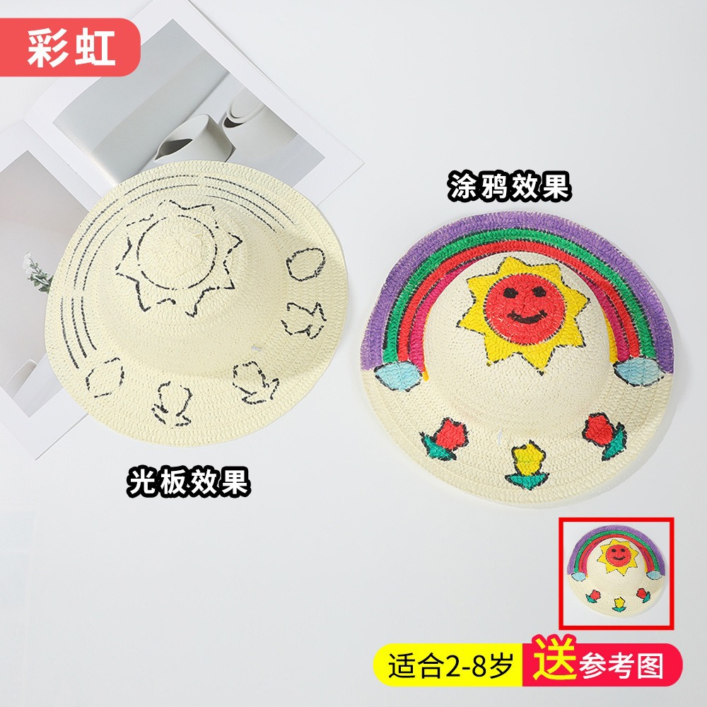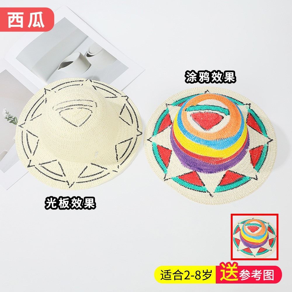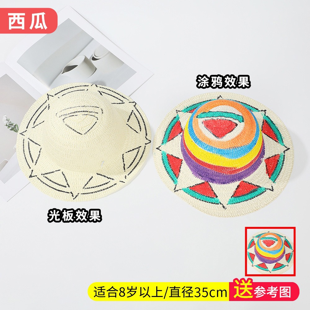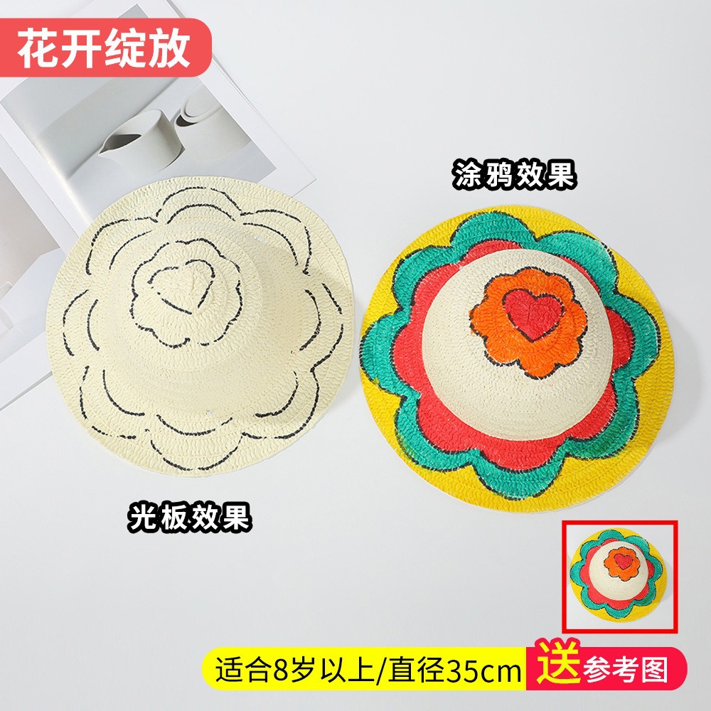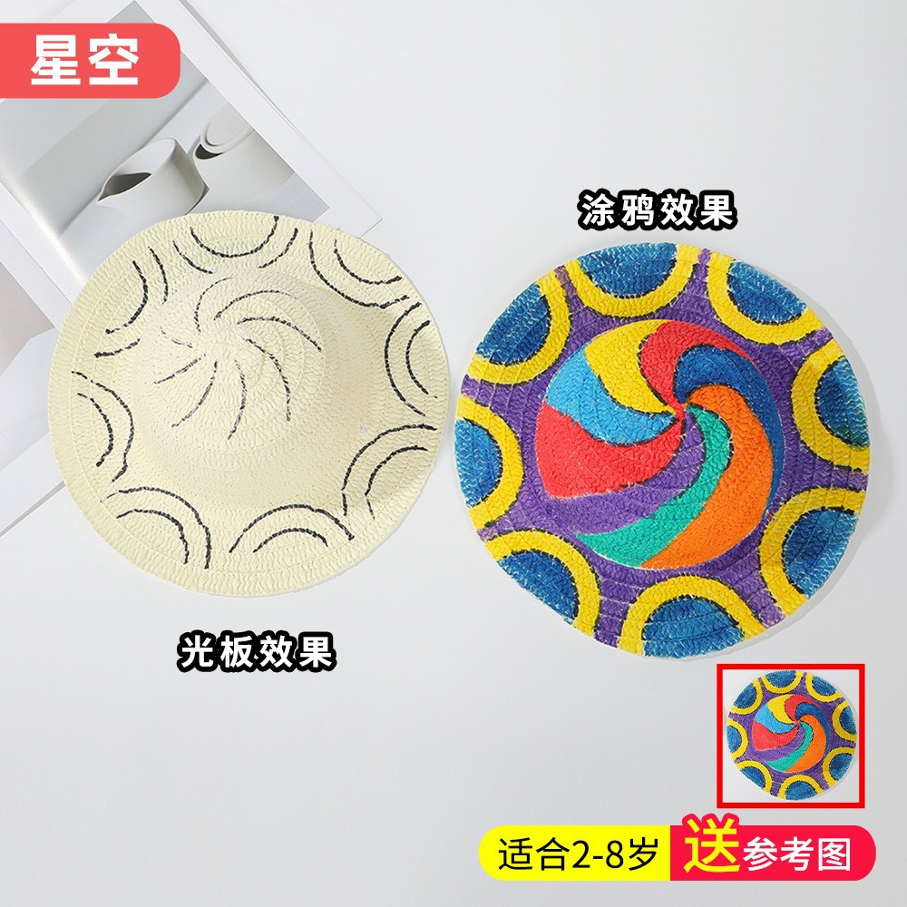 창조적 인 유치원 수제 그림 밀짚 모자 어린이 부모 활동 낙서 모자 예술 손으로 그린 DIY 어부 모자스토어 가기