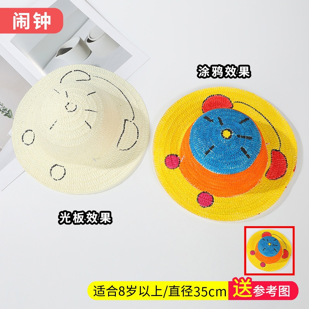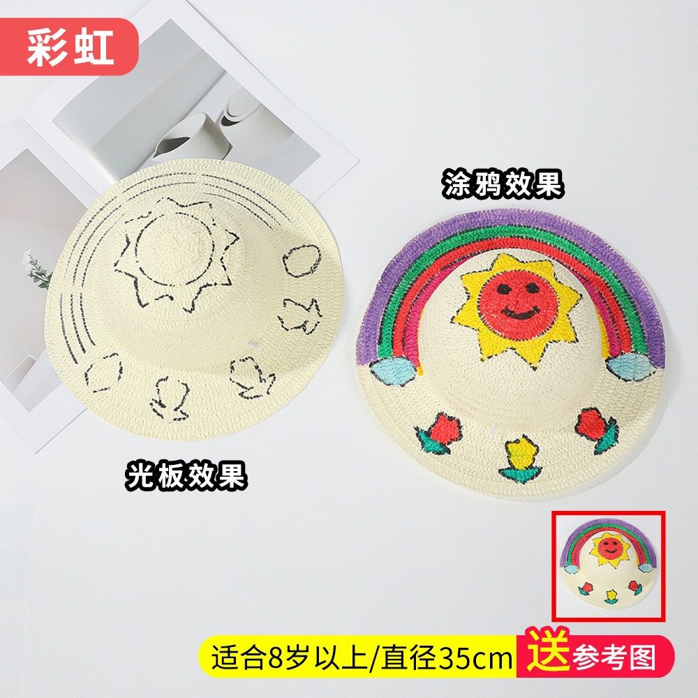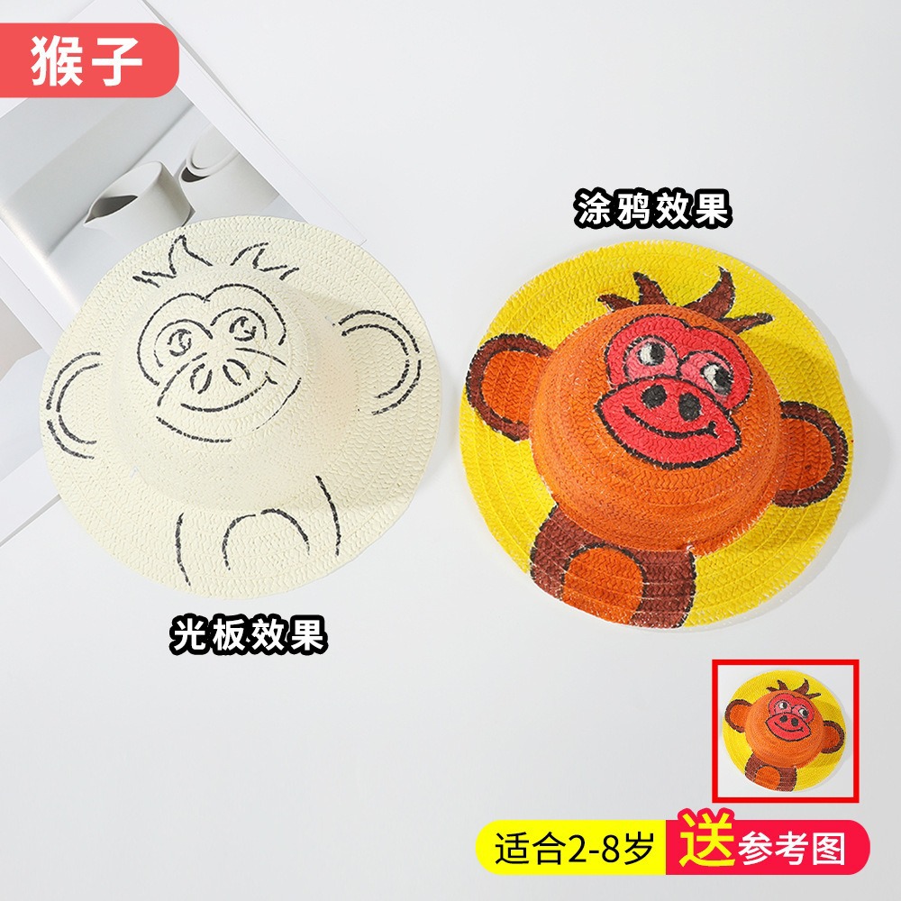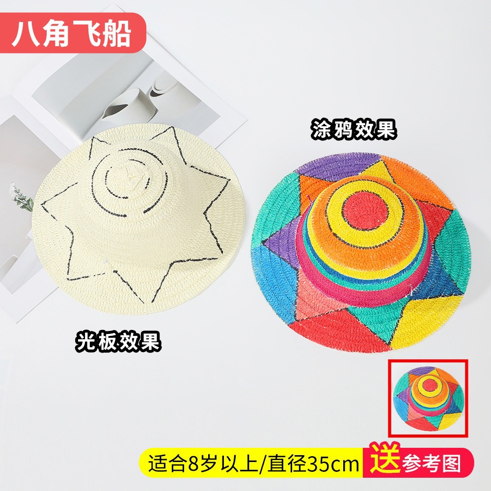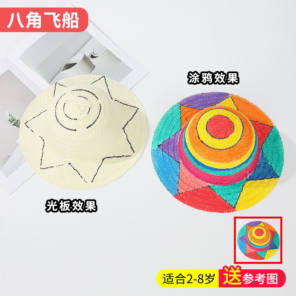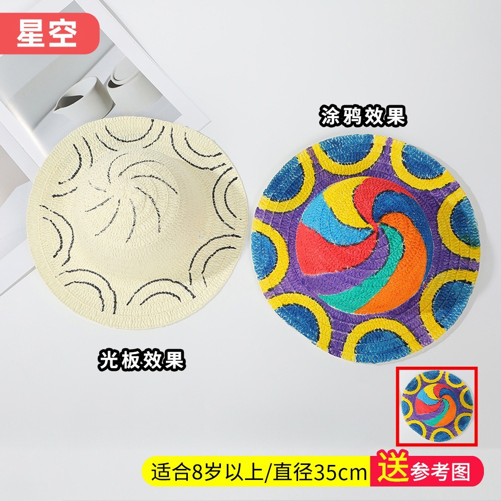 창조적 인 유치원 수제 그림 밀짚 모자 어린이 부모 활동 낙서 모자 예술 손으로 그린 DIY 어부 모자스토어 가기