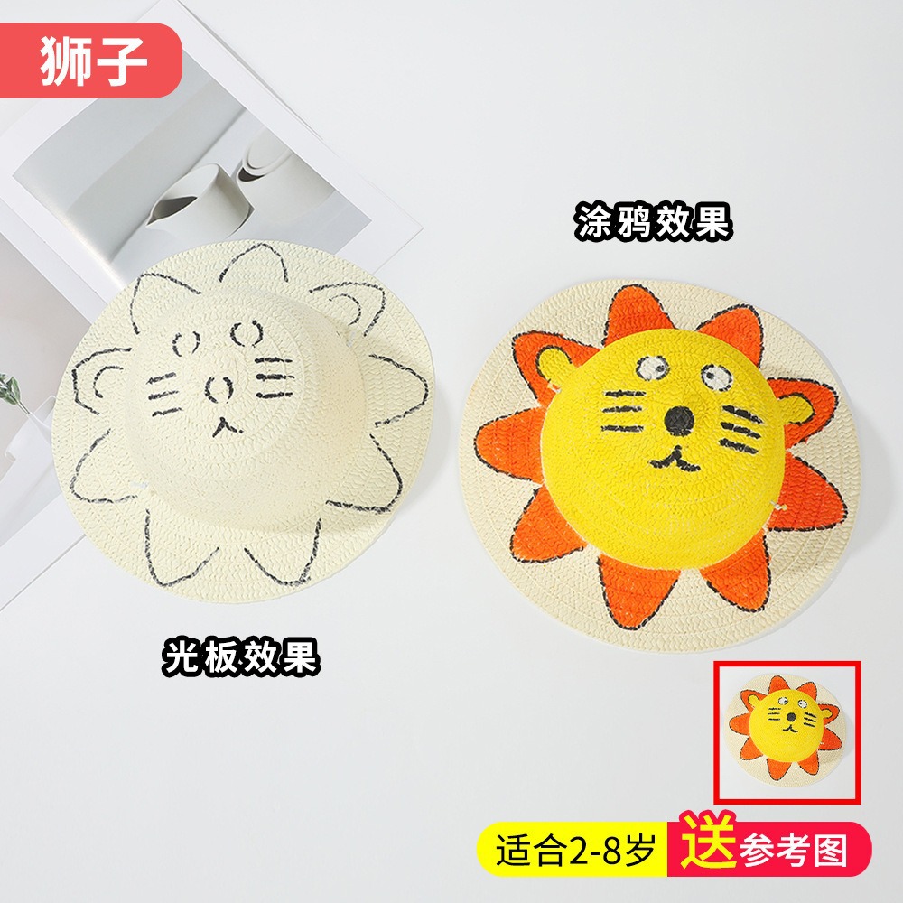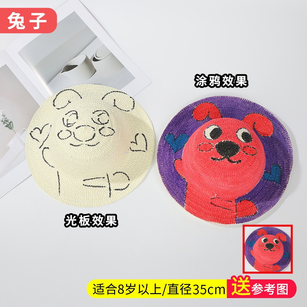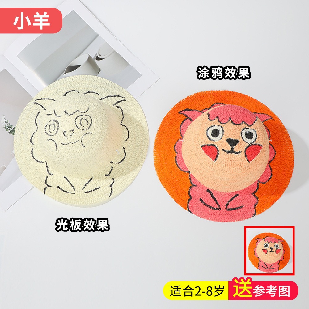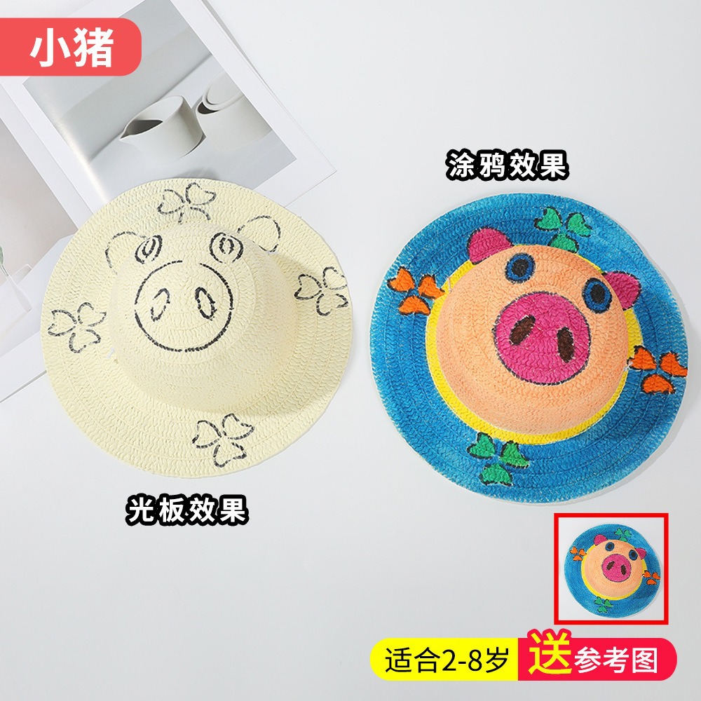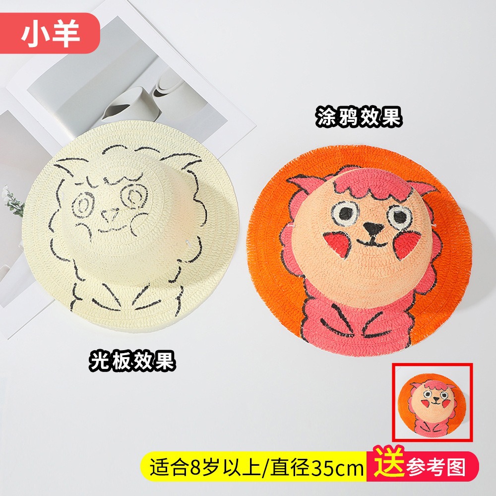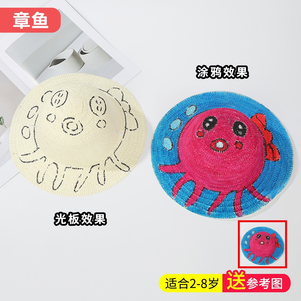 창조적 인 유치원 수제 그림 밀짚 모자 어린이 부모 활동 낙서 모자 예술 손으로 그린 DIY 어부 모자스토어 가기