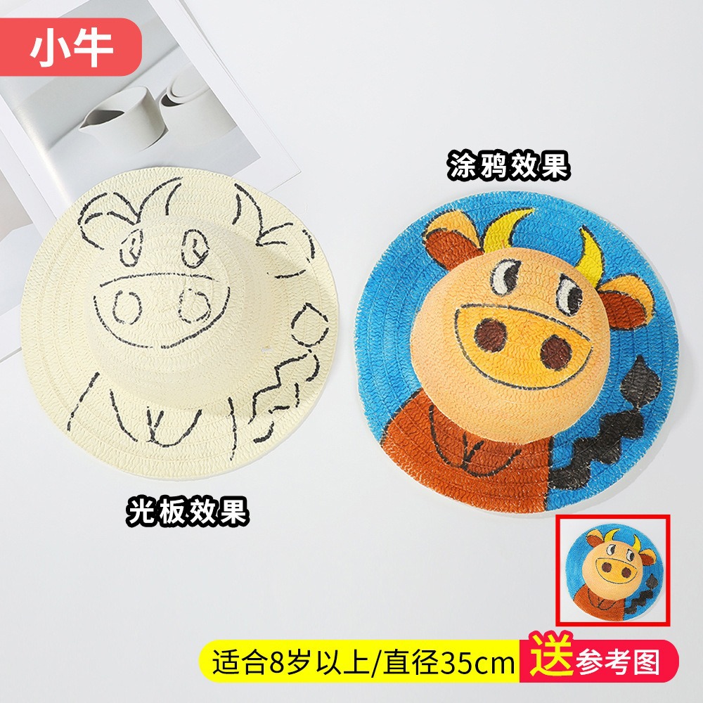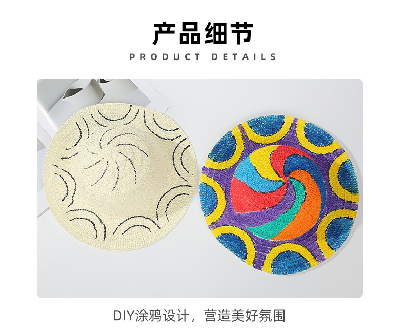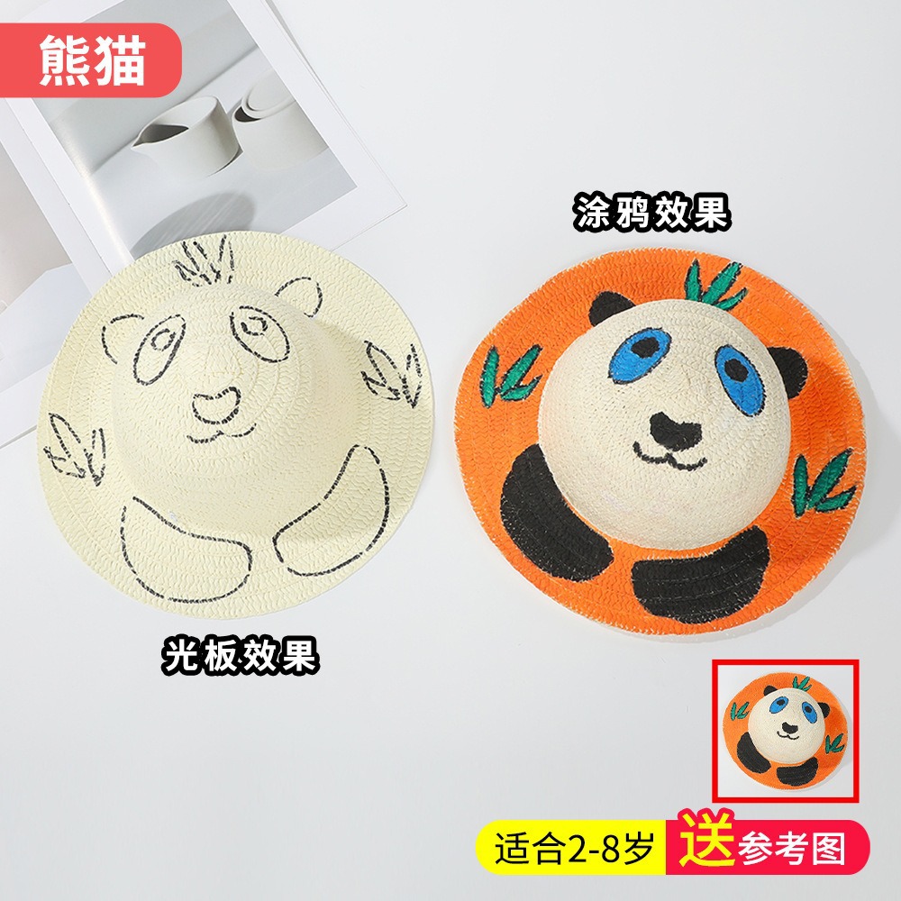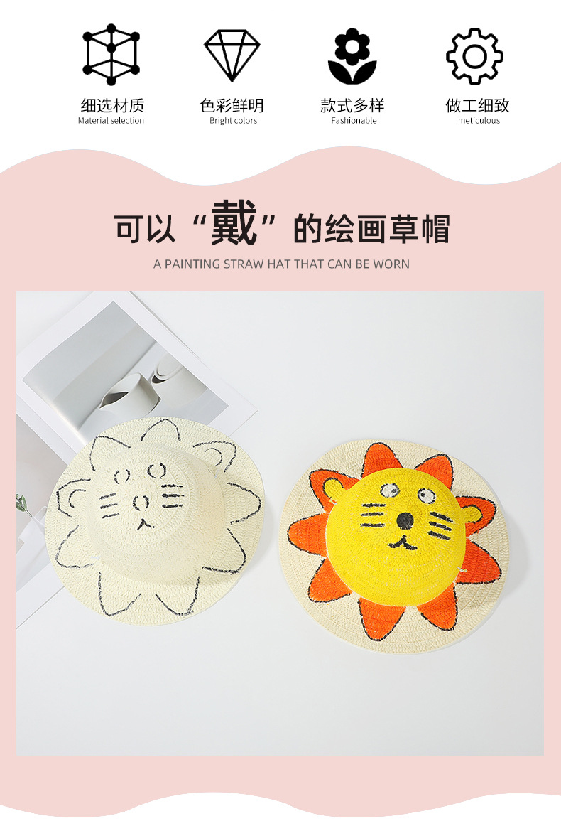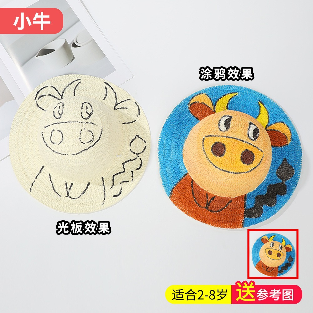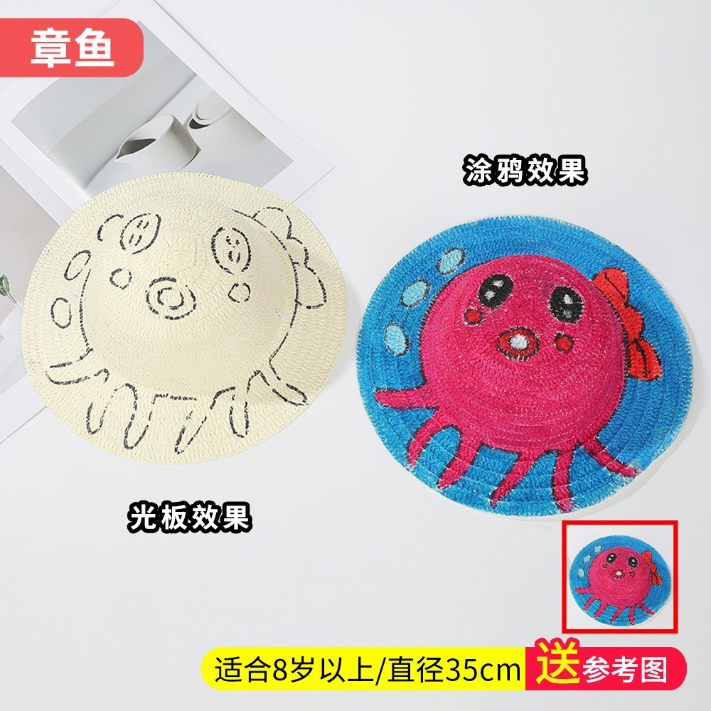 창조적 인 유치원 수제 그림 밀짚 모자 어린이 부모 활동 낙서 모자 예술 손으로 그린 DIY 어부 모자스토어 가기