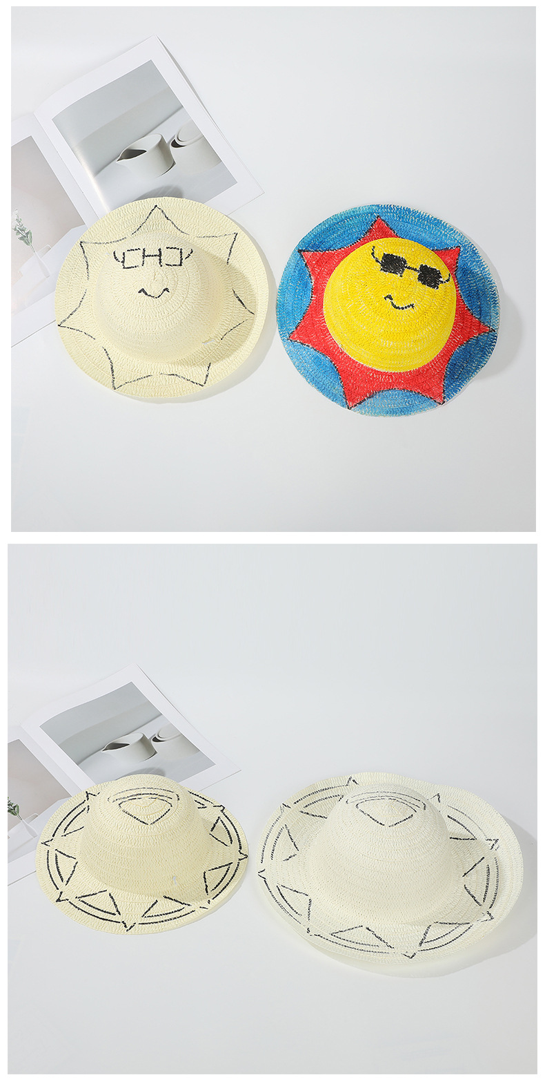 창조적 인 유치원 수제 그림 밀짚 모자 어린이 부모 활동 낙서 모자 예술 손으로 그린 DIY 어부 모자