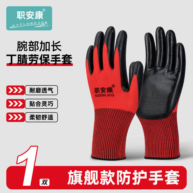 • 타이어 두께 강화 내마모성 적색 망사 장갑 48g